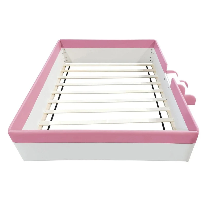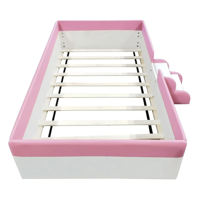 Twin Size Bear-Shaped Platform Bed with Storage Pockets - Velvet Upholstered
