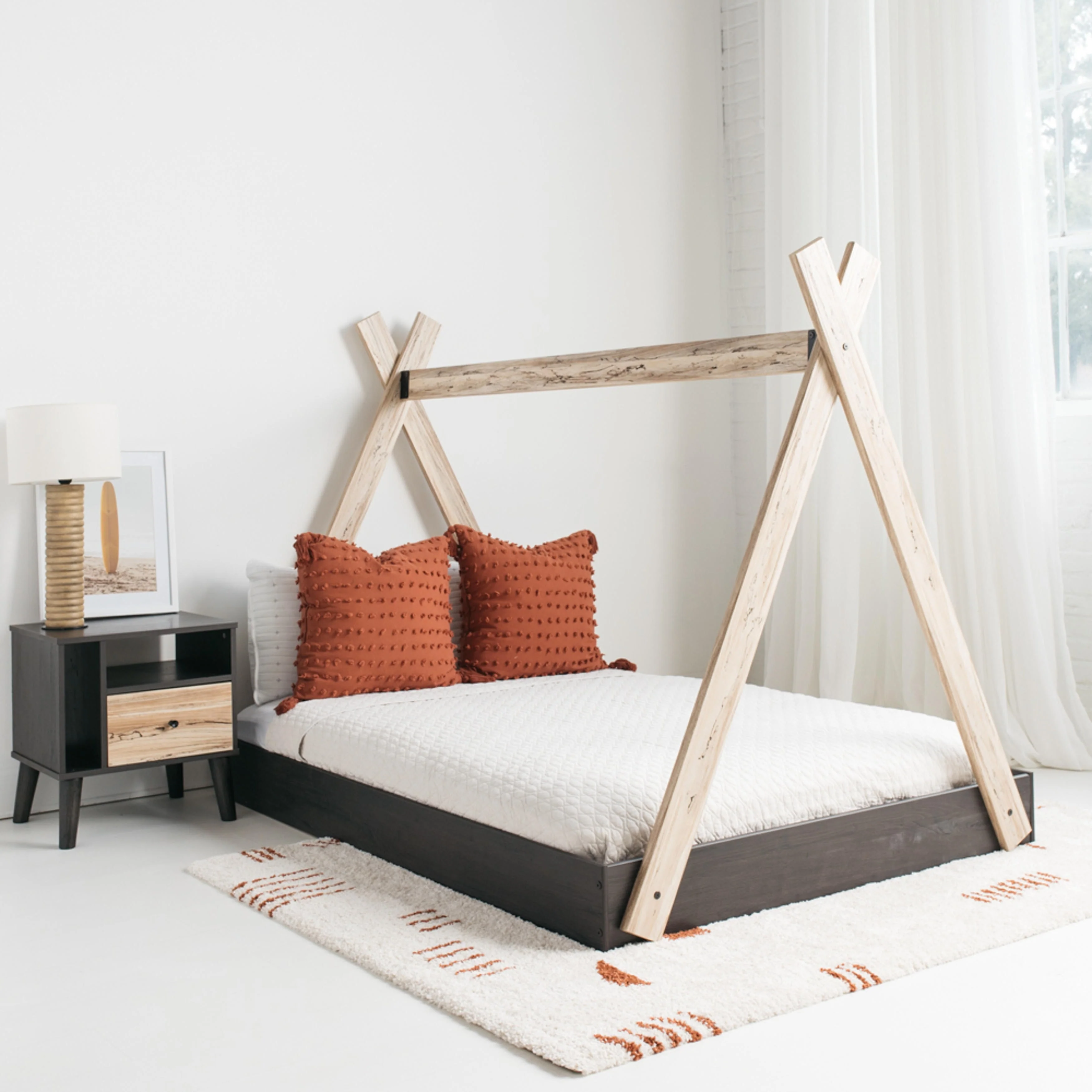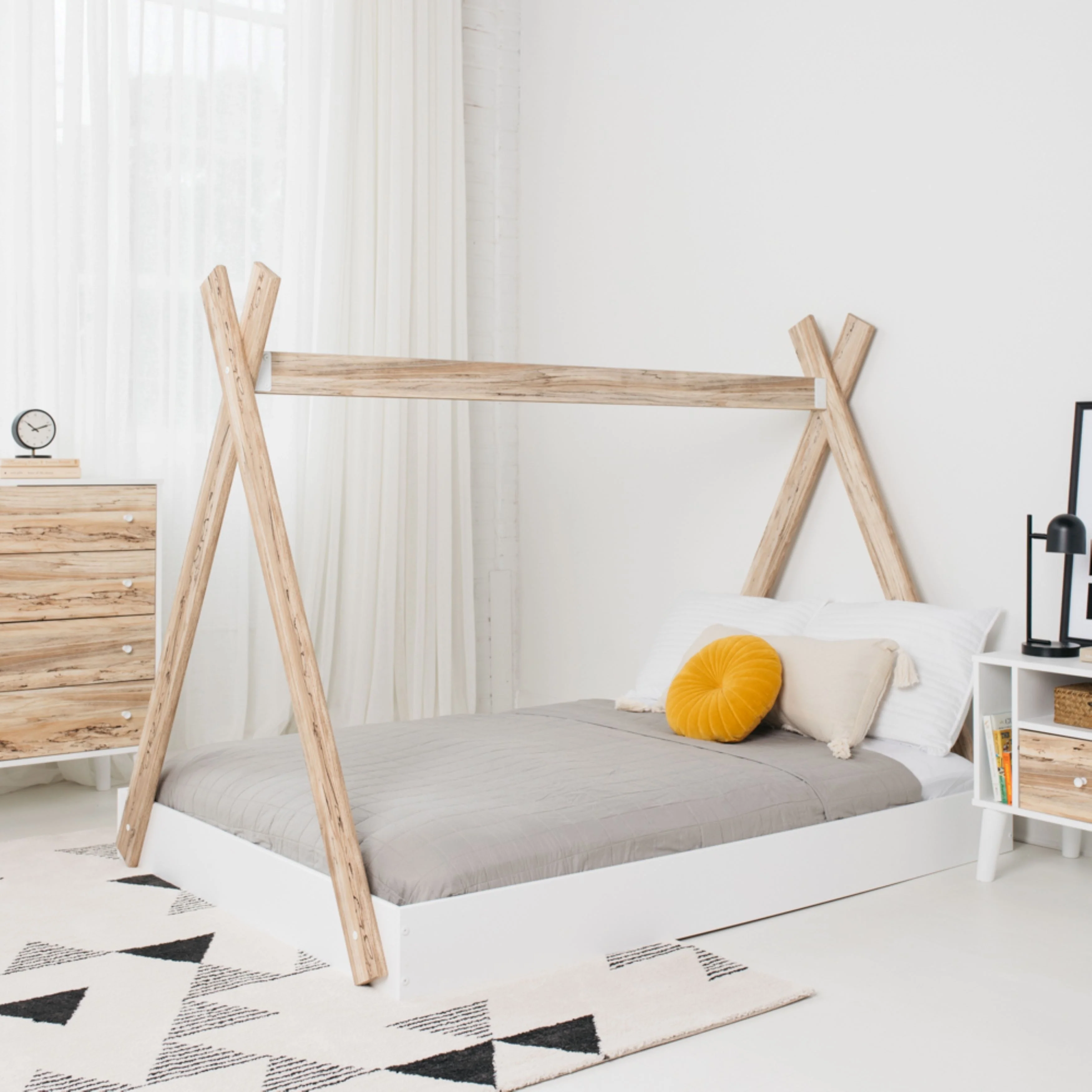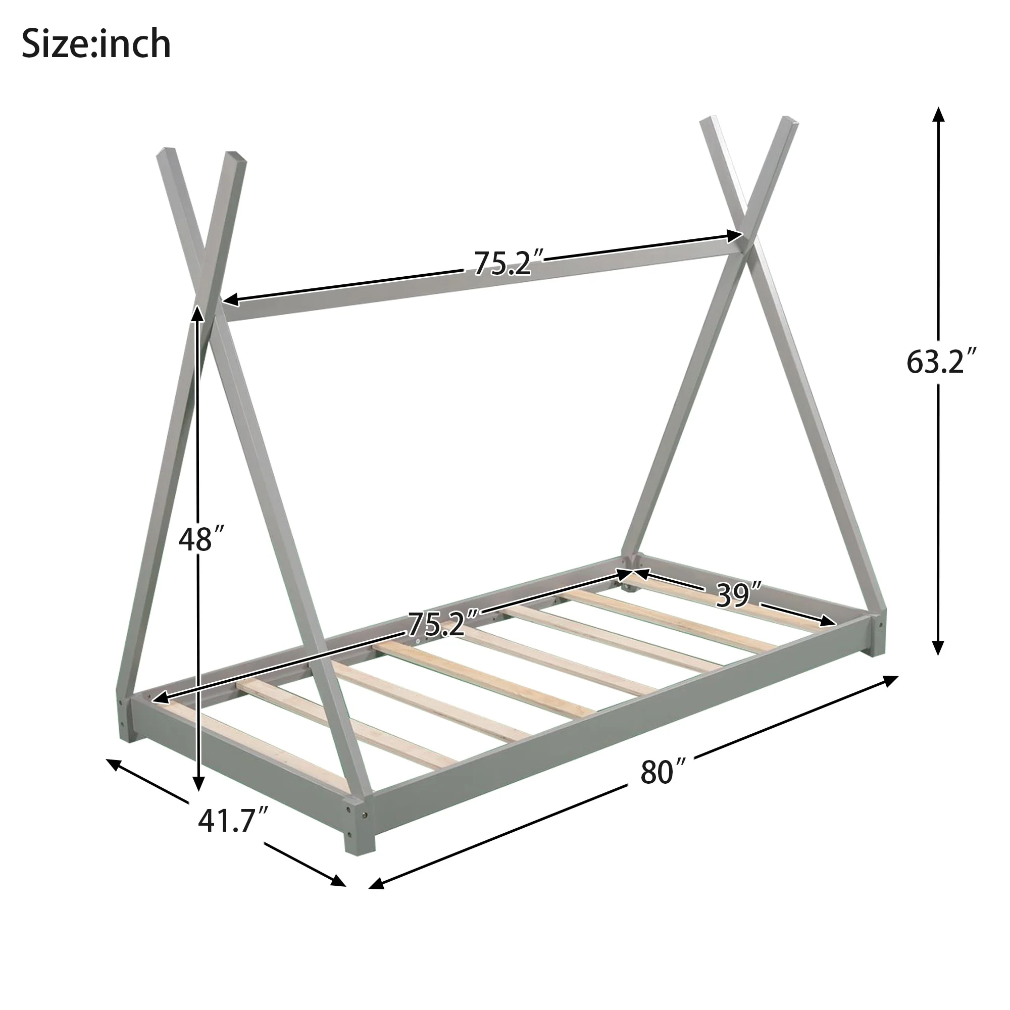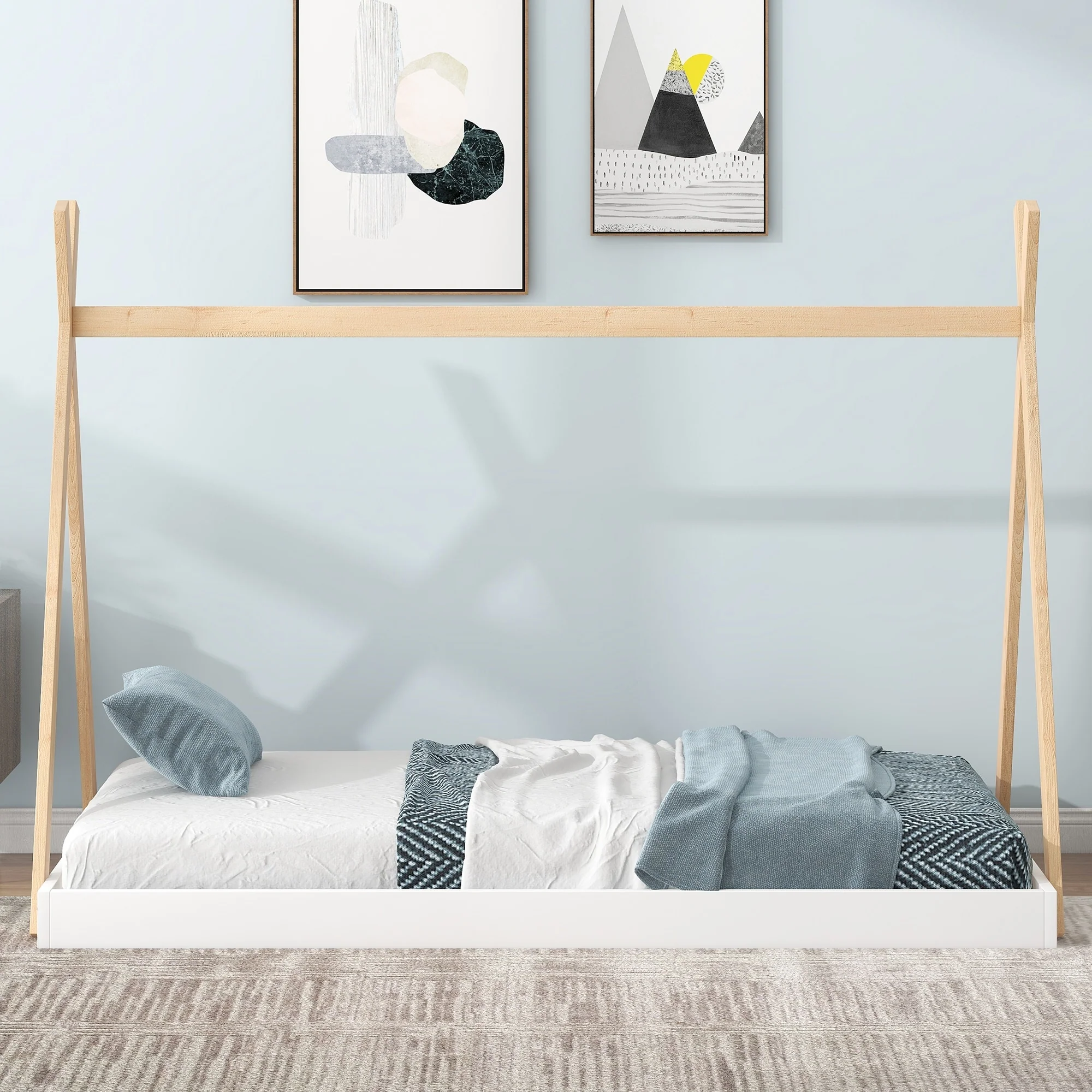 Twin Size Tent Floor Bed with Sturdy Triangle Structure for Kids