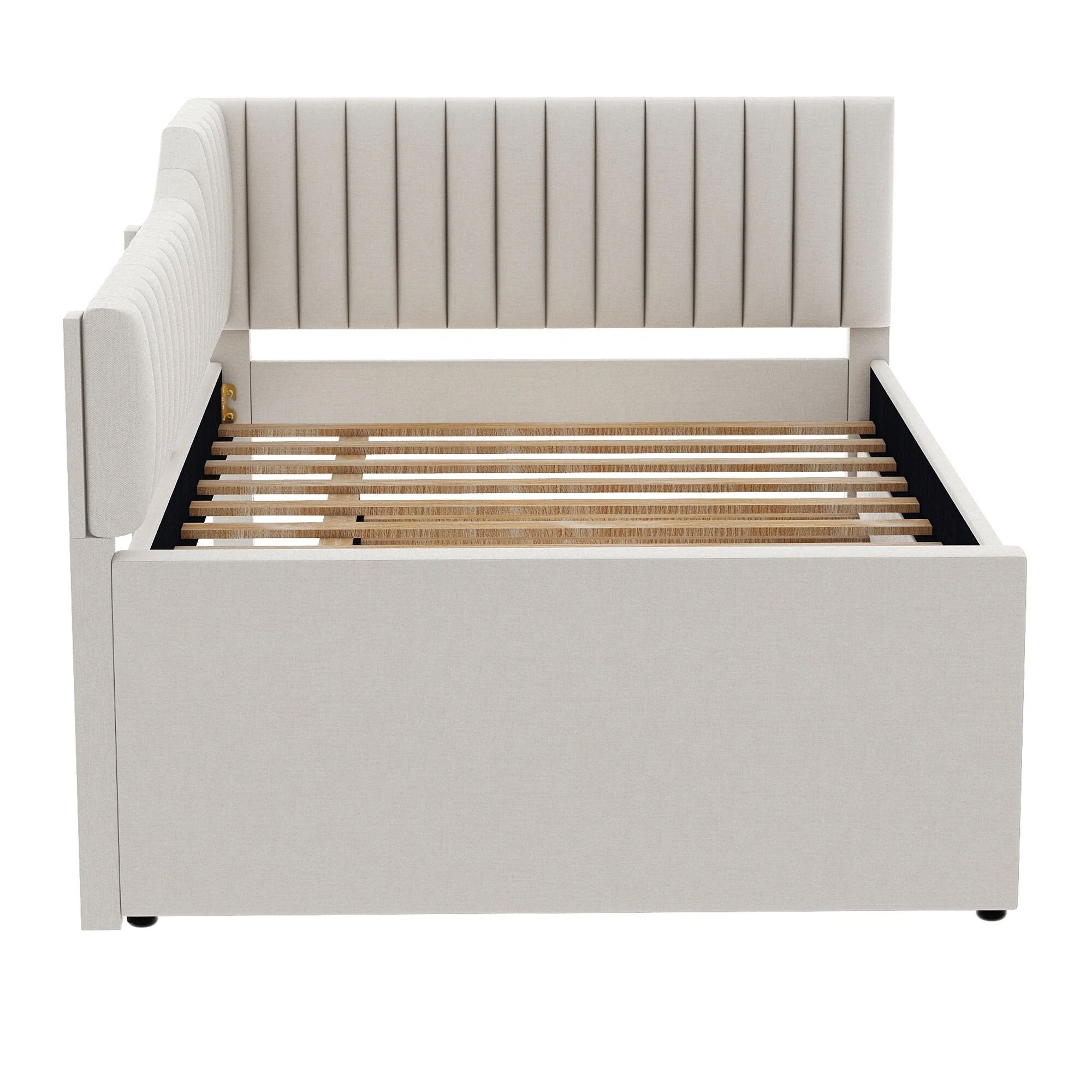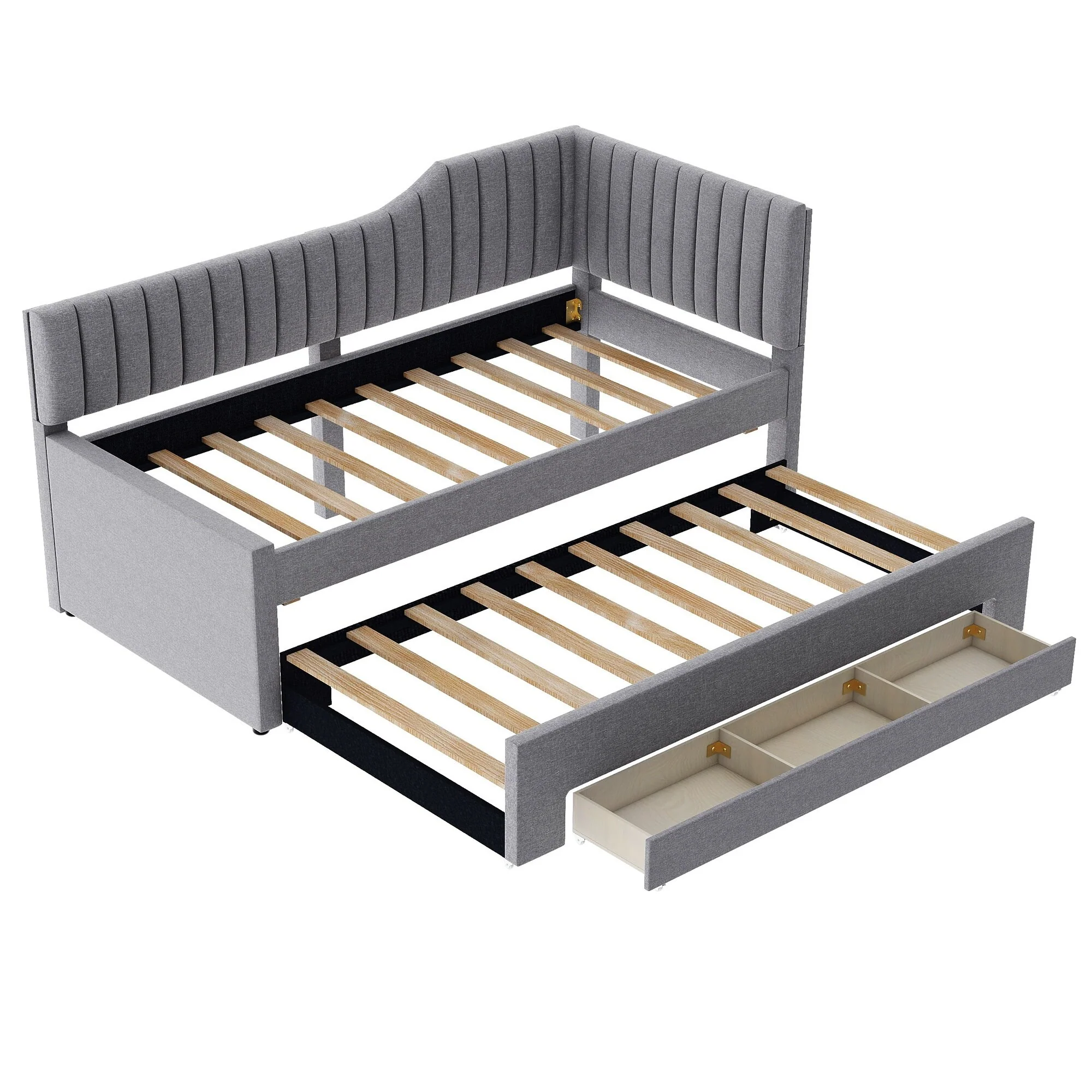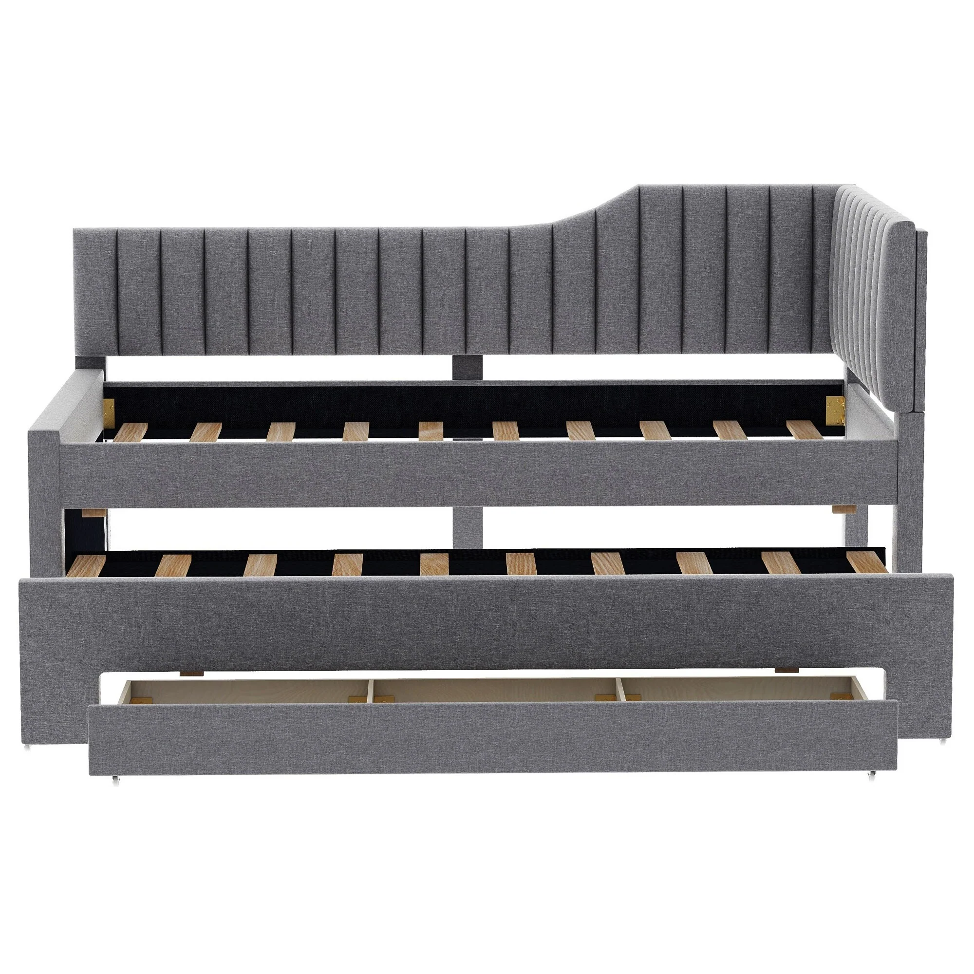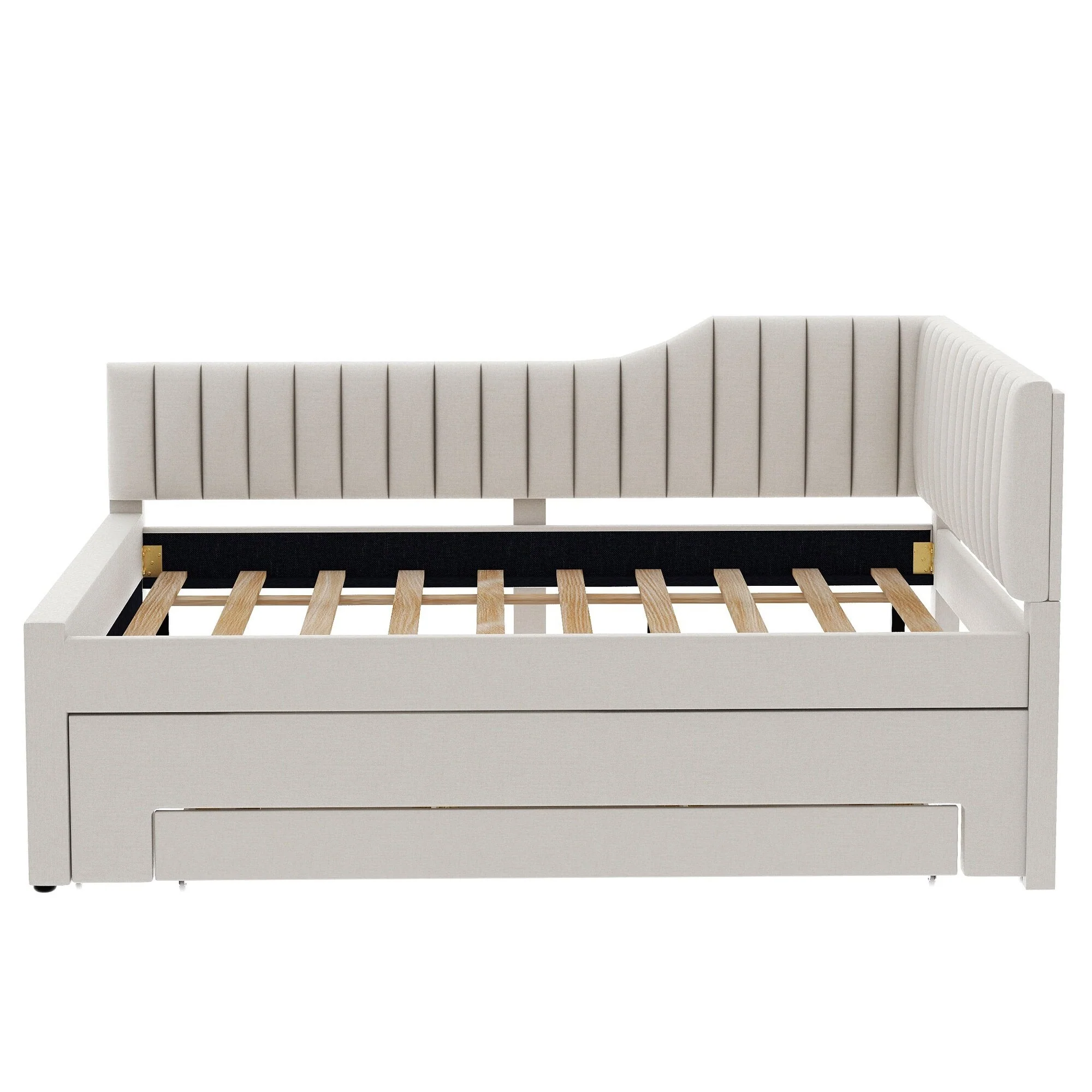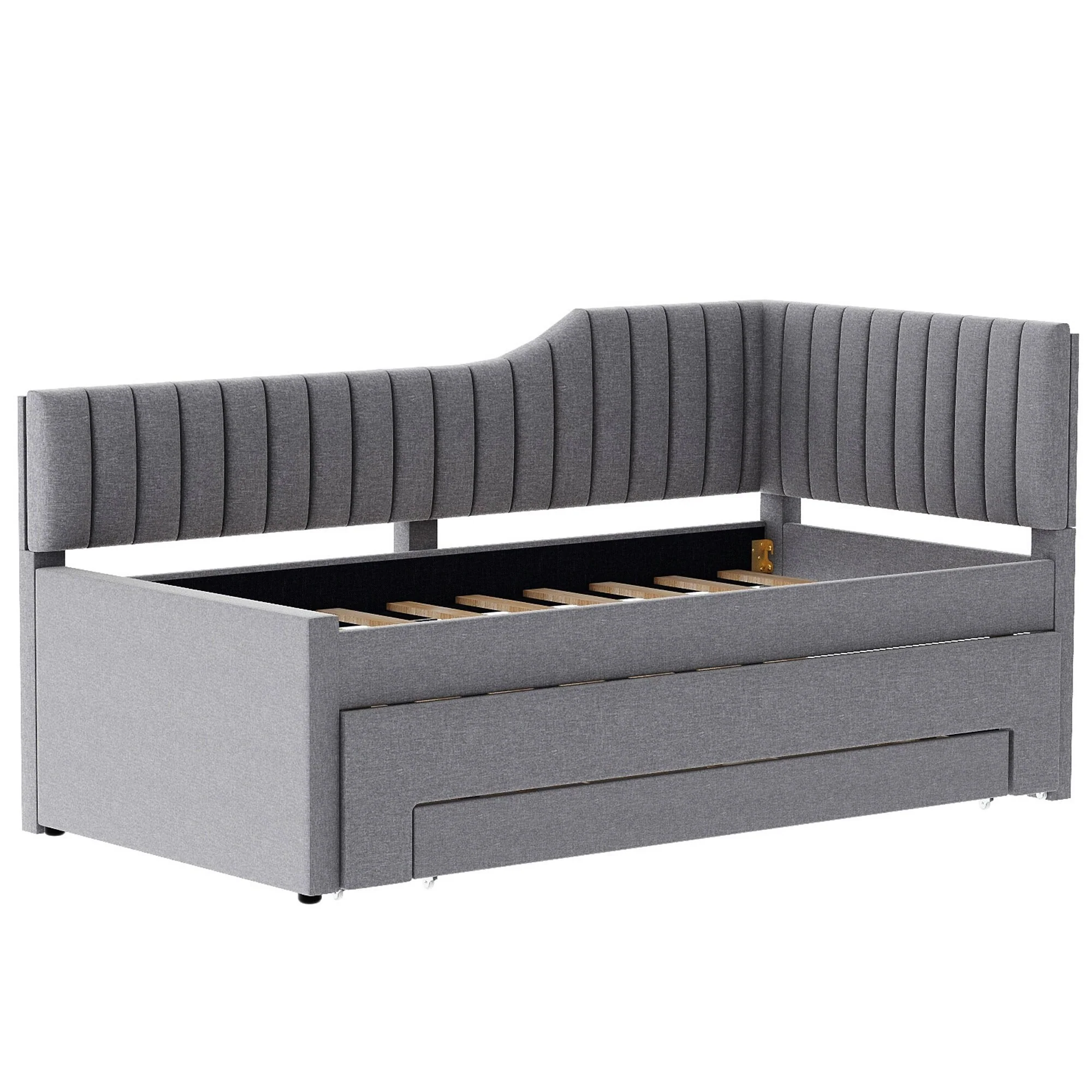 Daybed Captain Bed Upholstered Bed with Trundle and 3 Drawers, Elegance Stripe Design L-Shaped Upholstered Daybed Platform Bed
