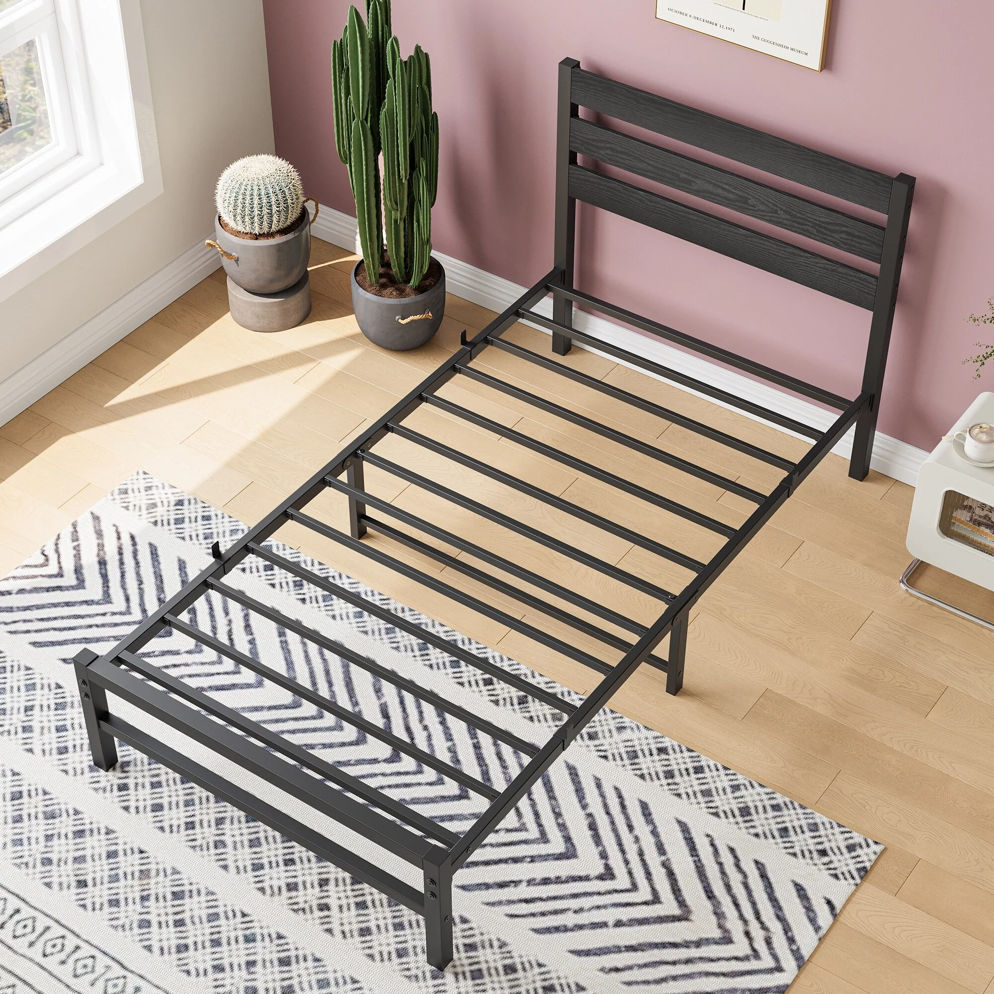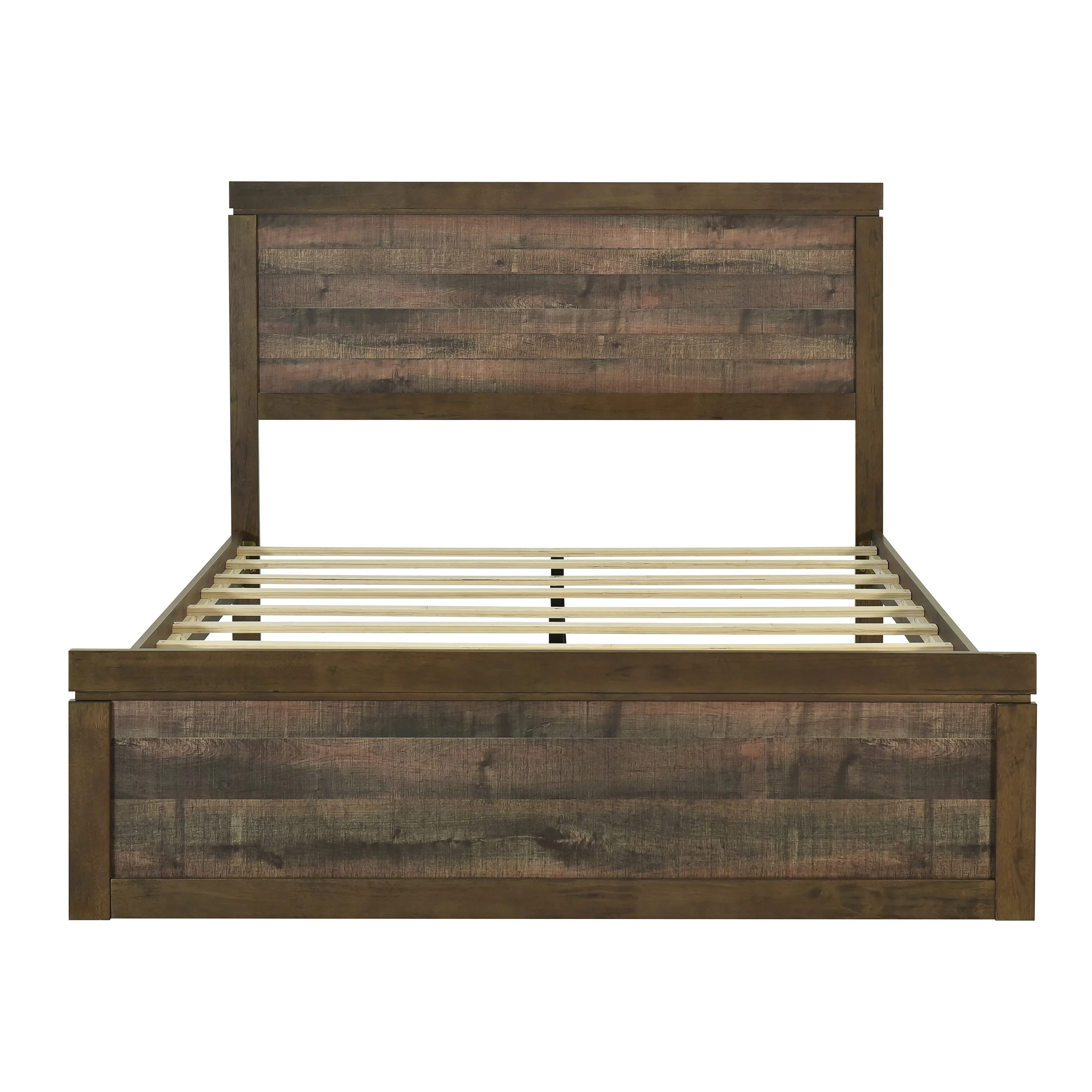 Durable Metal Platform Bed with Rustic Headboard, Extra Storage & Easy Assembly