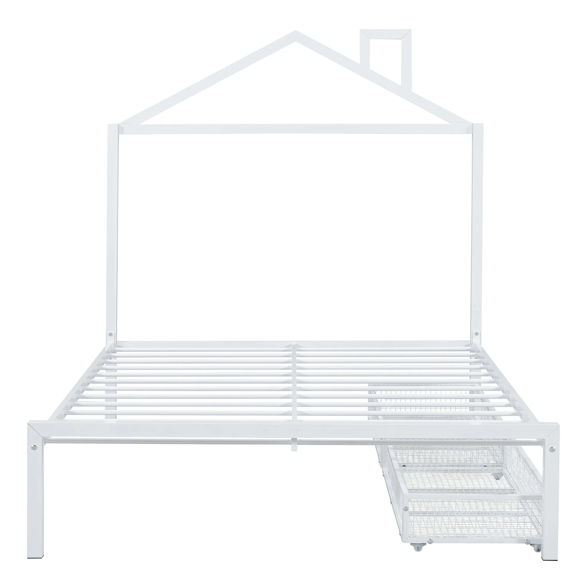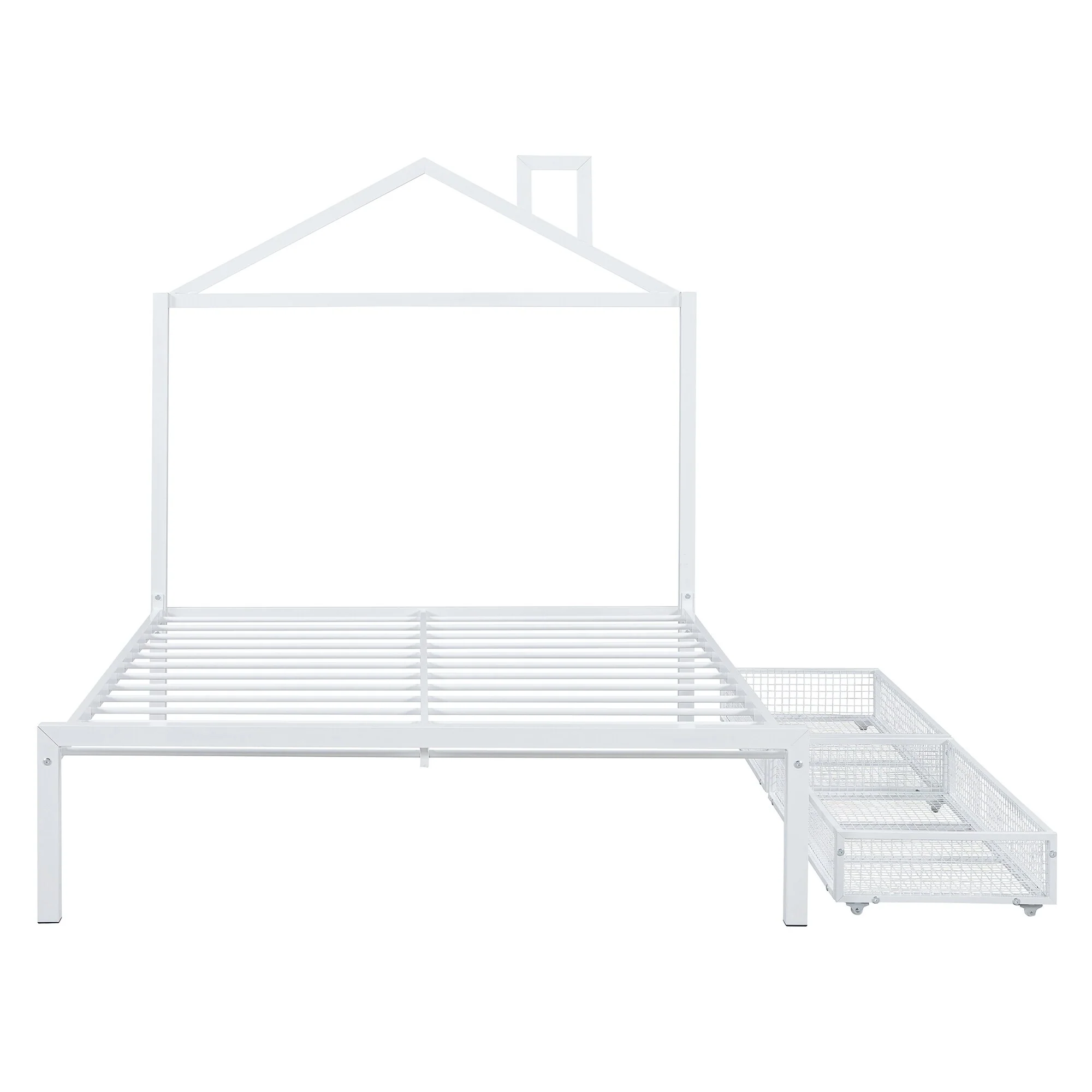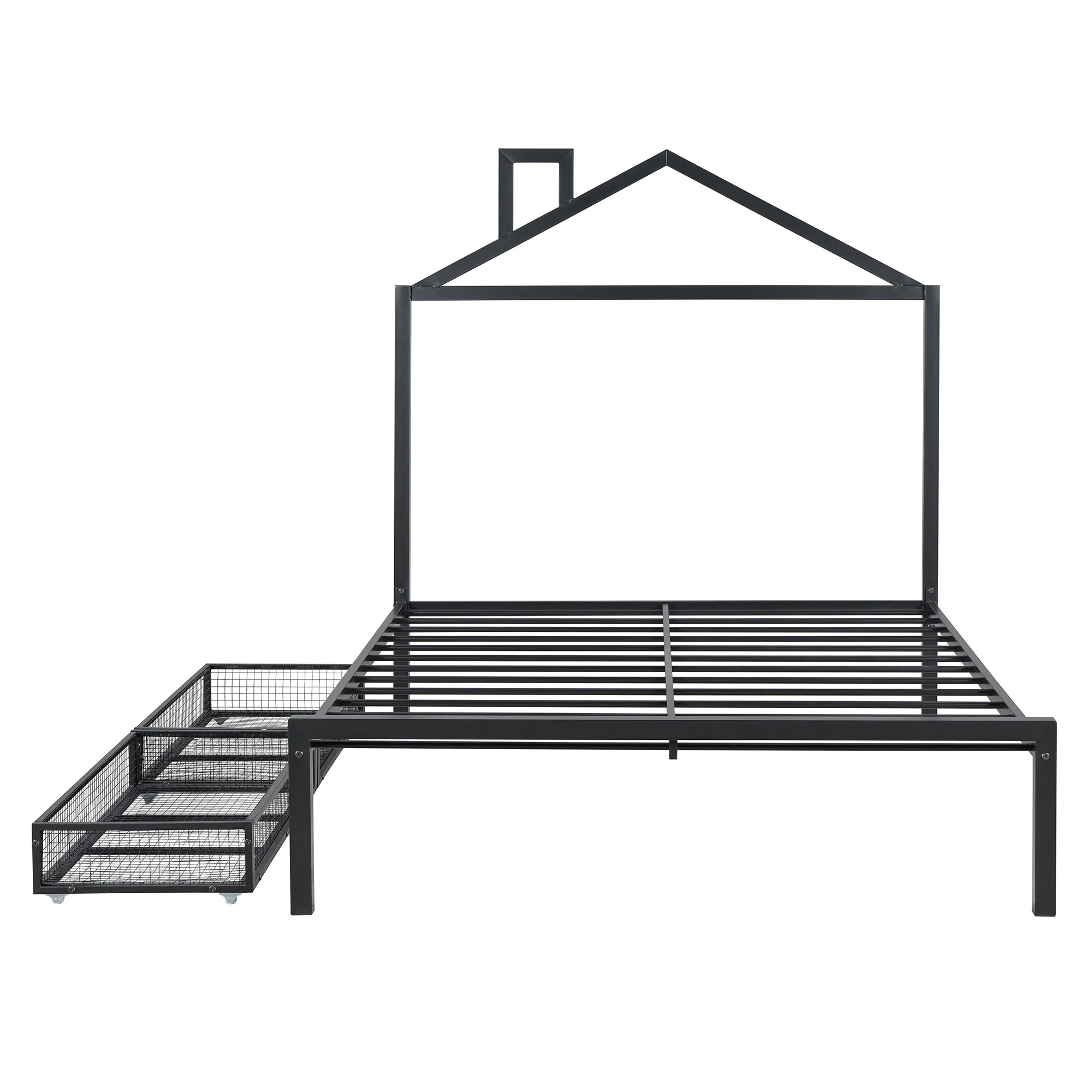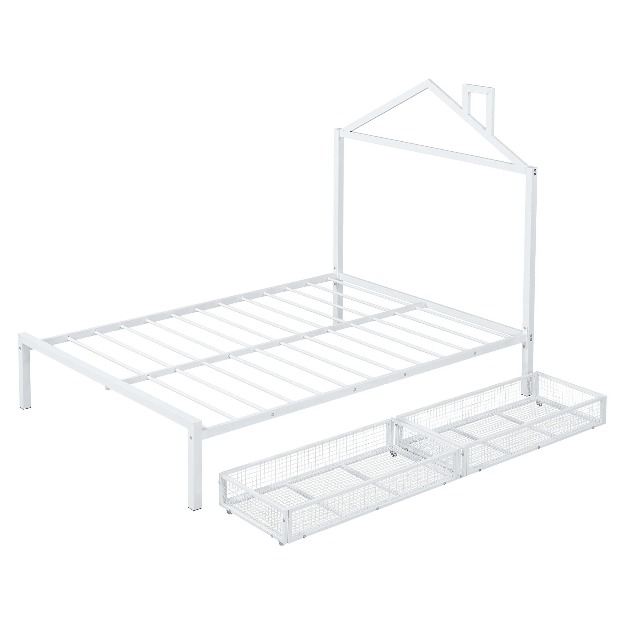Full Size Metal House Bed with Drawers and Chimney Design, No Box Spring Needed