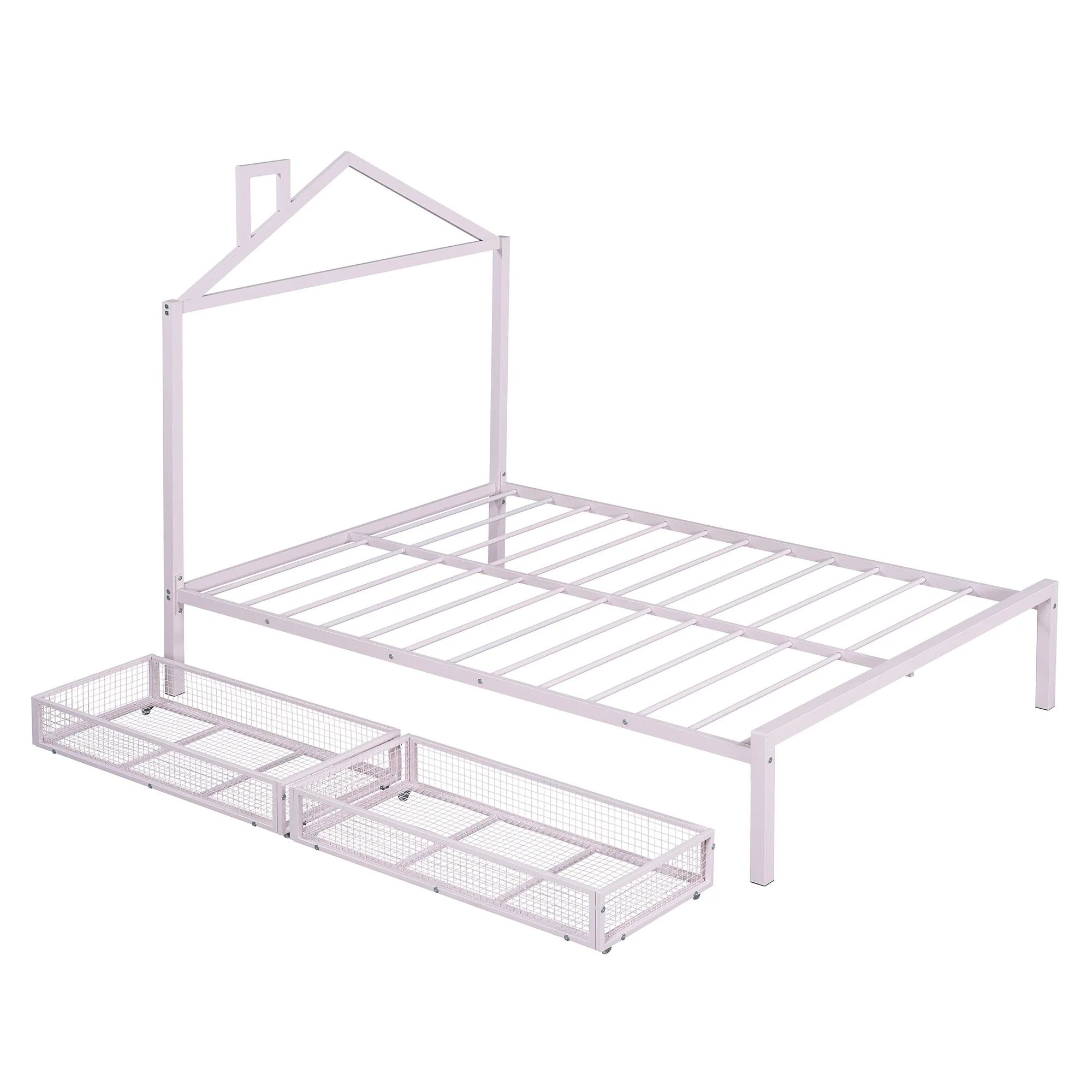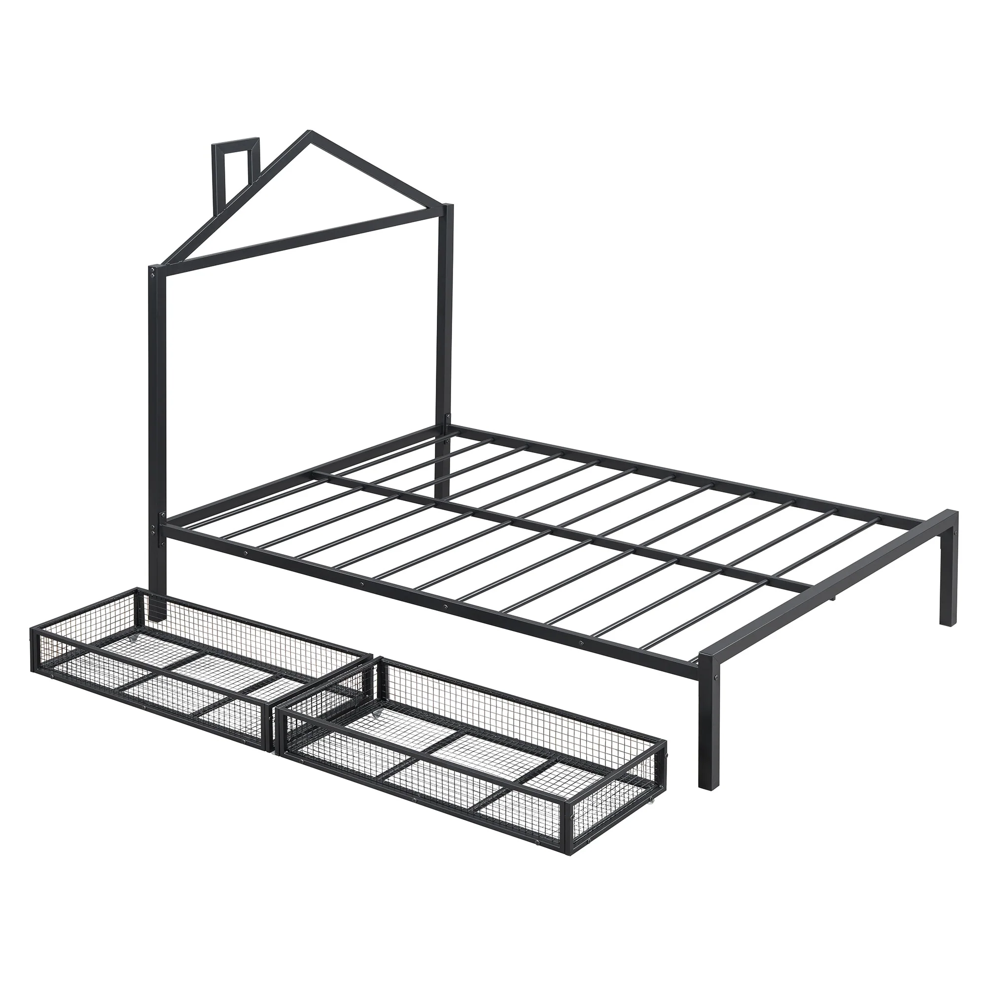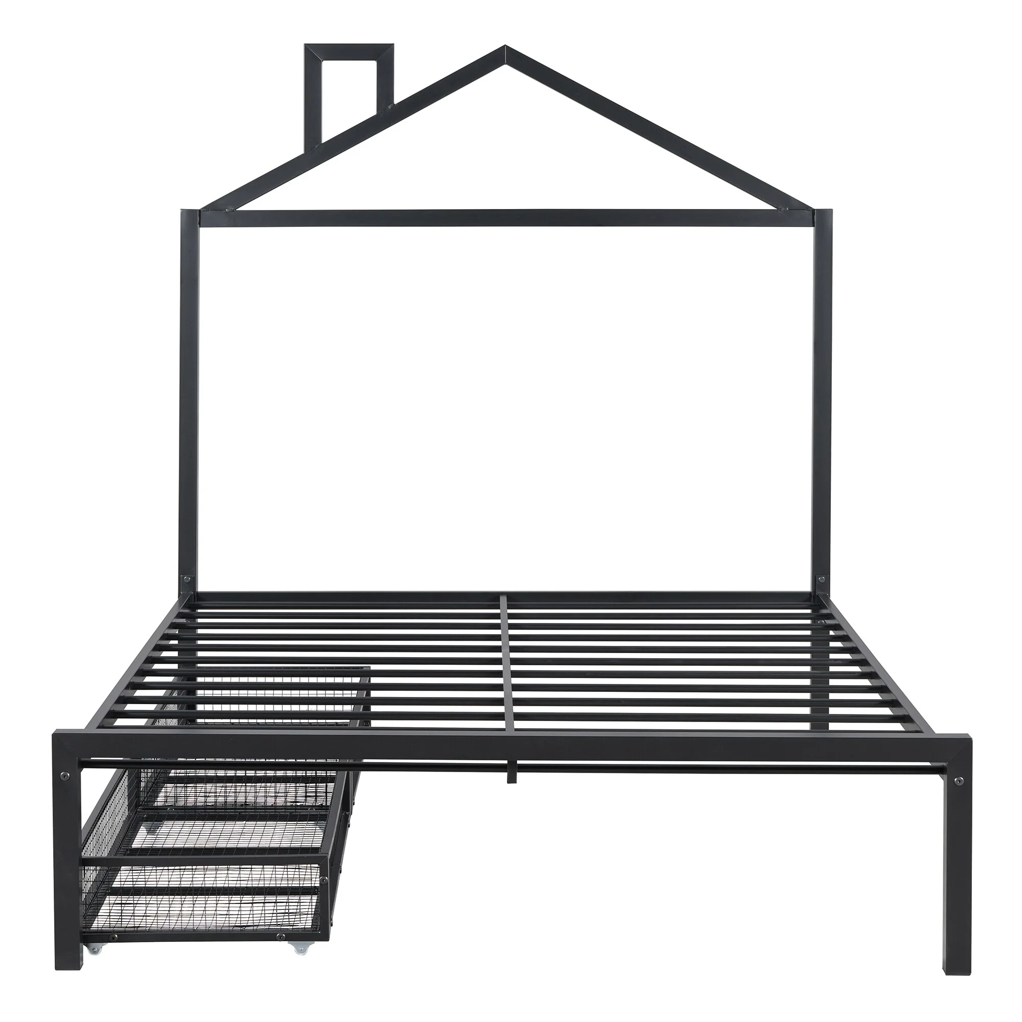 Full Size Metal House Bed with Drawers and Chimney Design, No Box Spring Needed