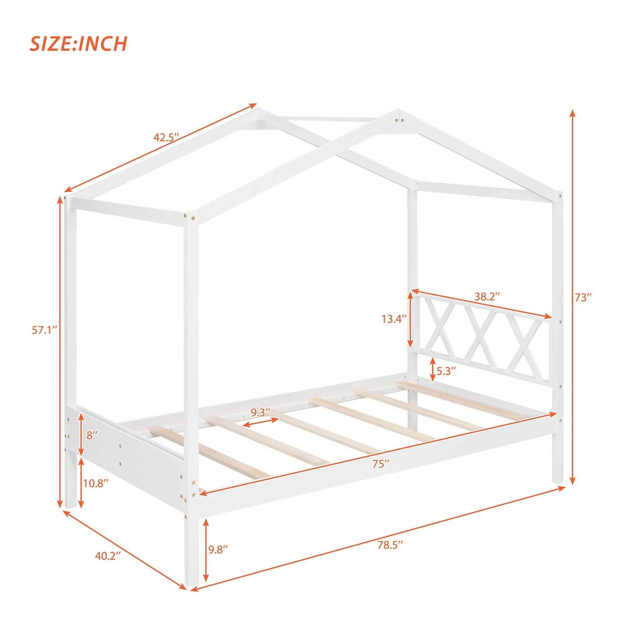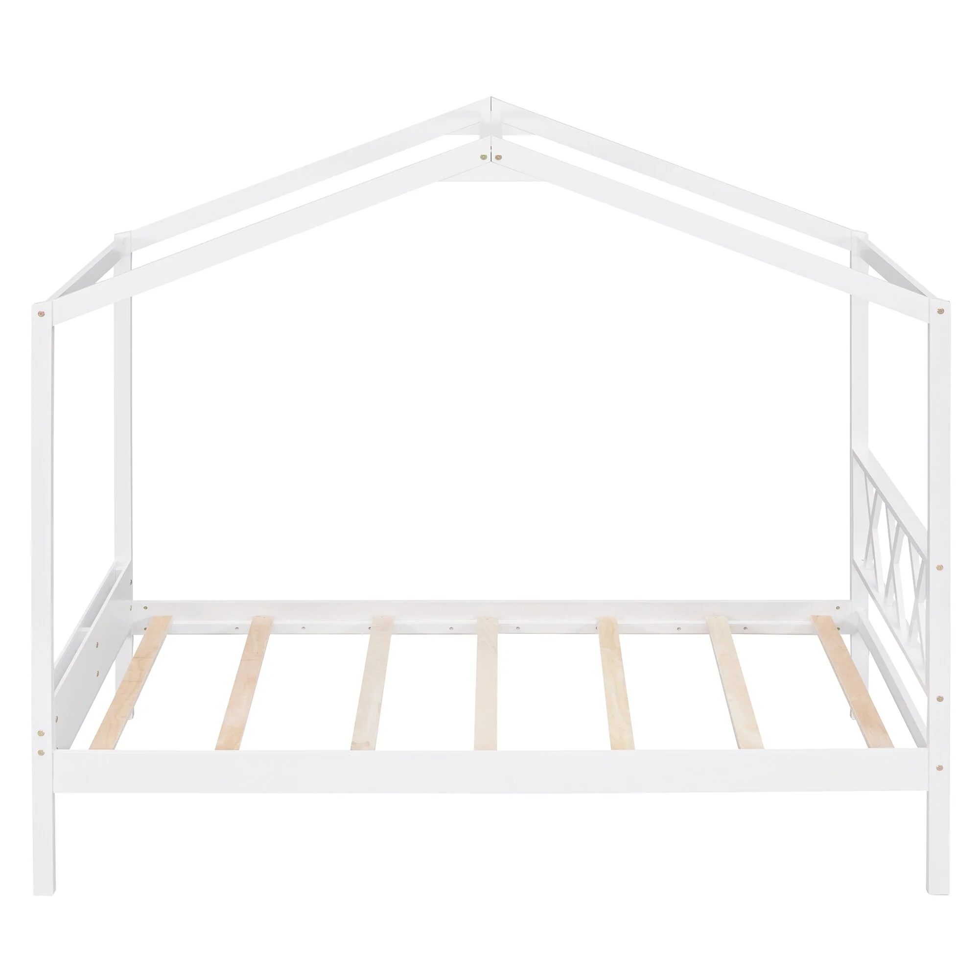 Kids Twin House Bed with Low Platform and Sturdy Pine Frame