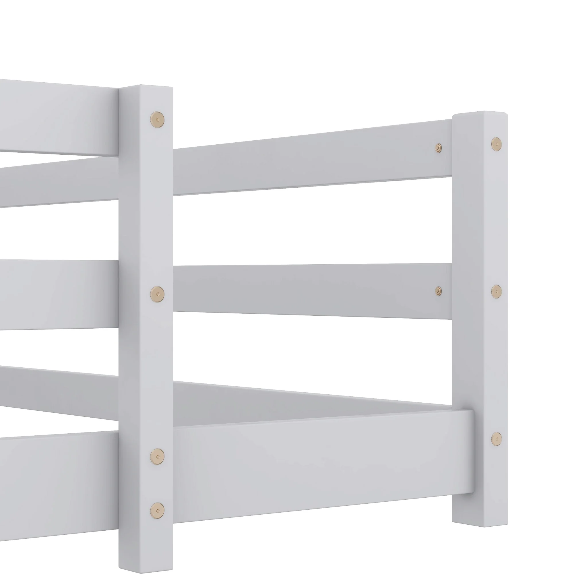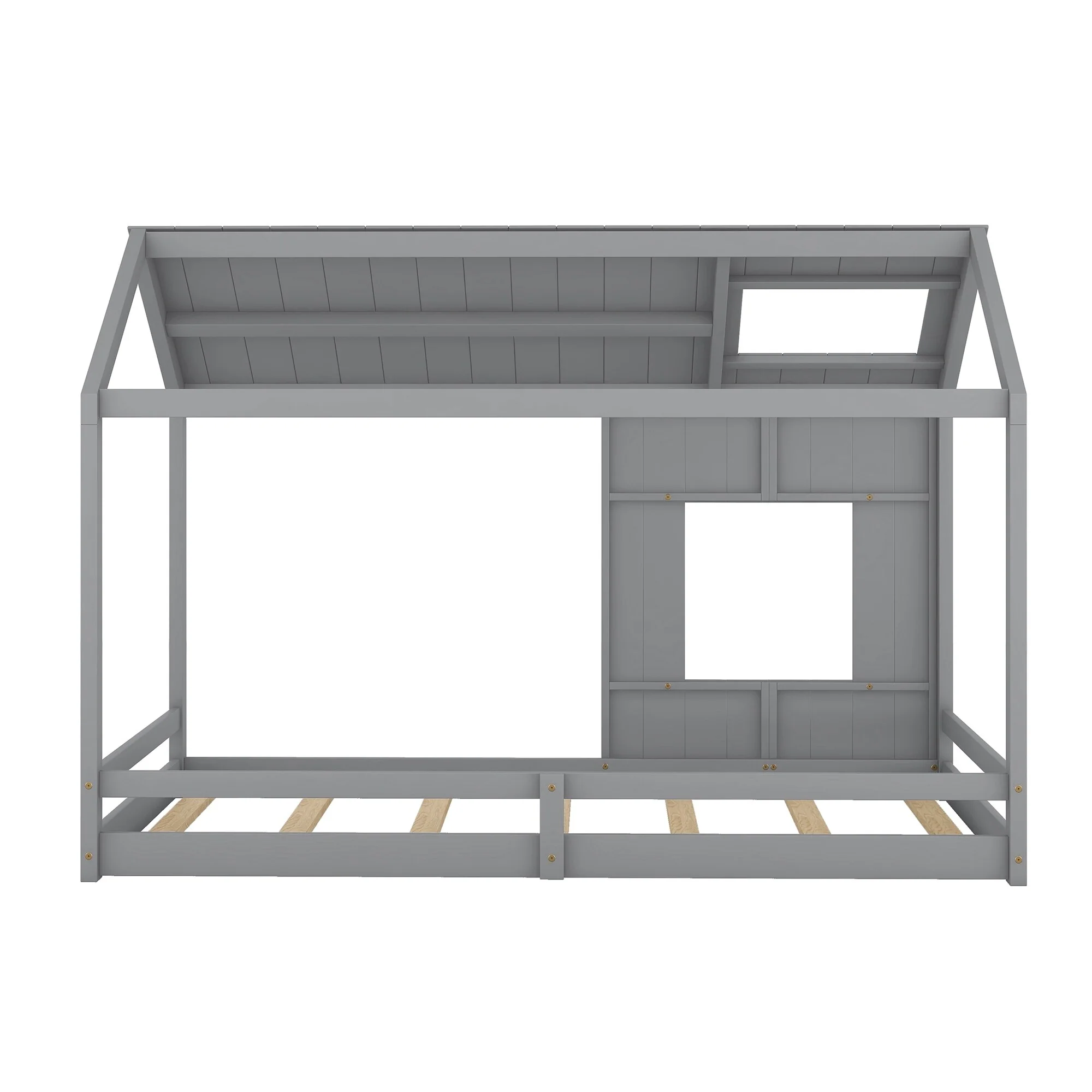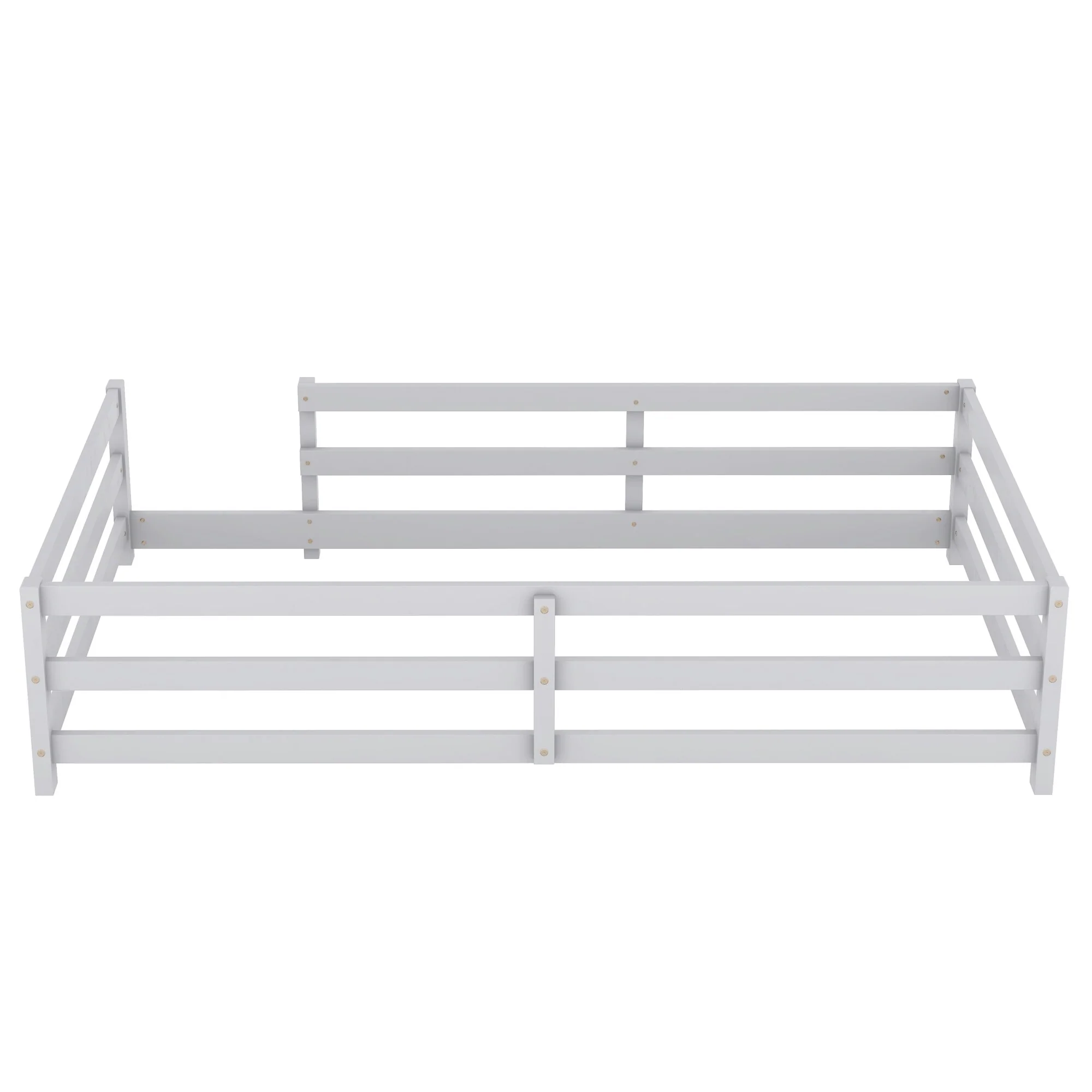 Grey Full Size House Frame Floor Bed with Safety Fence Design