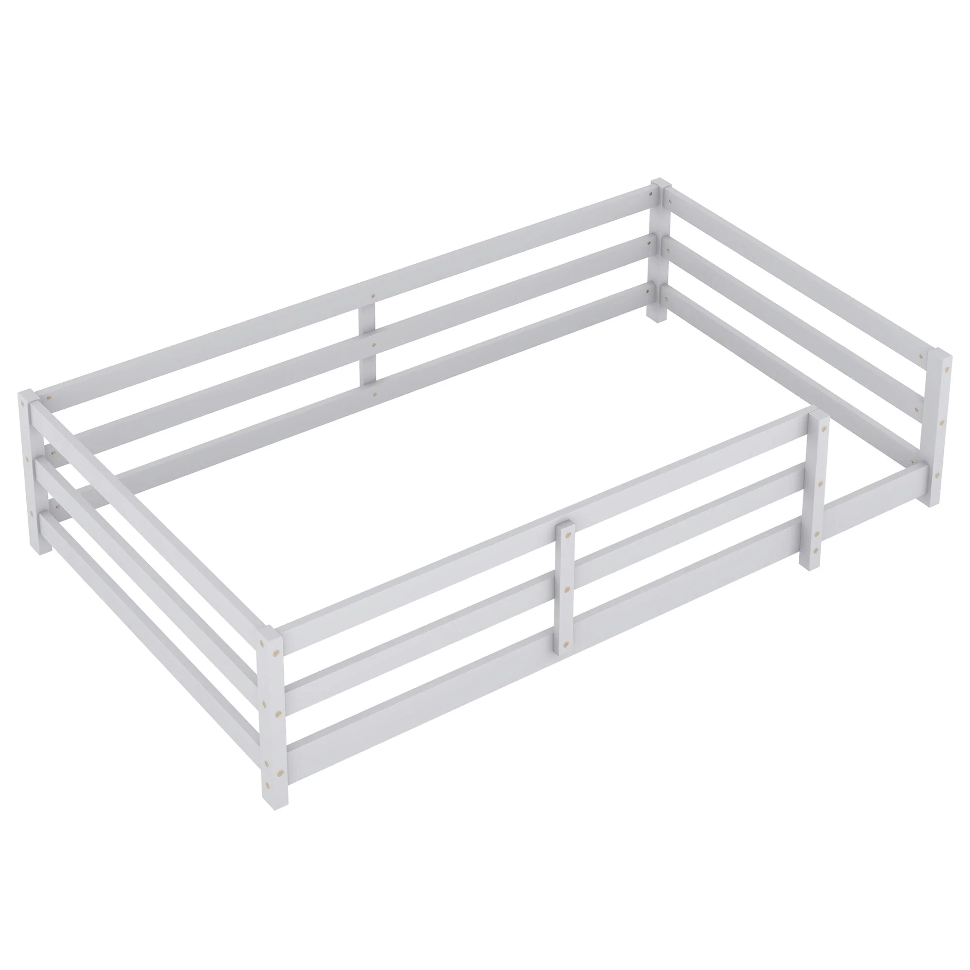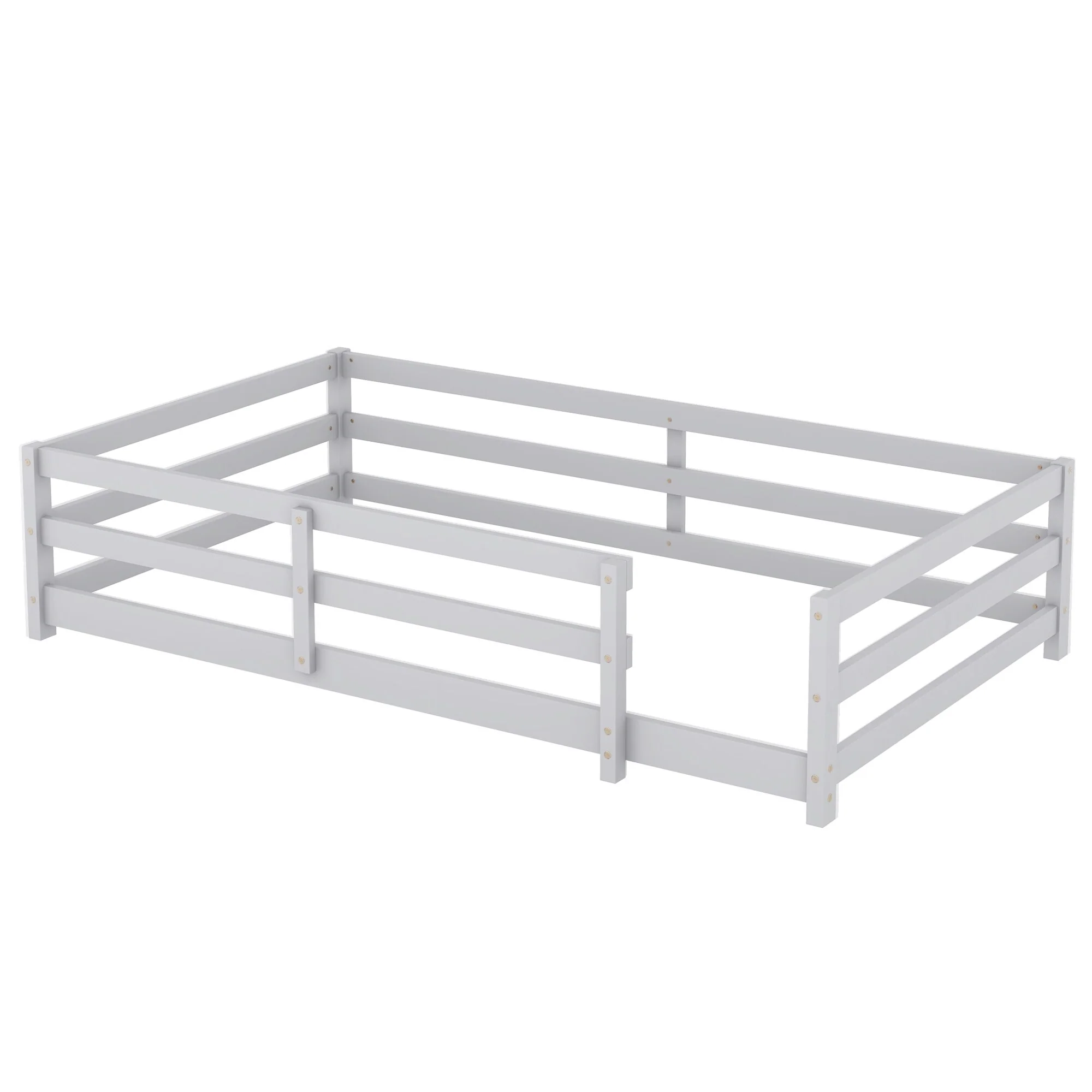 Toddler Montessori Bed Kids Floor Bed Frame with Fences, No Slats Wood Frame Bed for Kids Girls Boys Children's Room