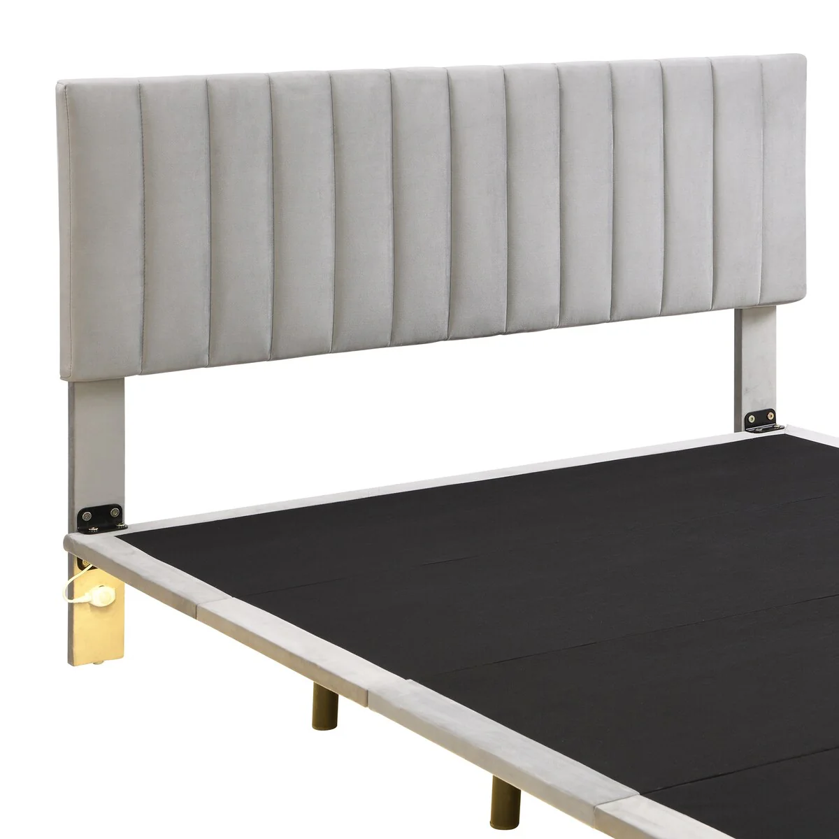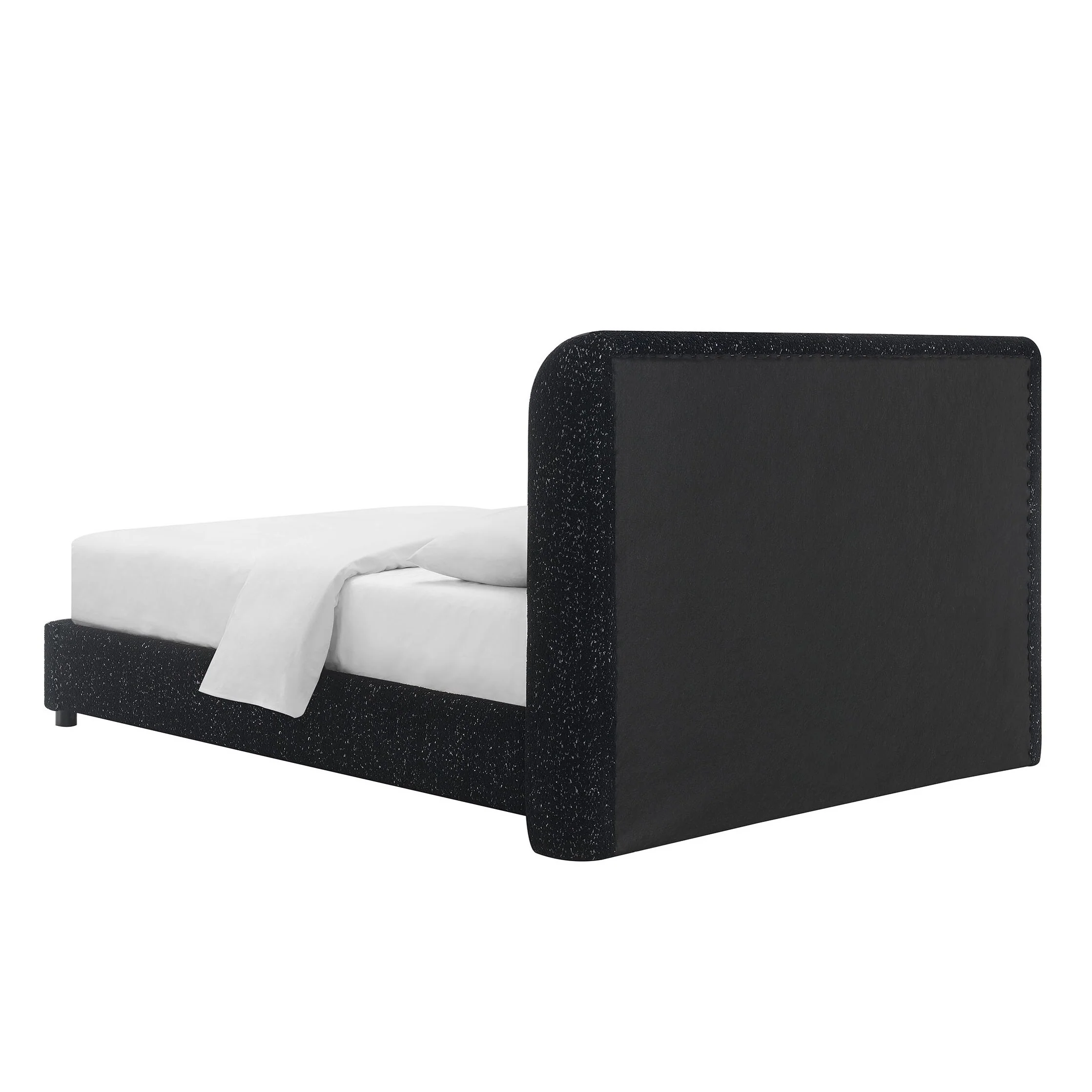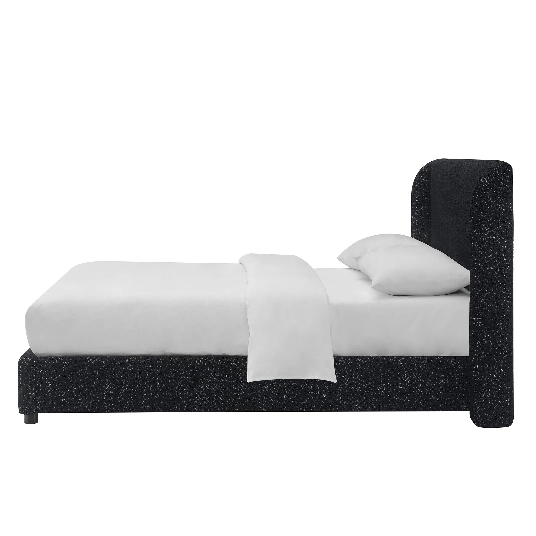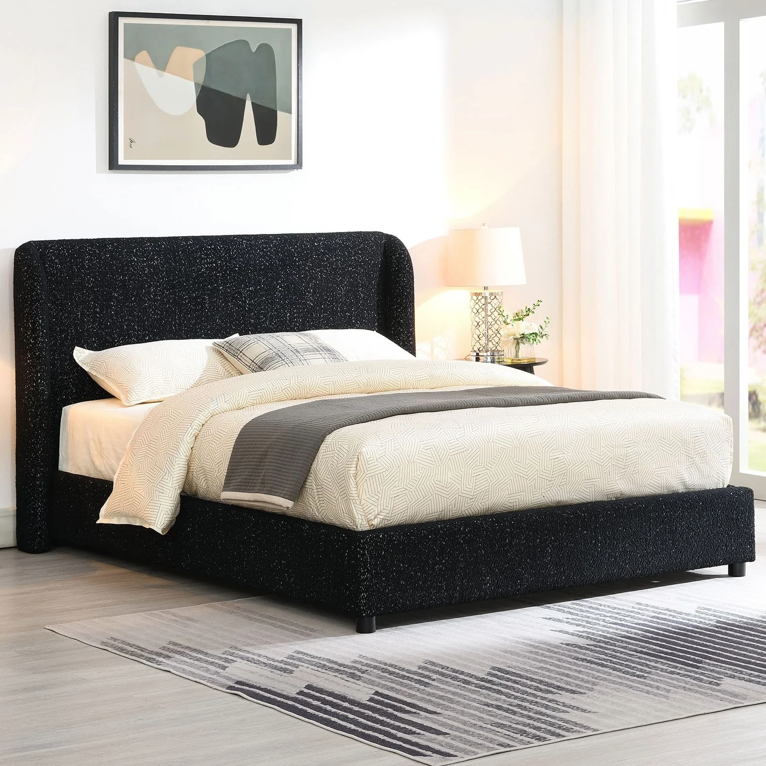 Modern Queen Bed Frame with Teddy Velvet Upholstered Headboard and Underbed Storage