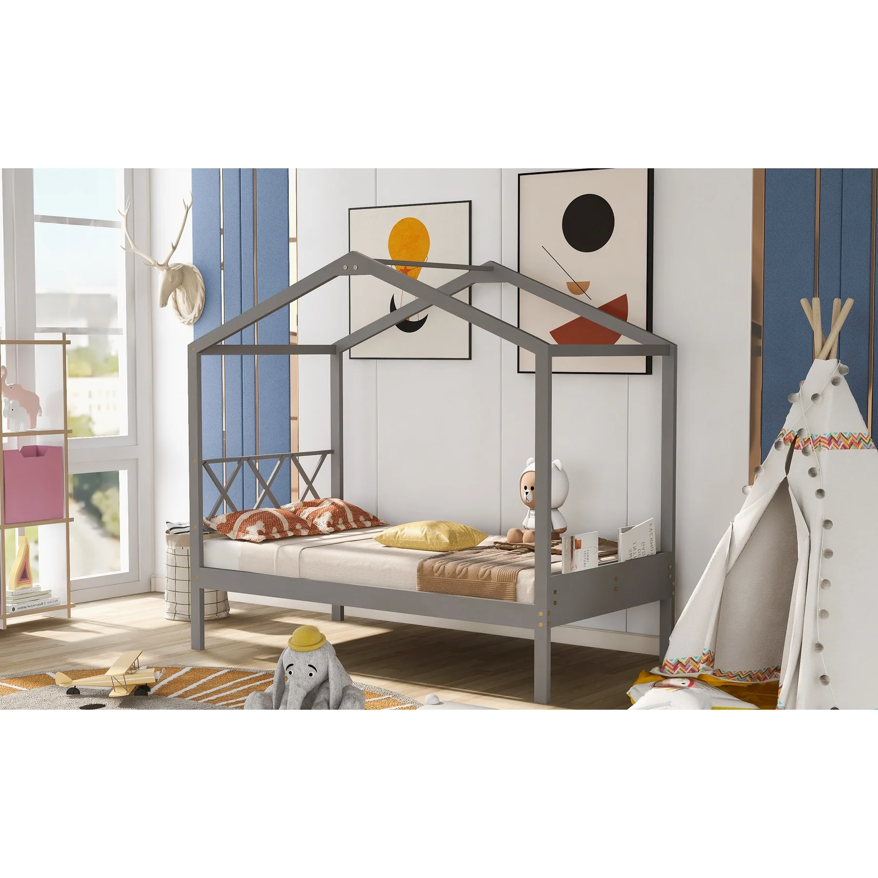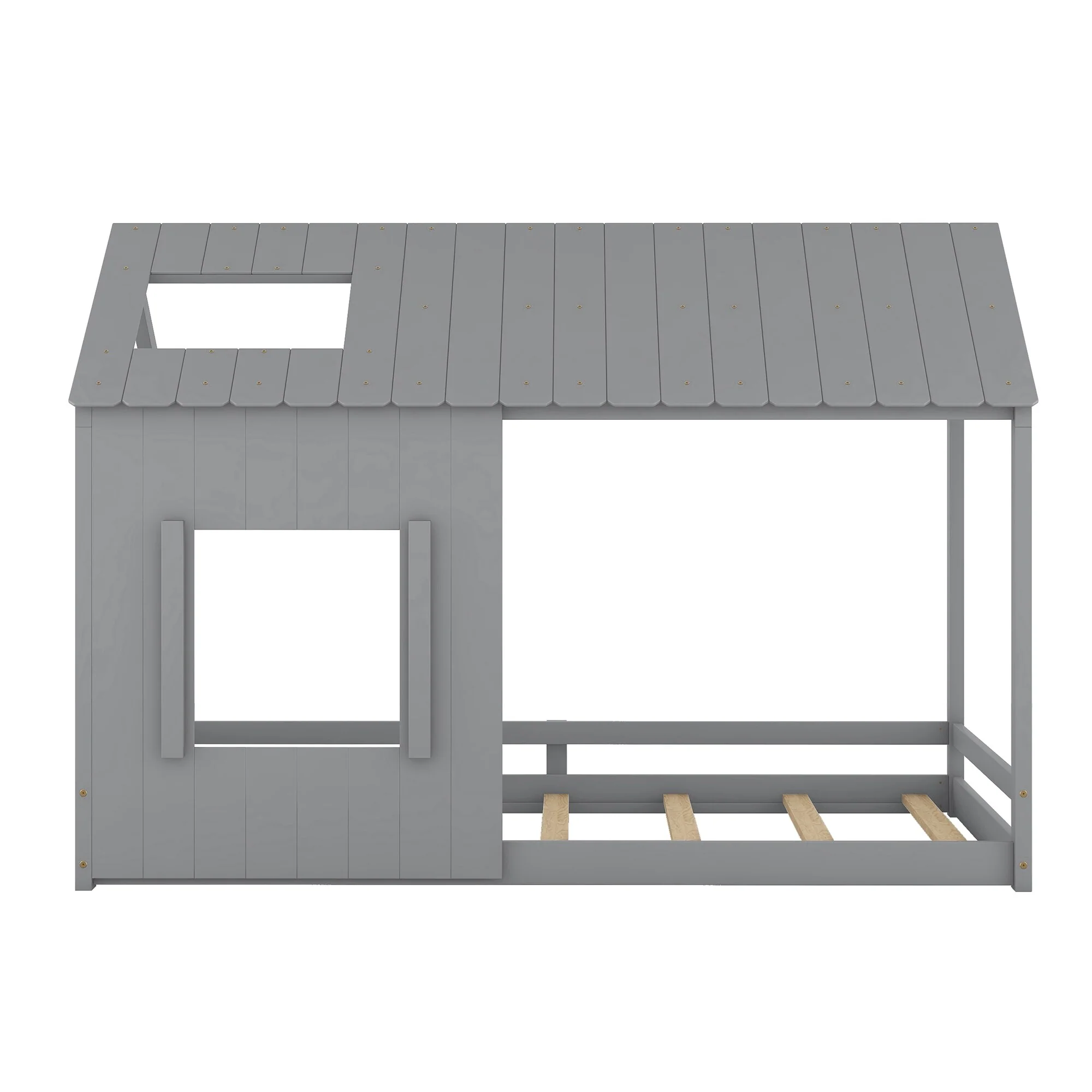 Open Concept Twin House Bed with Roof Design, Fun & Functional Bed Frame