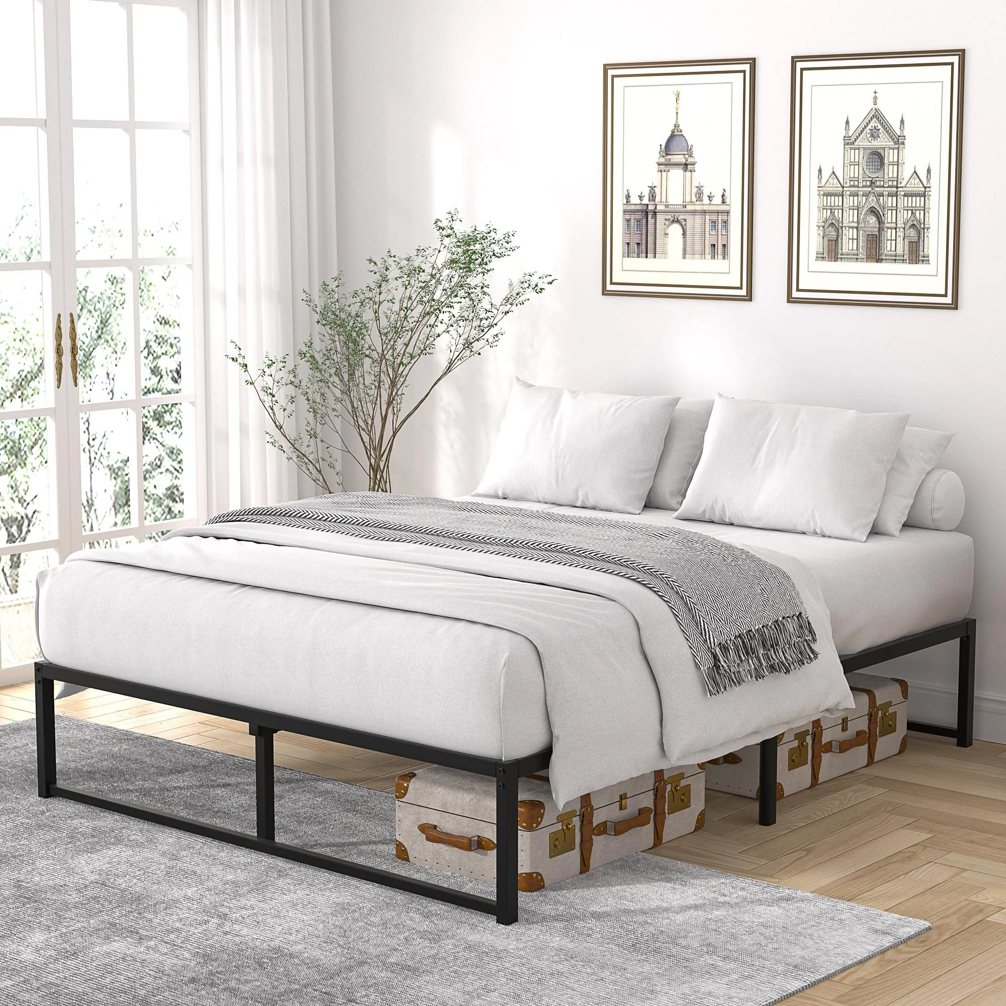 14 Inch Bed Frames,3500 lbs Heavy Duty Metal Platform,Steel Slats Support/No Box Spring Needed