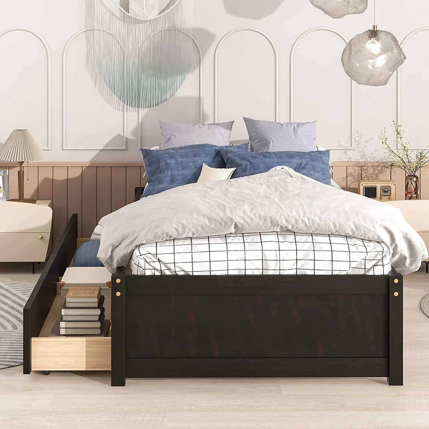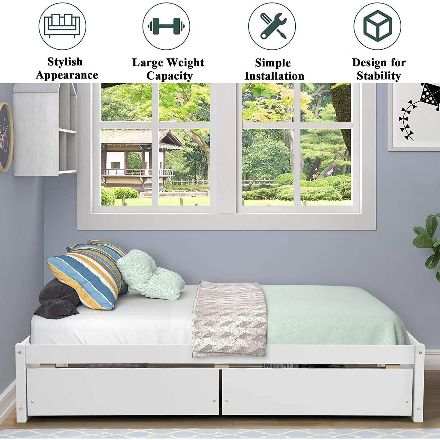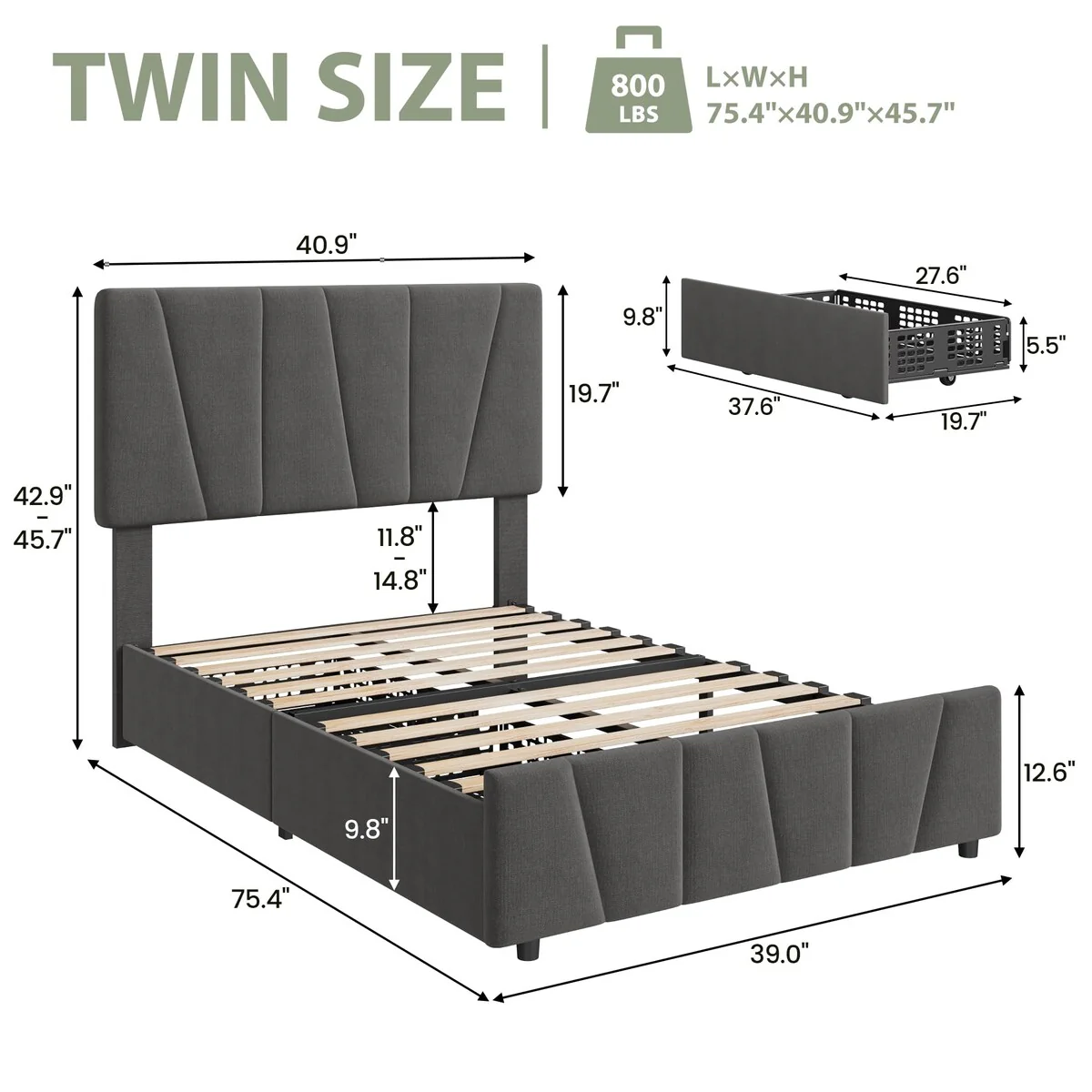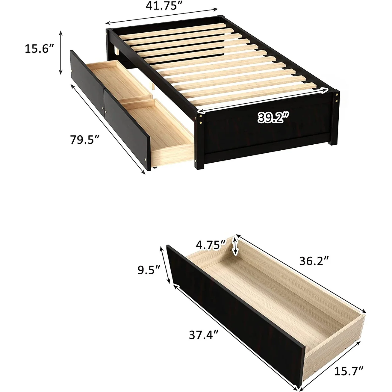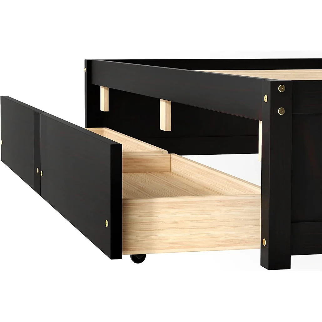 Twin Size Platform Bed with Two Drawers - Space-Saving Design, High-Quality Pine Wood
