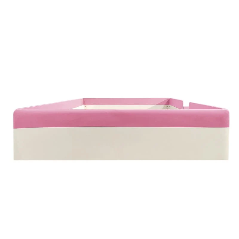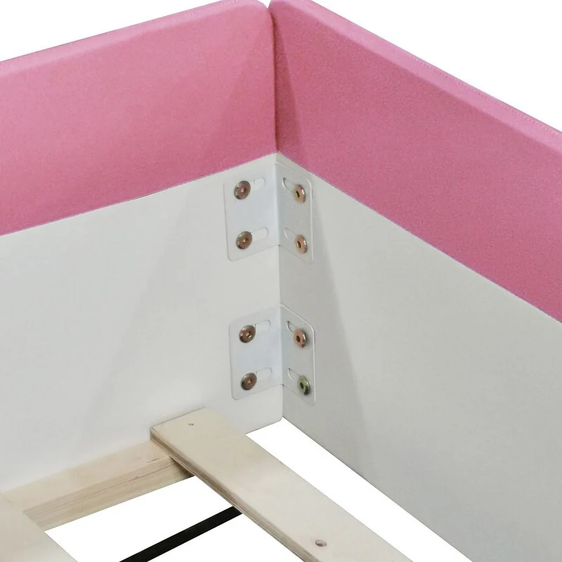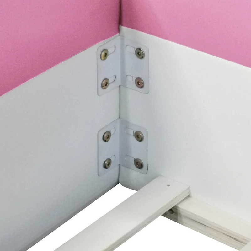 Gibson Transitional Rose Gold Wood Button Tufted Kid Panel Bed with Padded Faux Leather Headboard by Silver Orchid