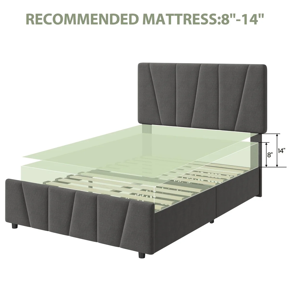 Upholstered Platform Bed Frame with Adjustable Headboard and Drawers