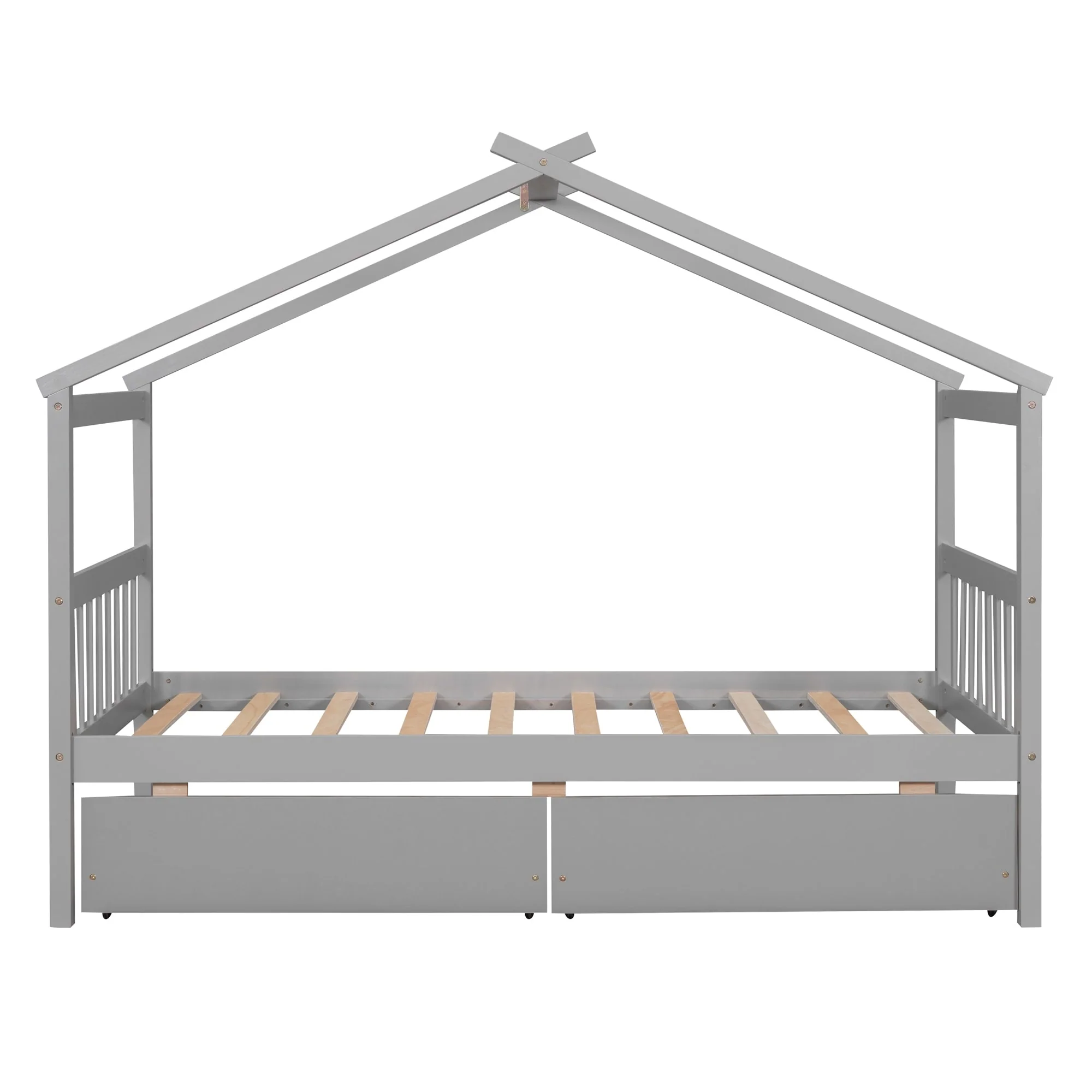 Twin Size Wooden House Bed with Drawers