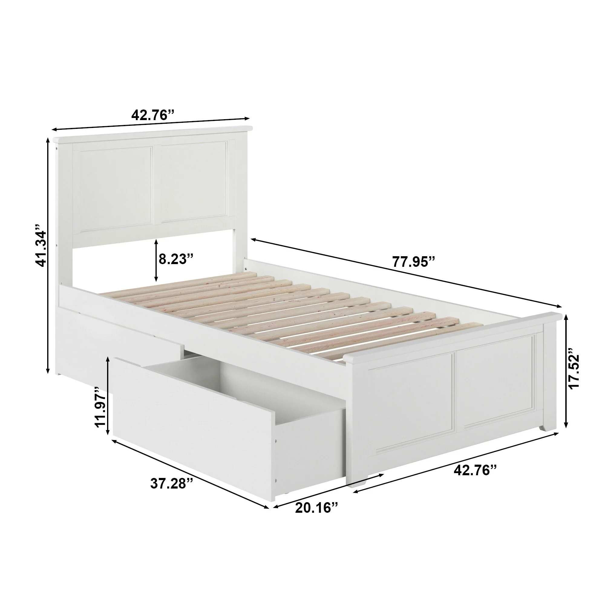 Madison Twin Platform Bed with Matching Footboard and 2 Bed Drawers in White
