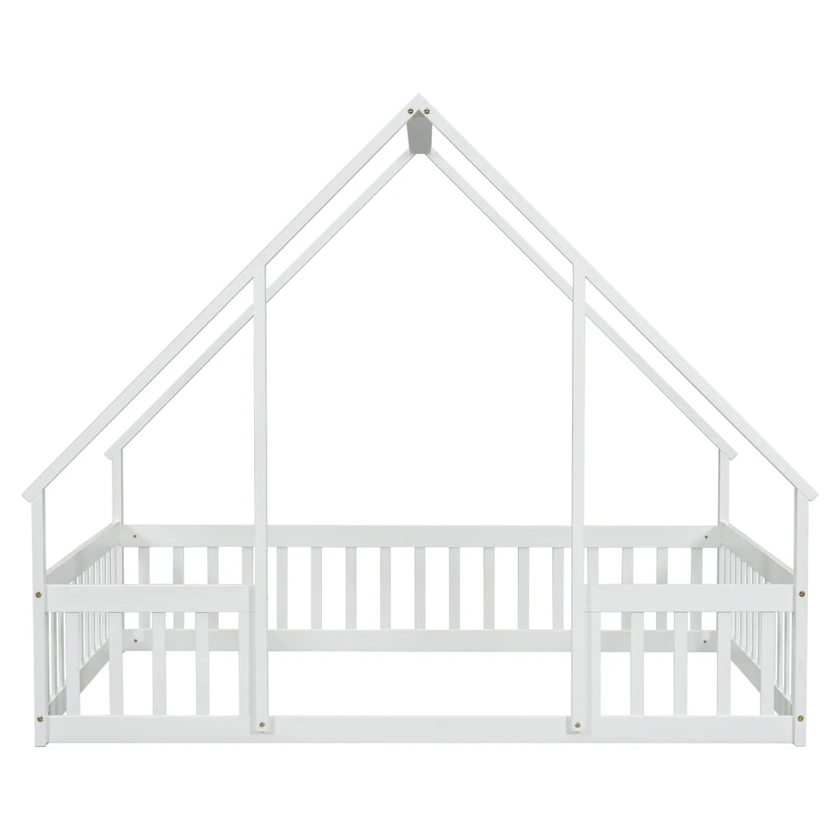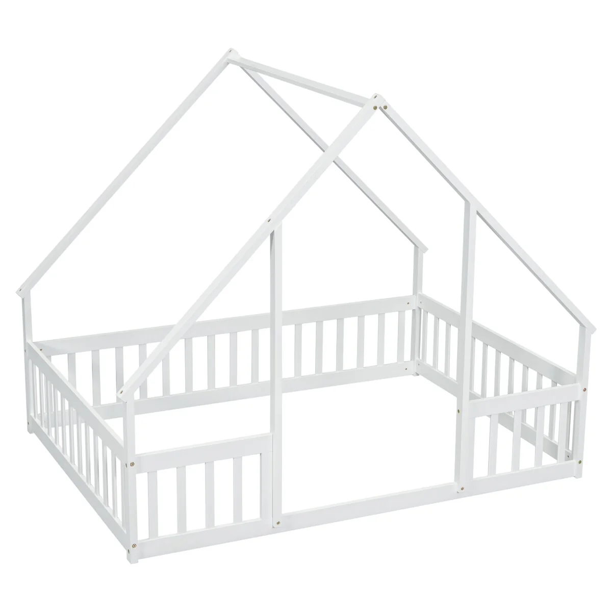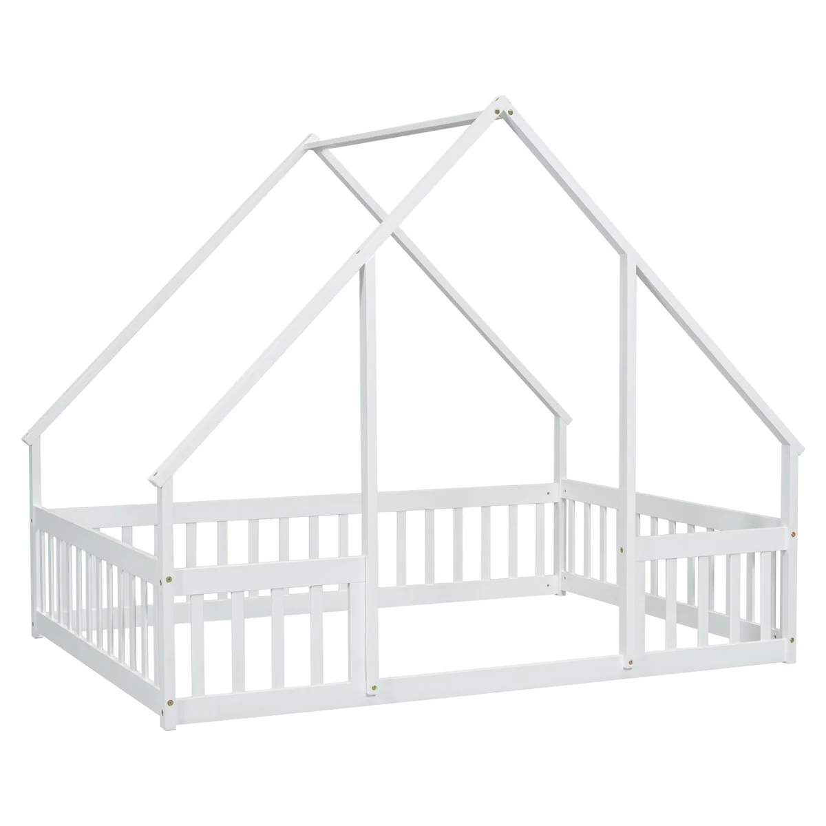 Full Wood House-Shaped Floor Bed with Fence