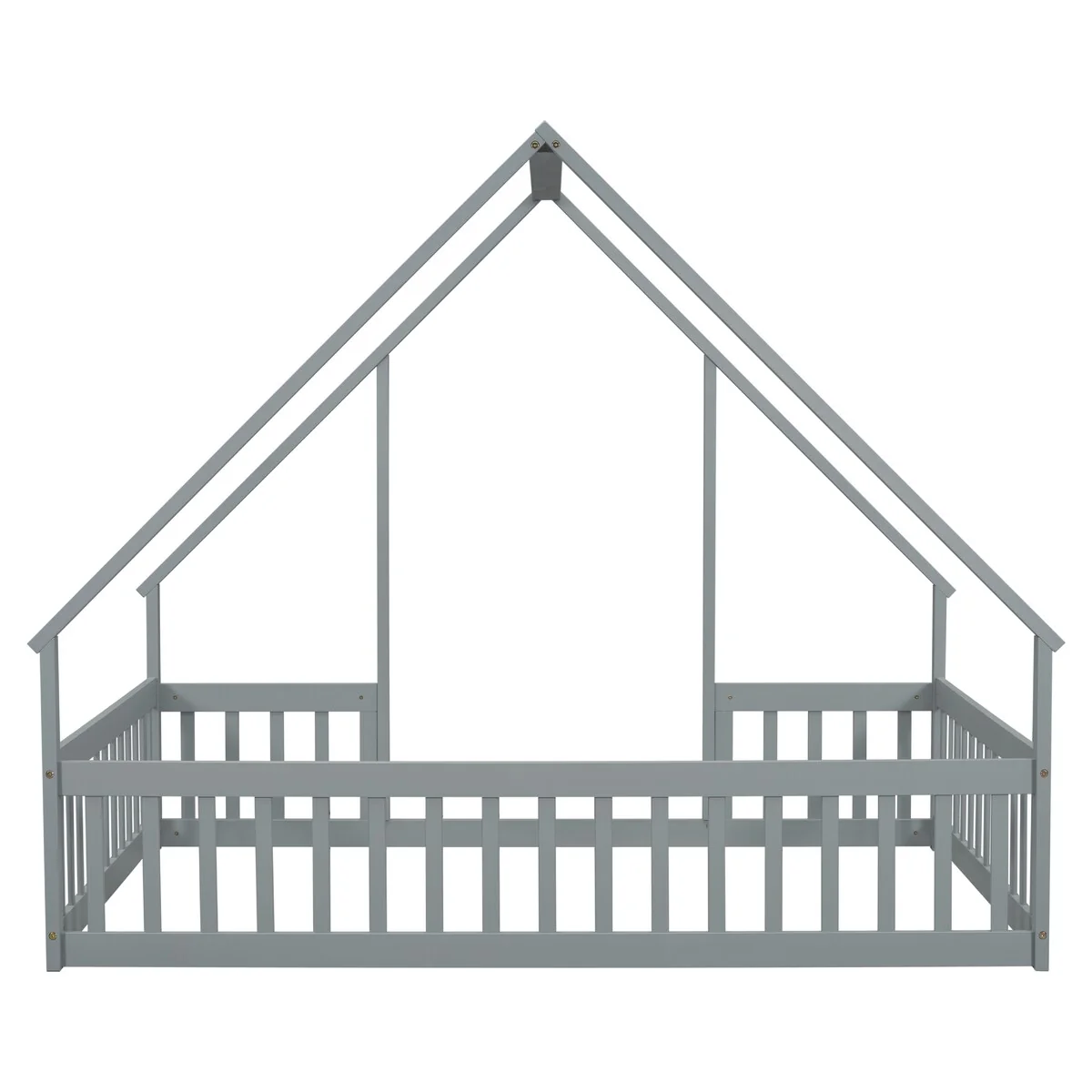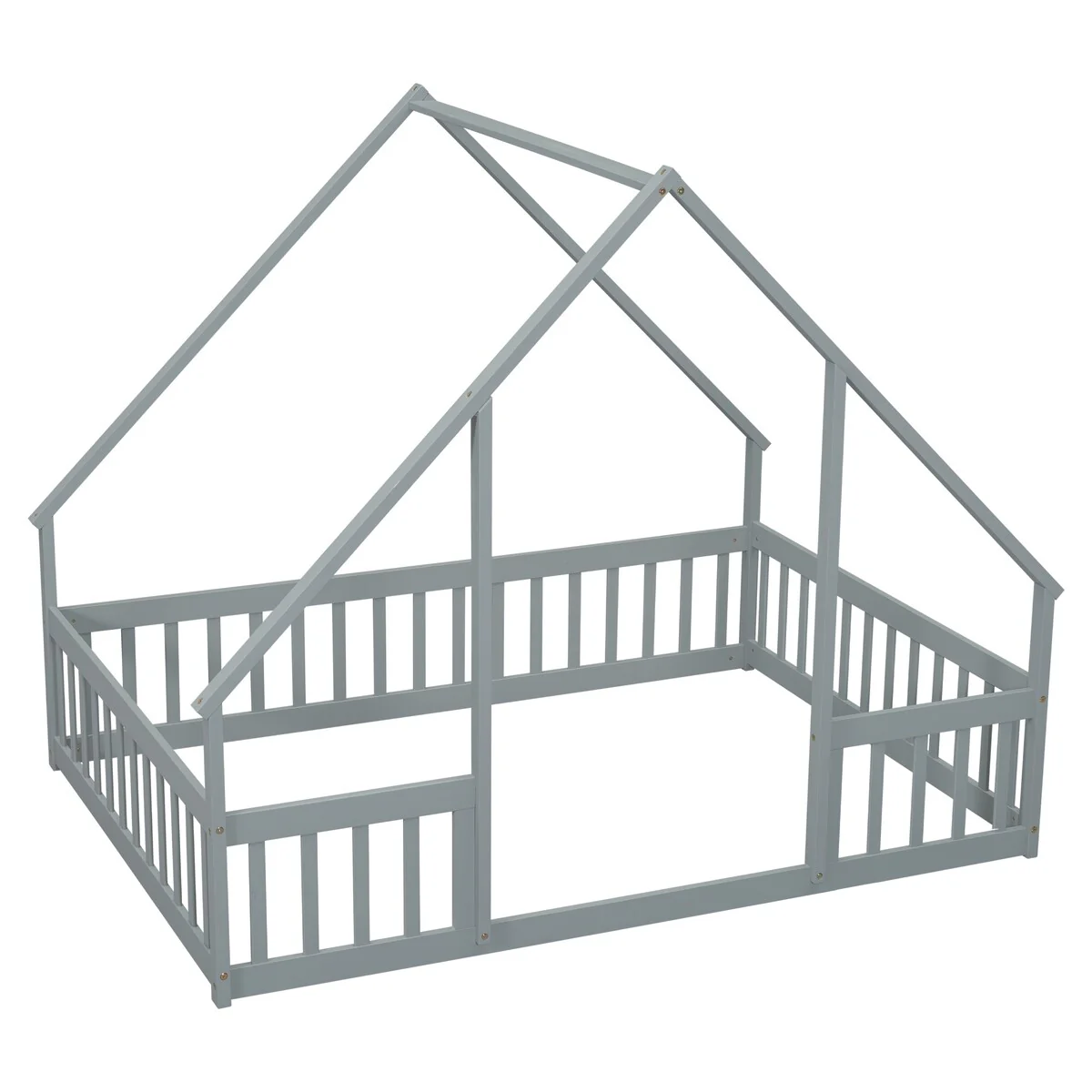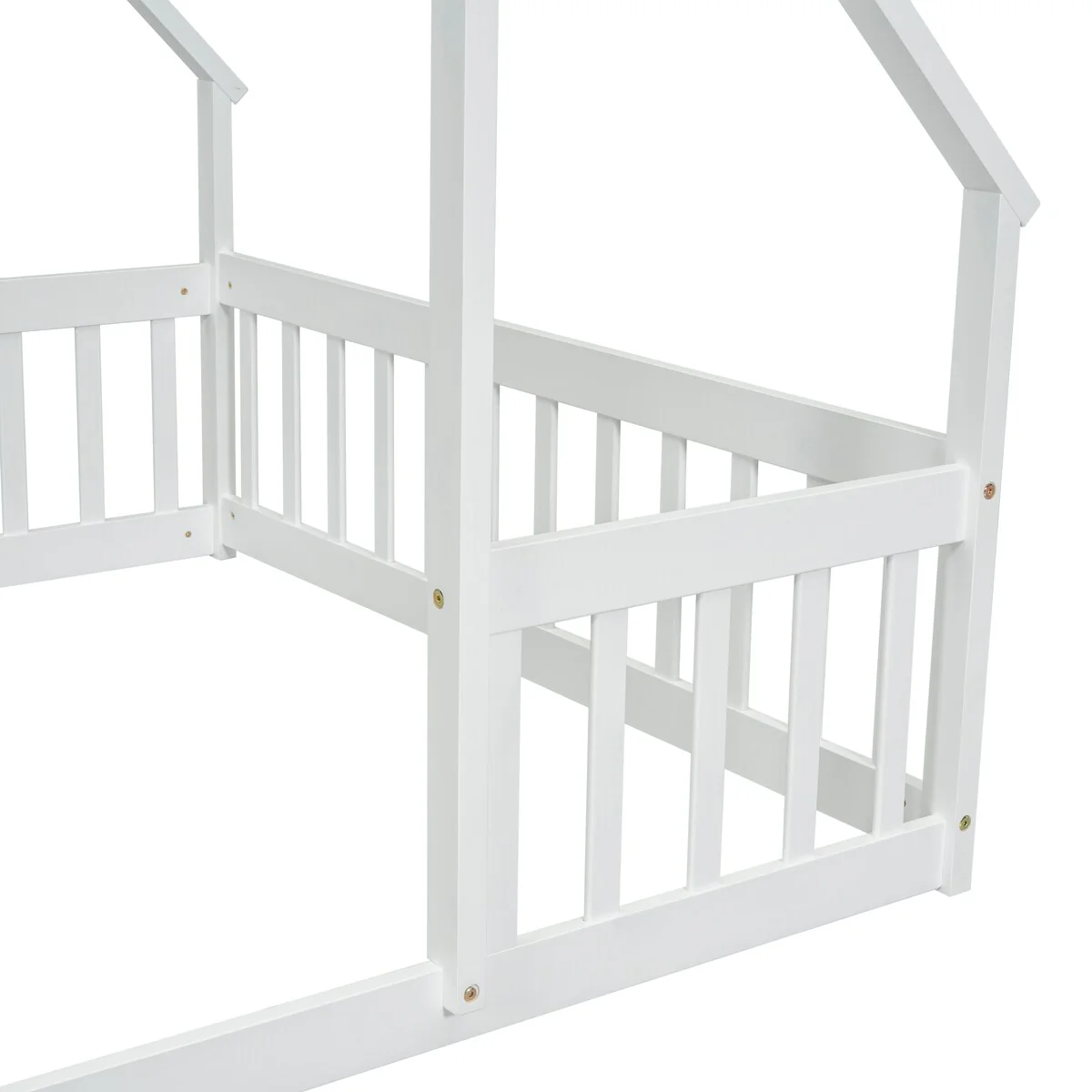 Full Wood House-Shaped Floor Bed with Fence