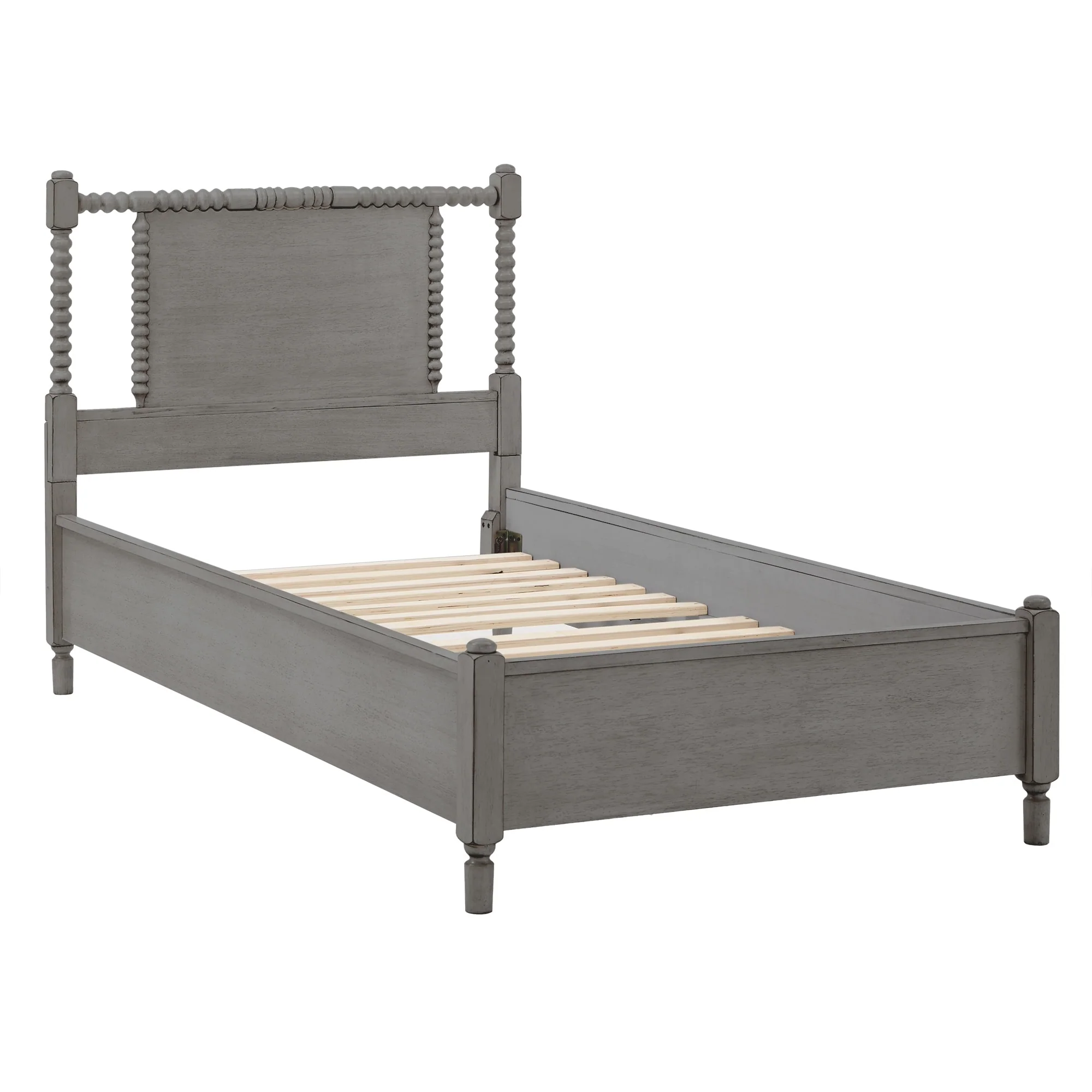 Demetria Antique Finish Beaded Wood Platform Twin Size Bed by iNSPIRE Q Classic