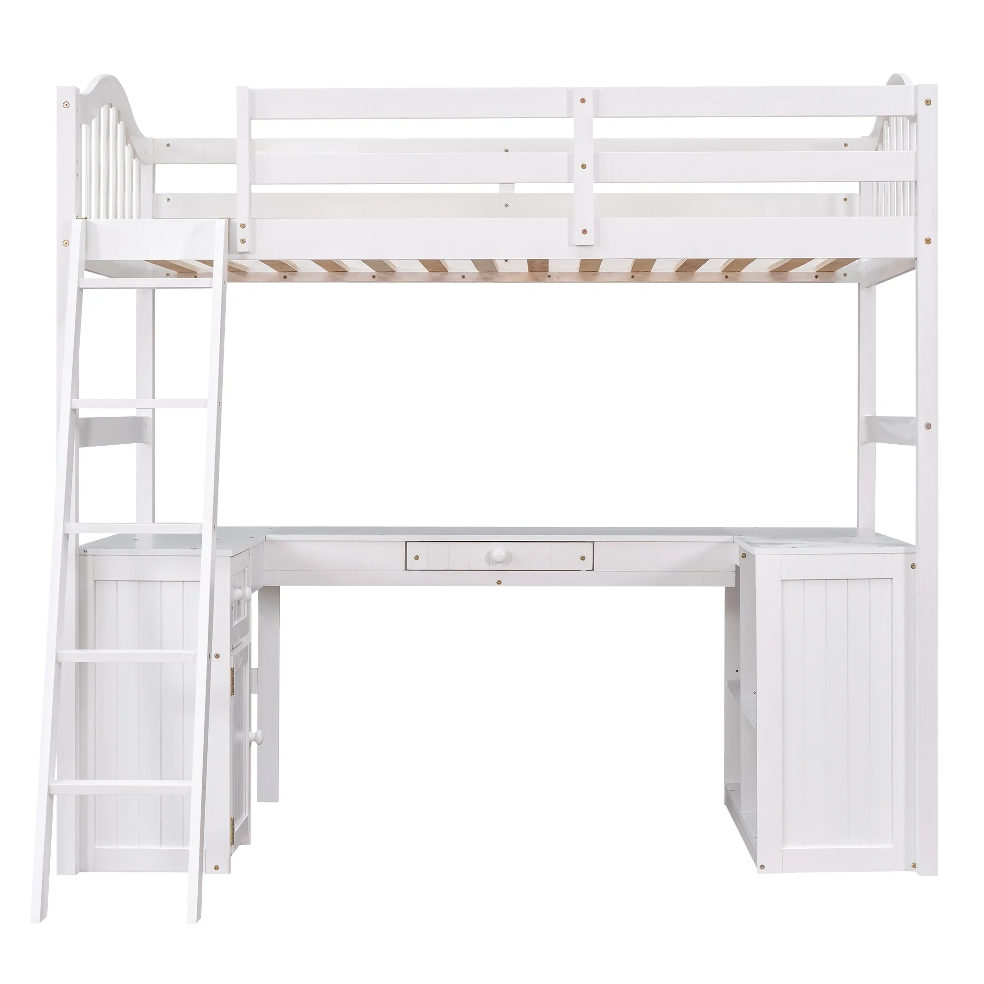 Twin Loft Bed with Desk, Storage Drawers, Shelves and Cabinet, Space-Saving Wood Bed Frame