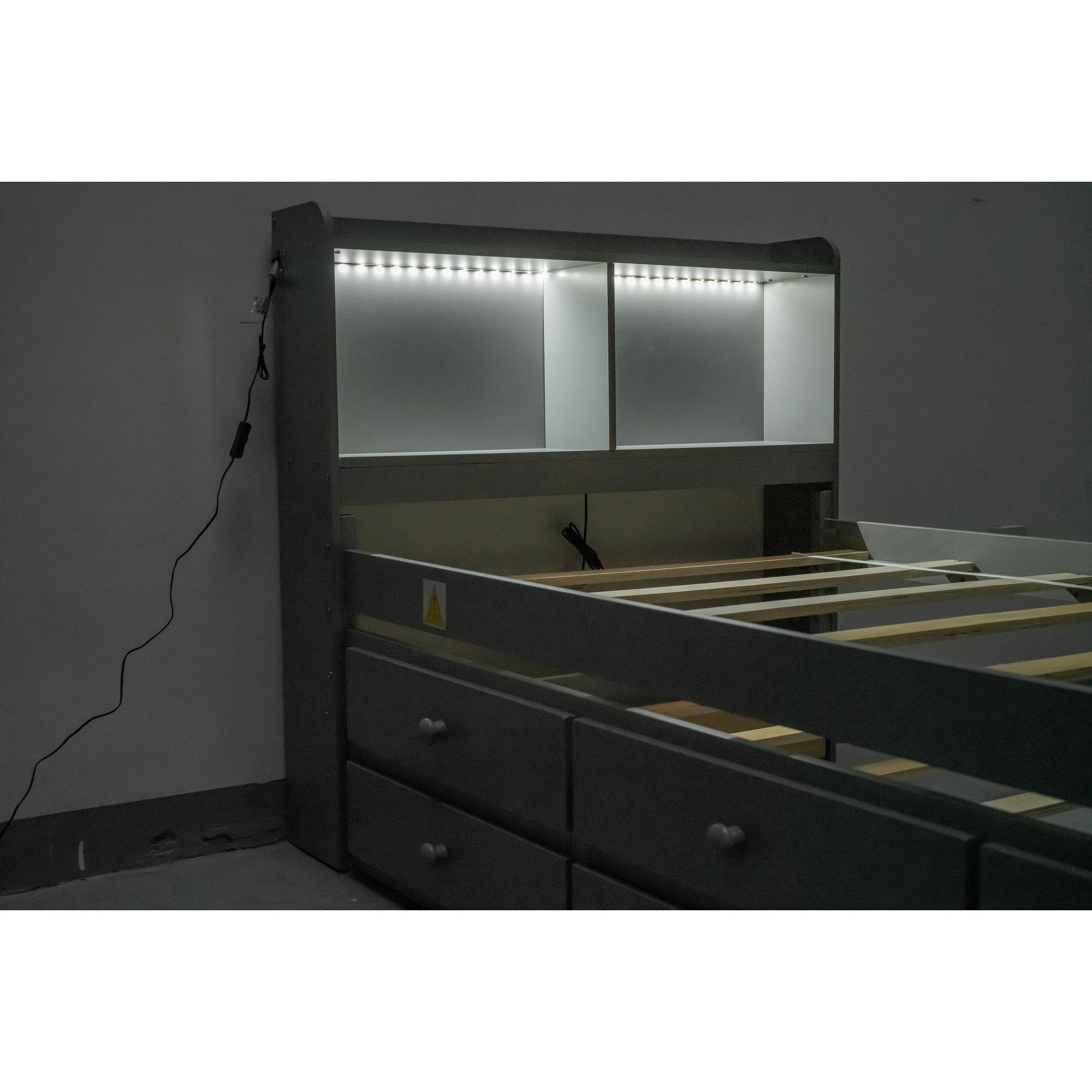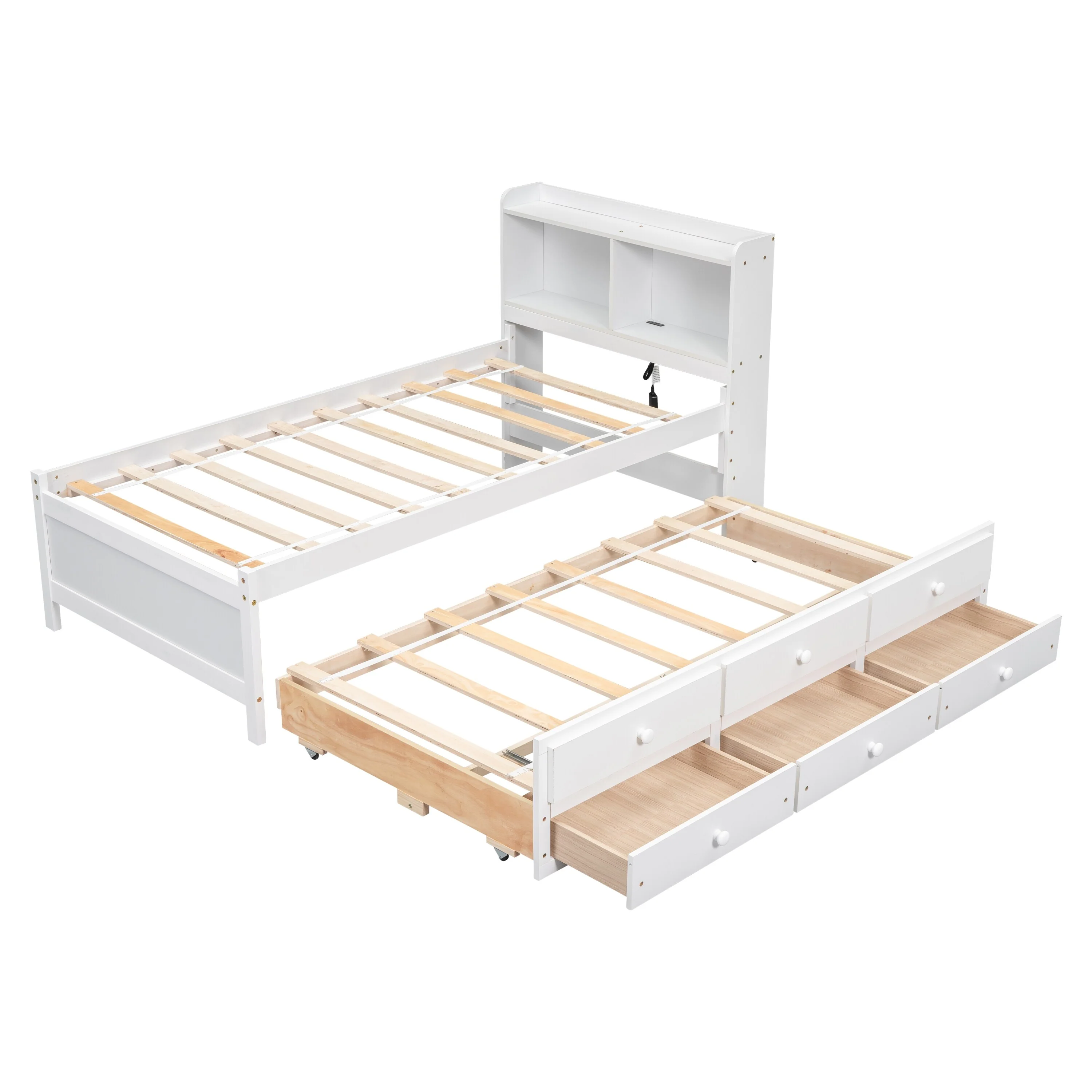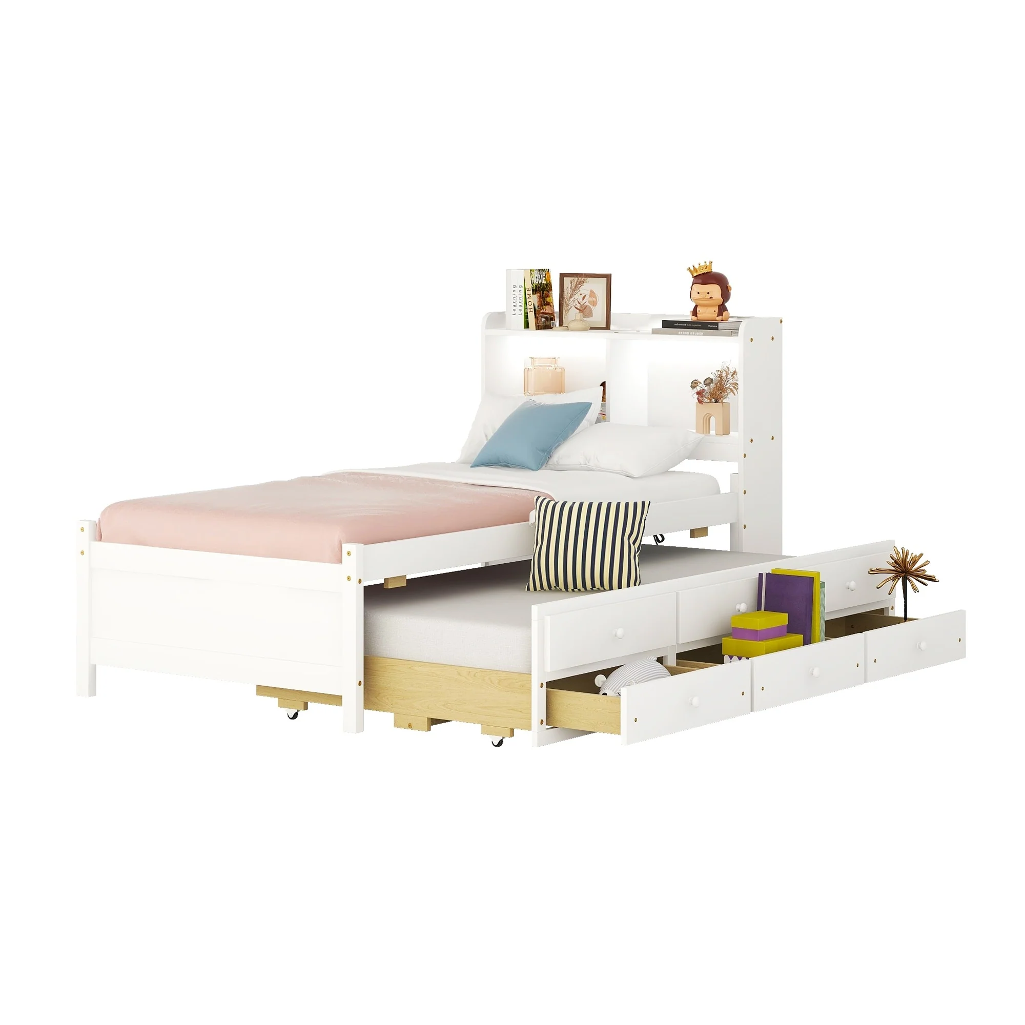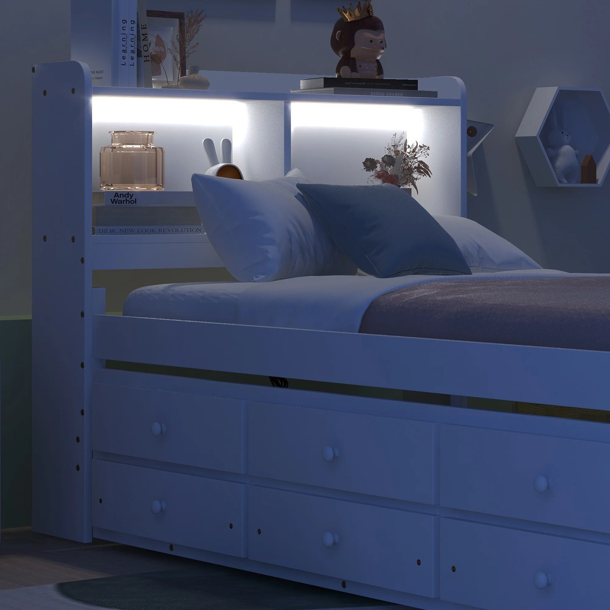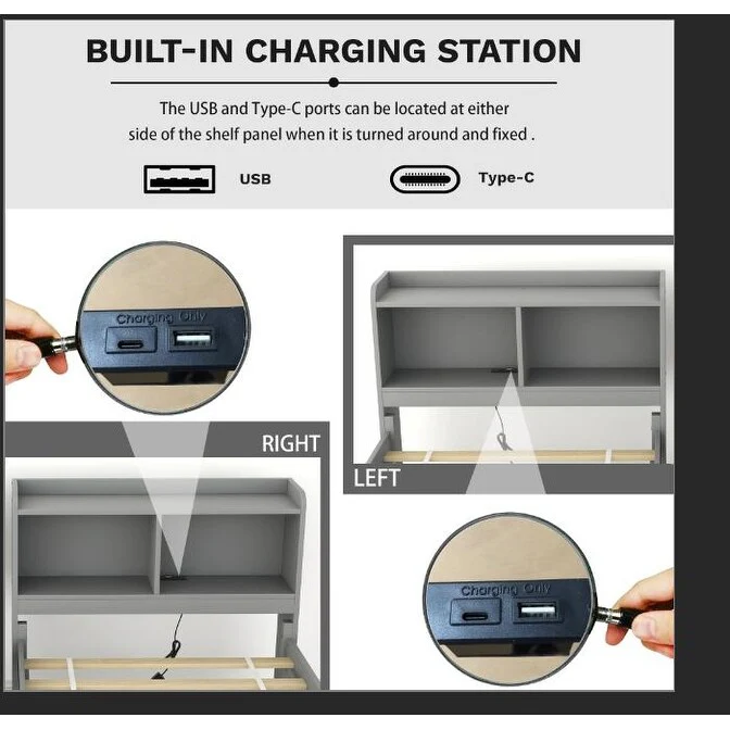 Twin Bed with USB, Type-C Ports, LED Lights, Trundle, and Storage Drawers