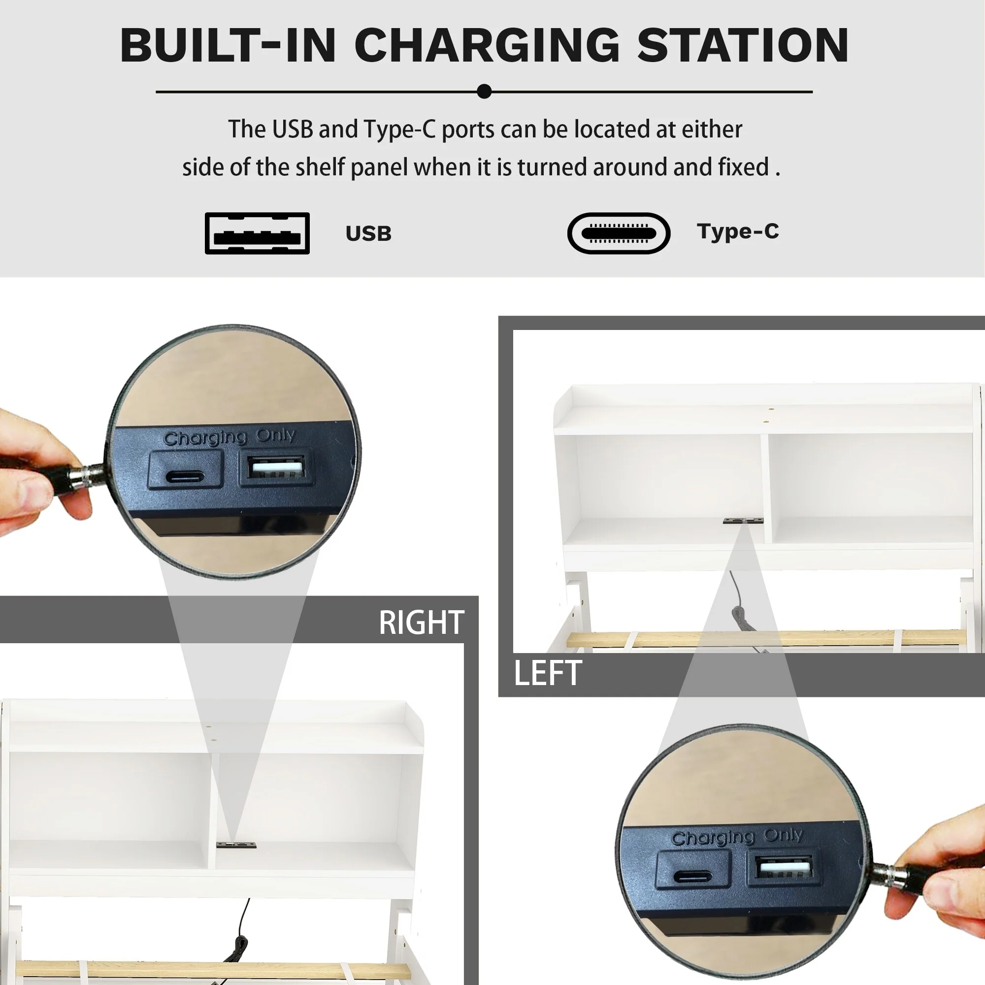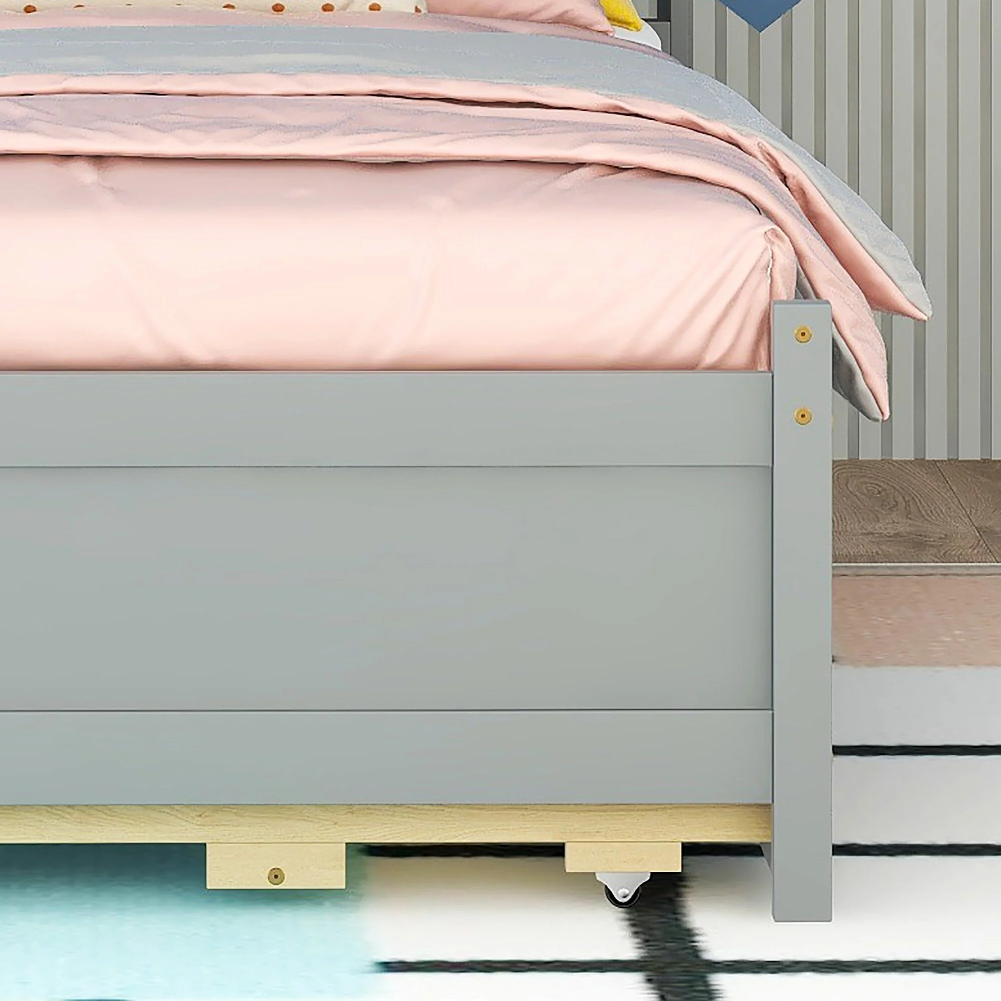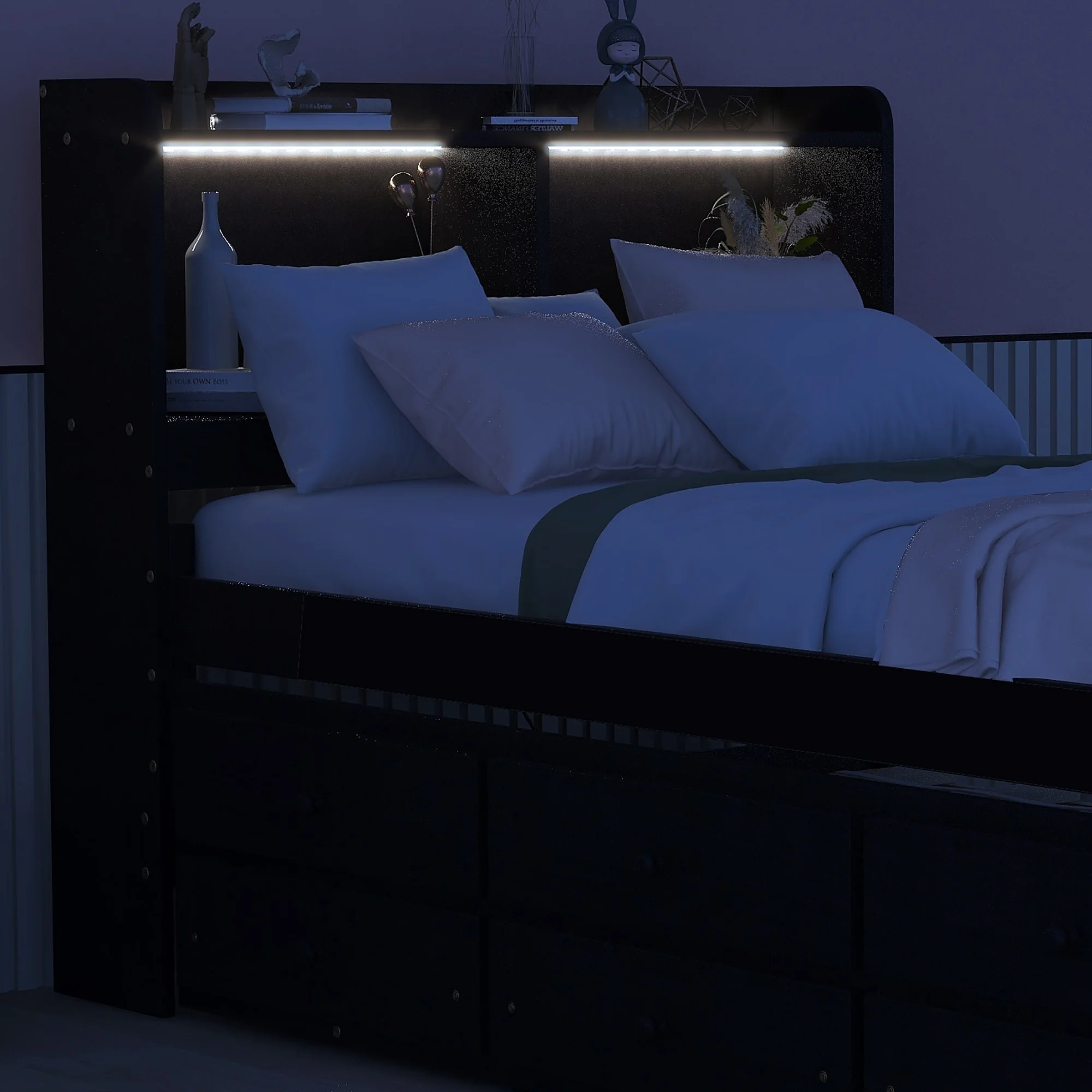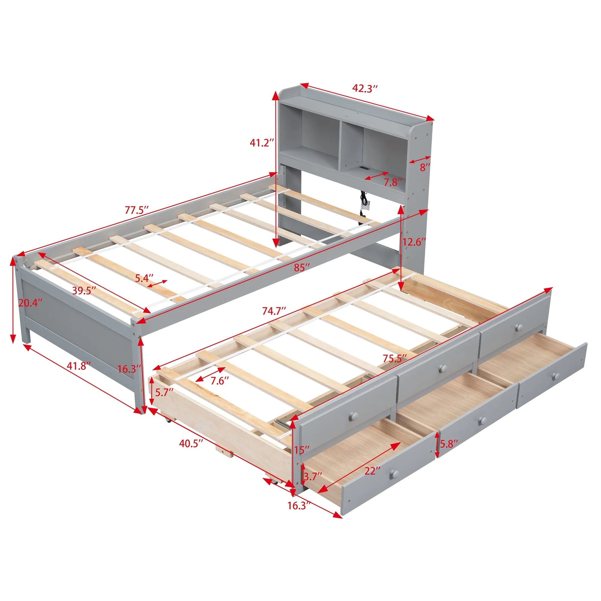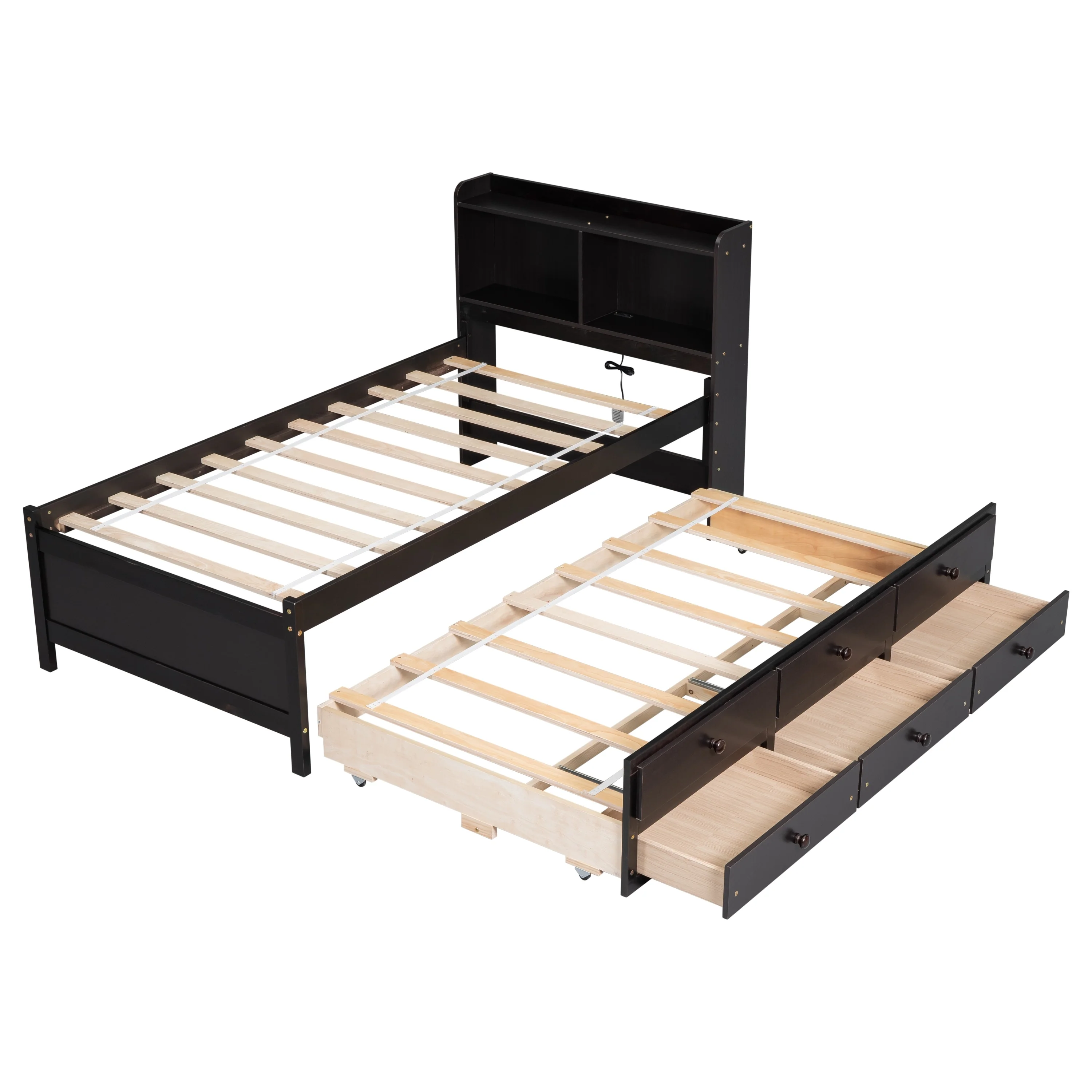 Twin Bed with USB, Type-C Ports, LED Lights, Trundle, and Storage Drawers