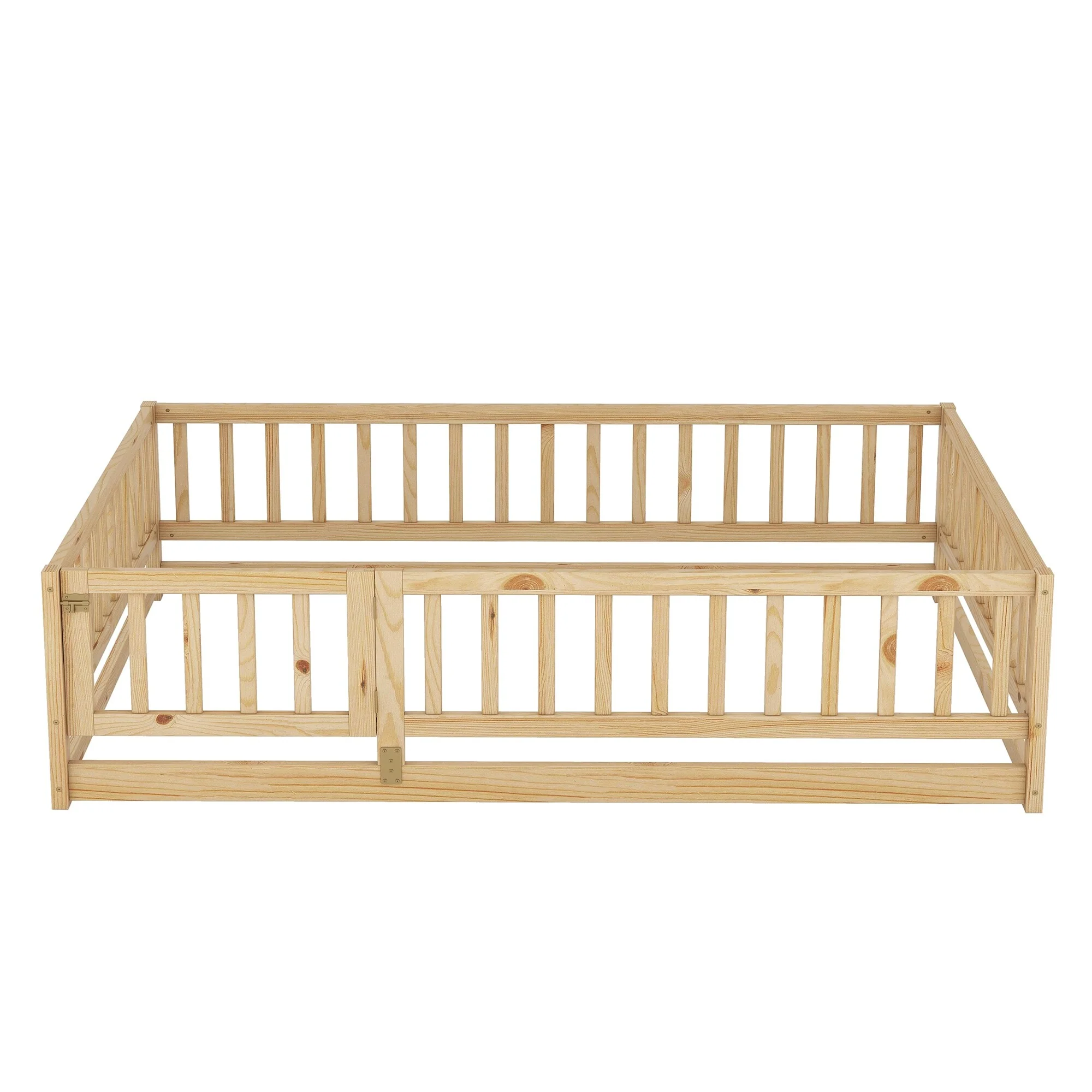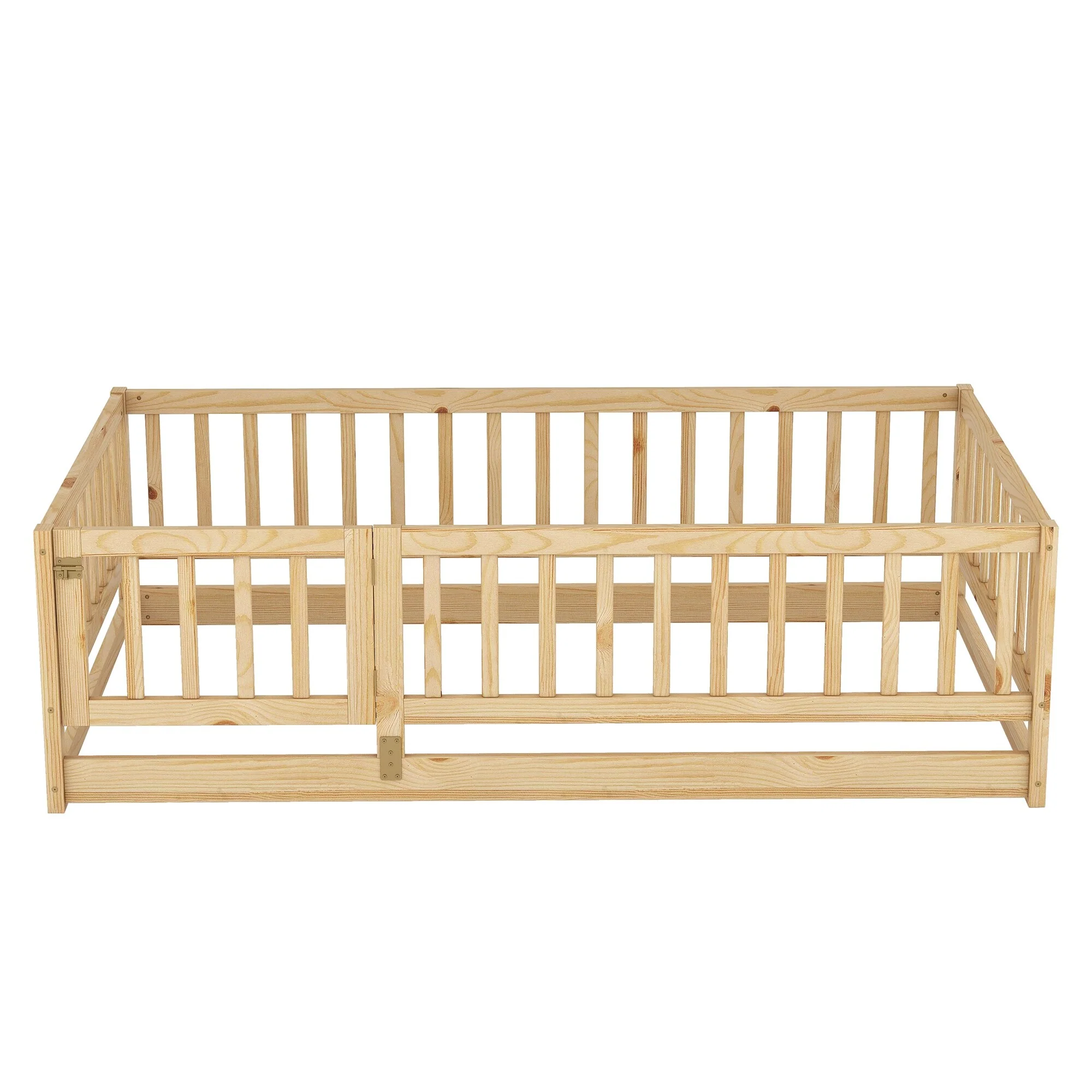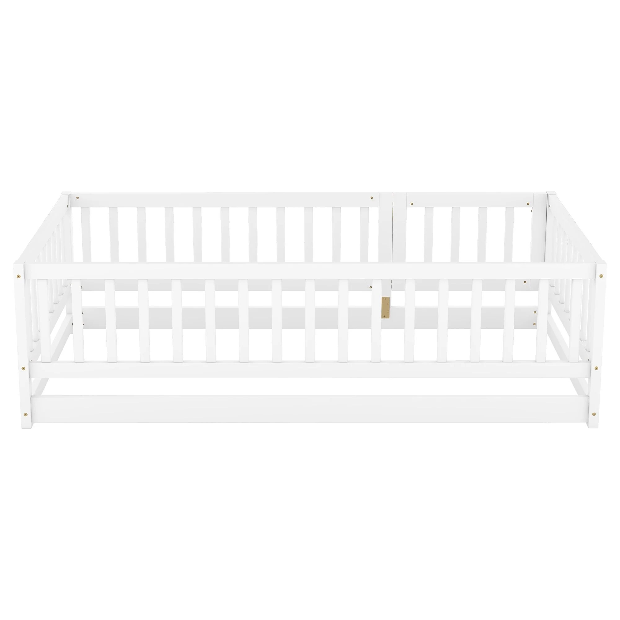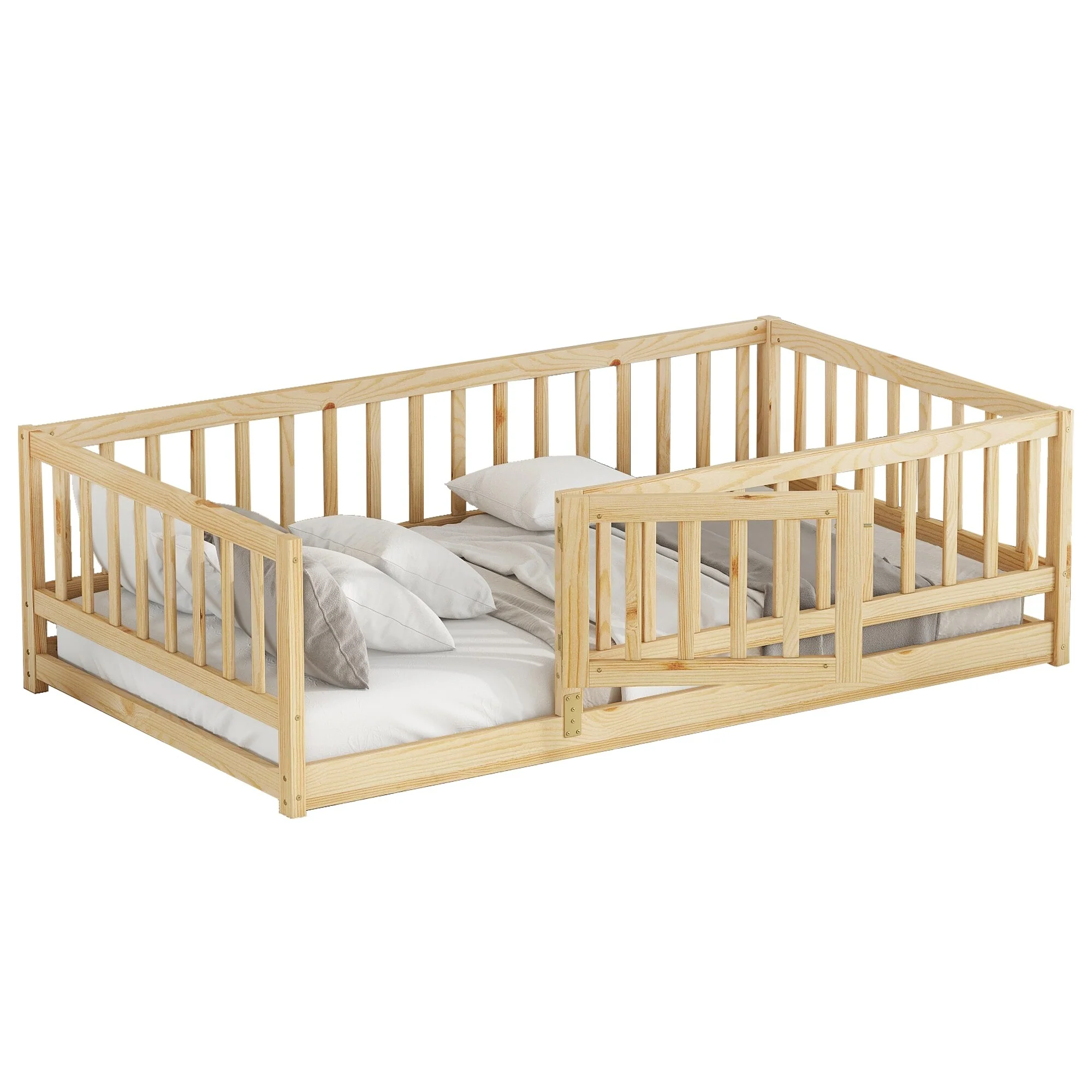 Montessori Floor Bed with Fence Guardrail and Removable Door Toddler Floor Wood Bed Frame for Kids Boys Girls Children's Room