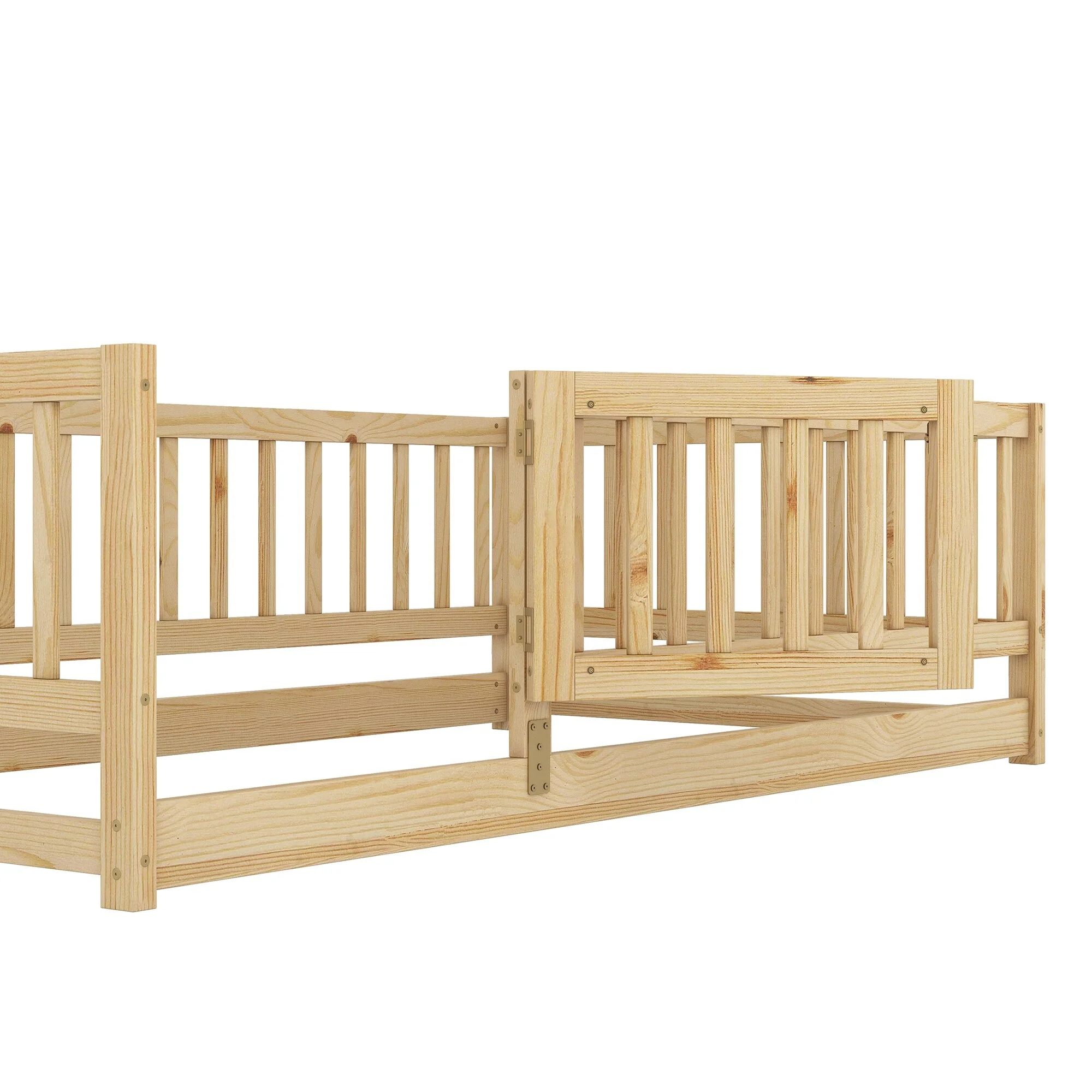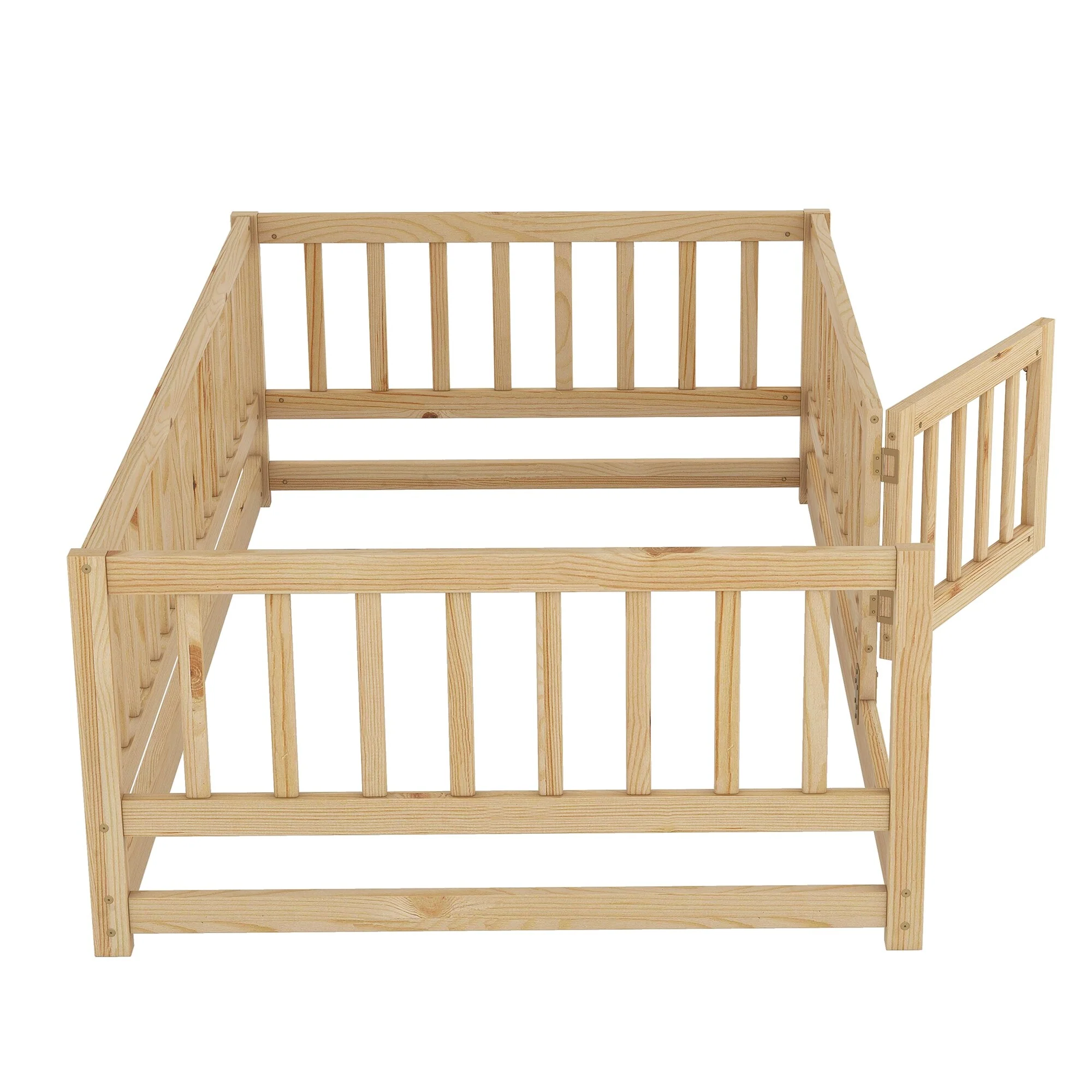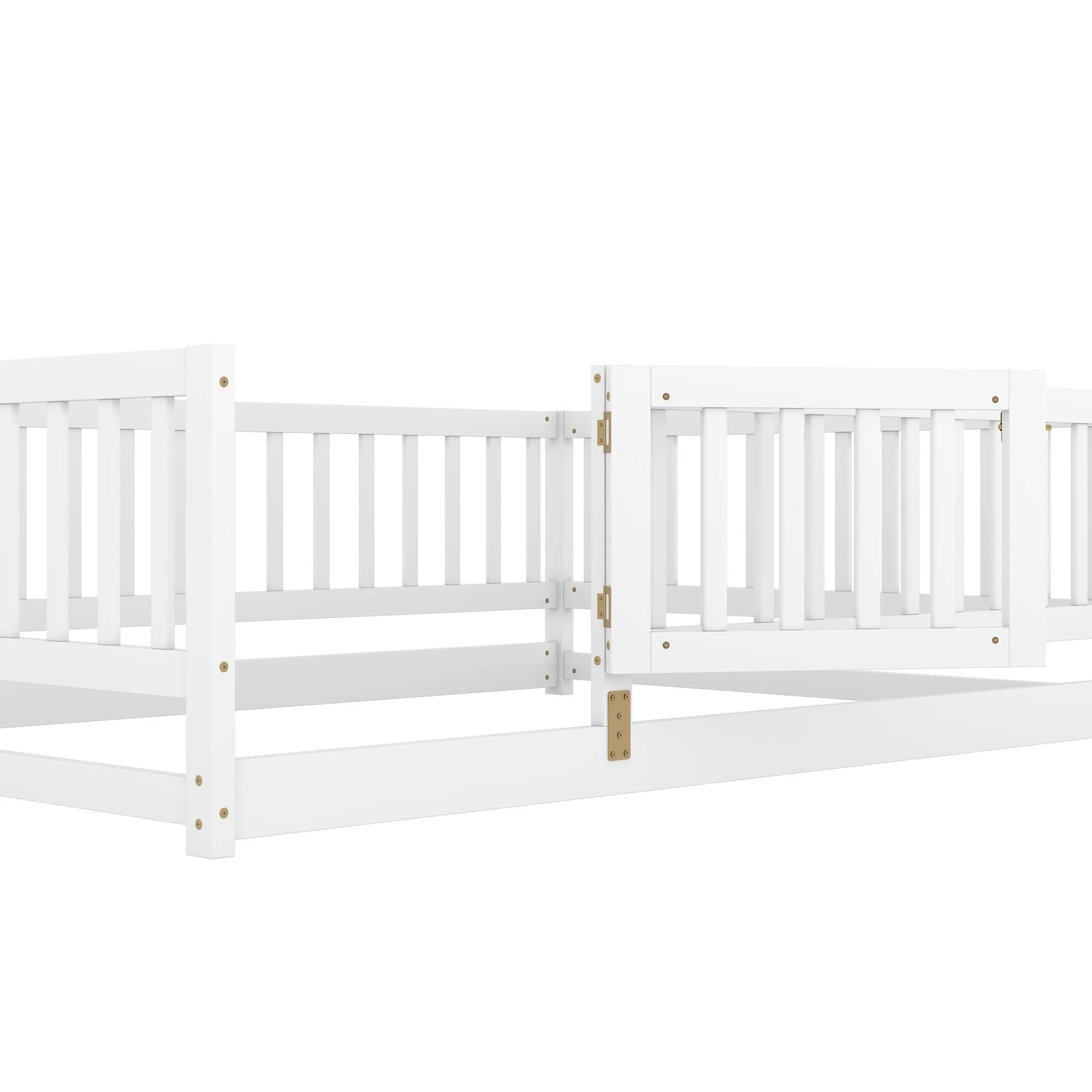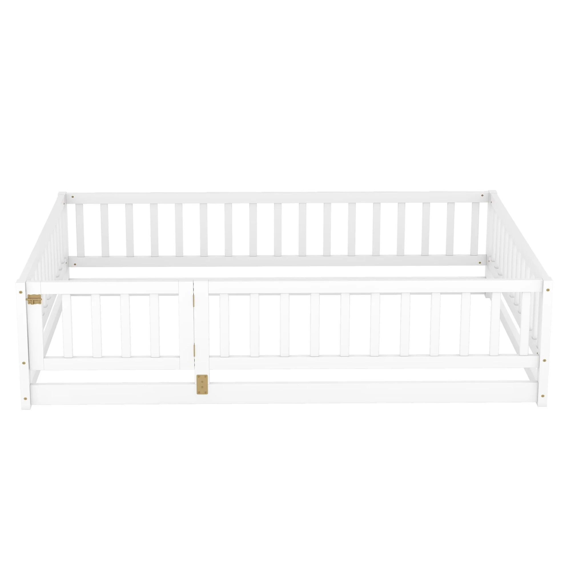 Montessori Floor Bed with Fence Guardrail and Removable Door Toddler Floor Wood Bed Frame for Kids Boys Girls Children's Room