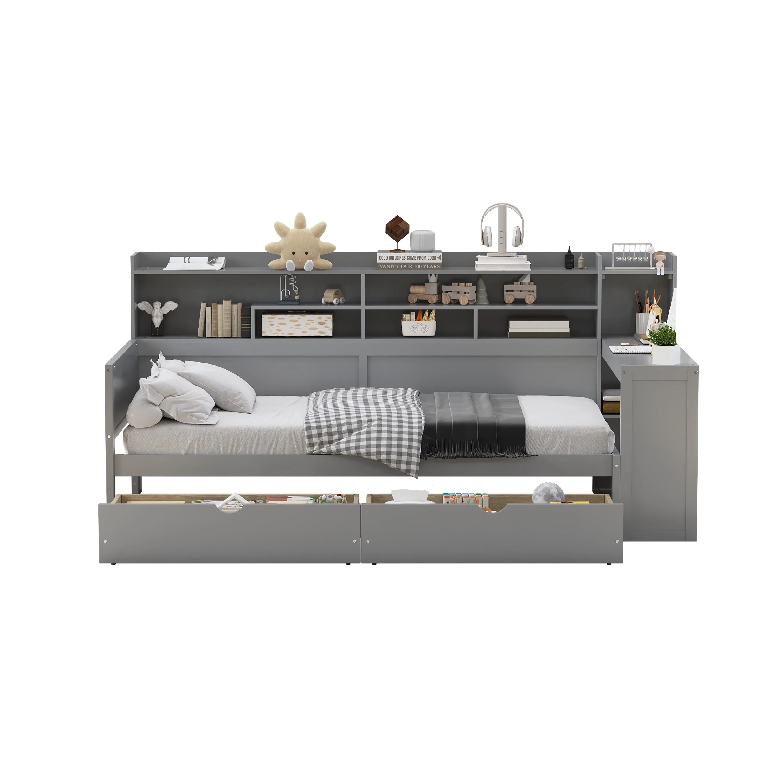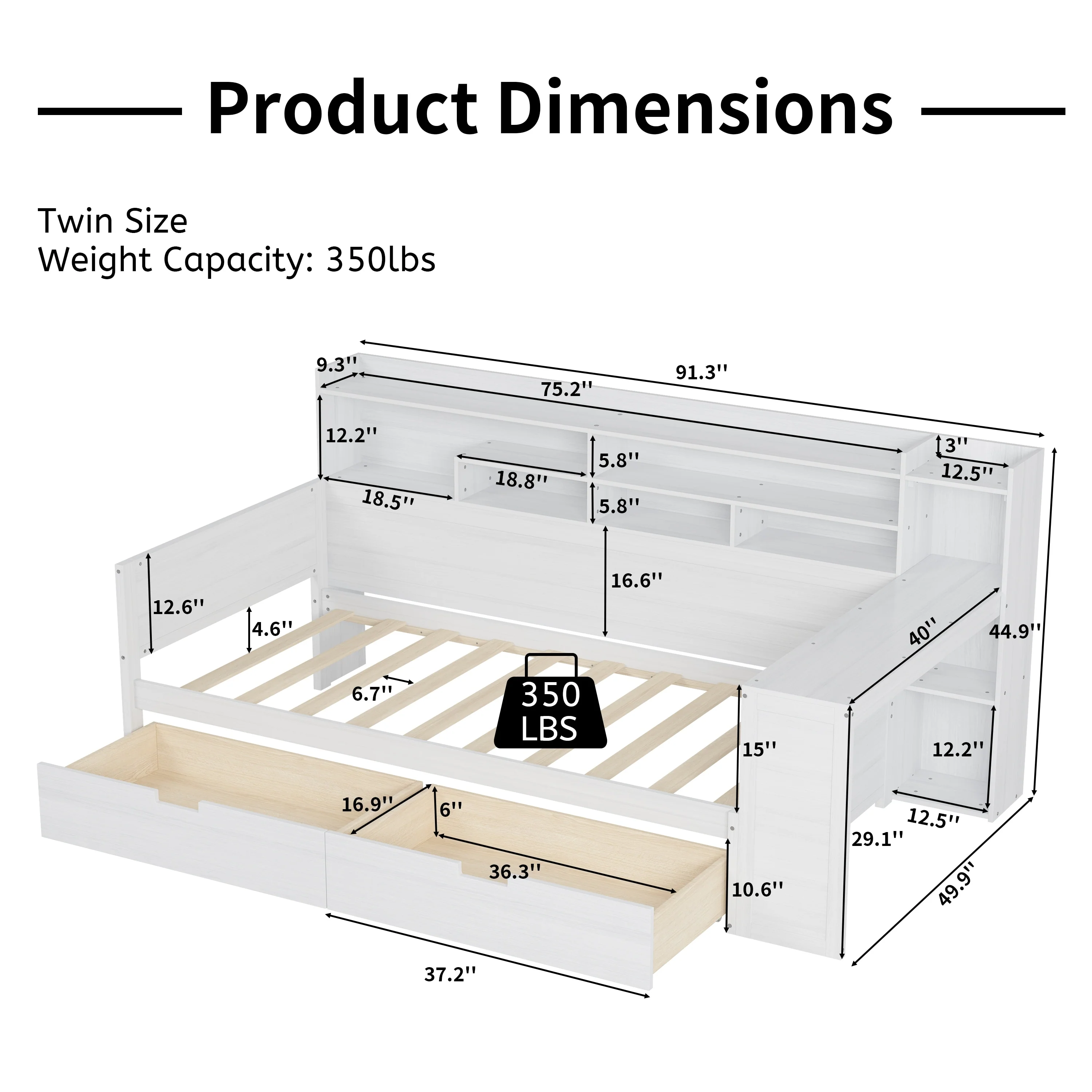 Twin Size Daybed All in One Daybed with Shelves Desk Drawers
