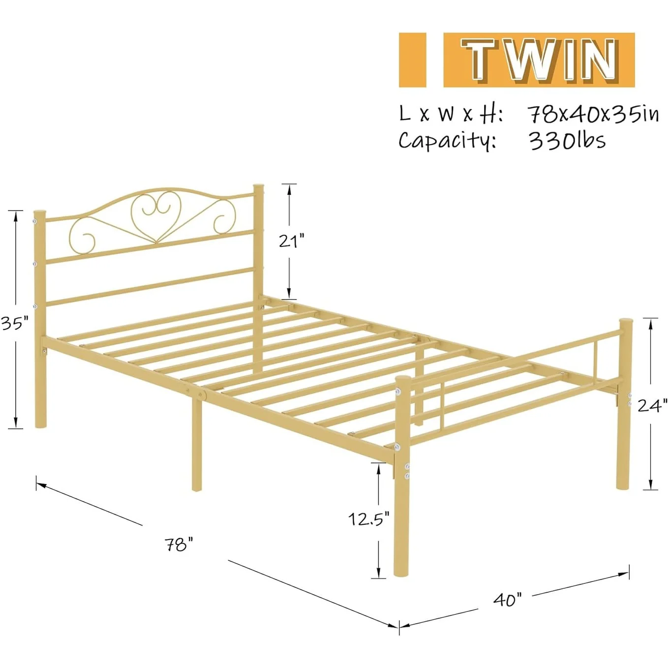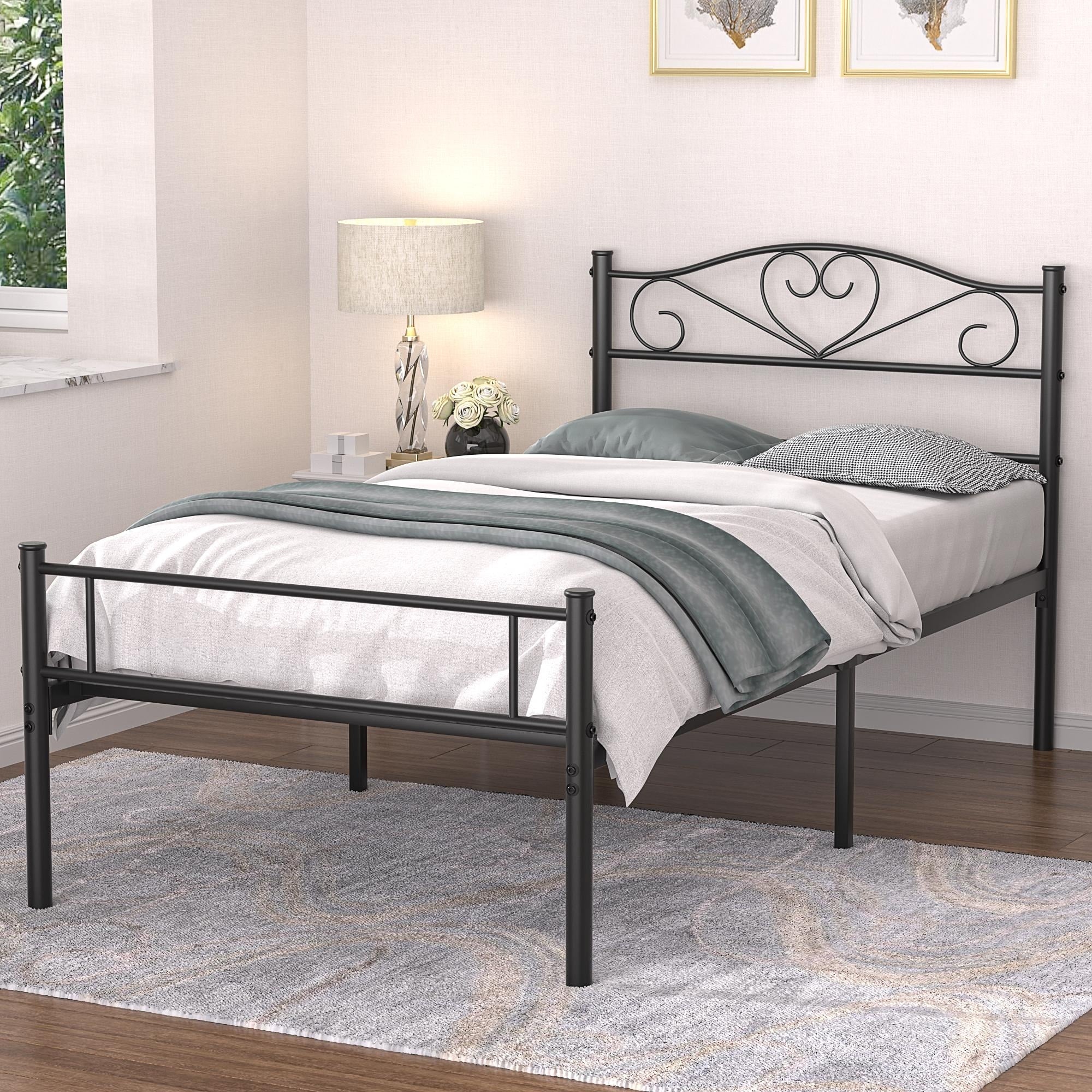 Black Metal Twin XL No Box-Springs Needed Platform Bed Frame Perfect for Any Room