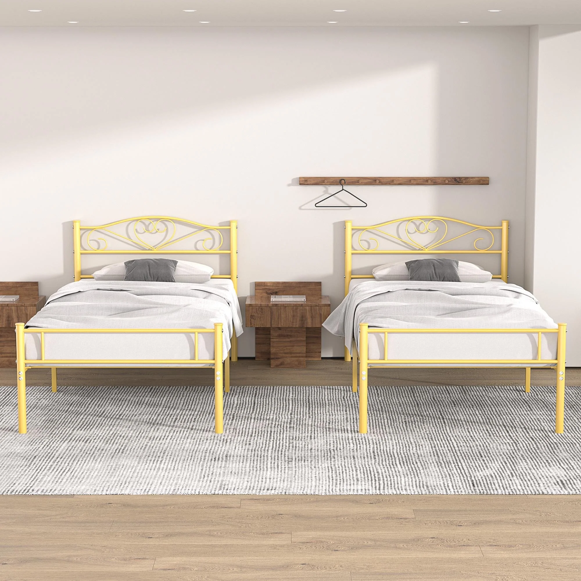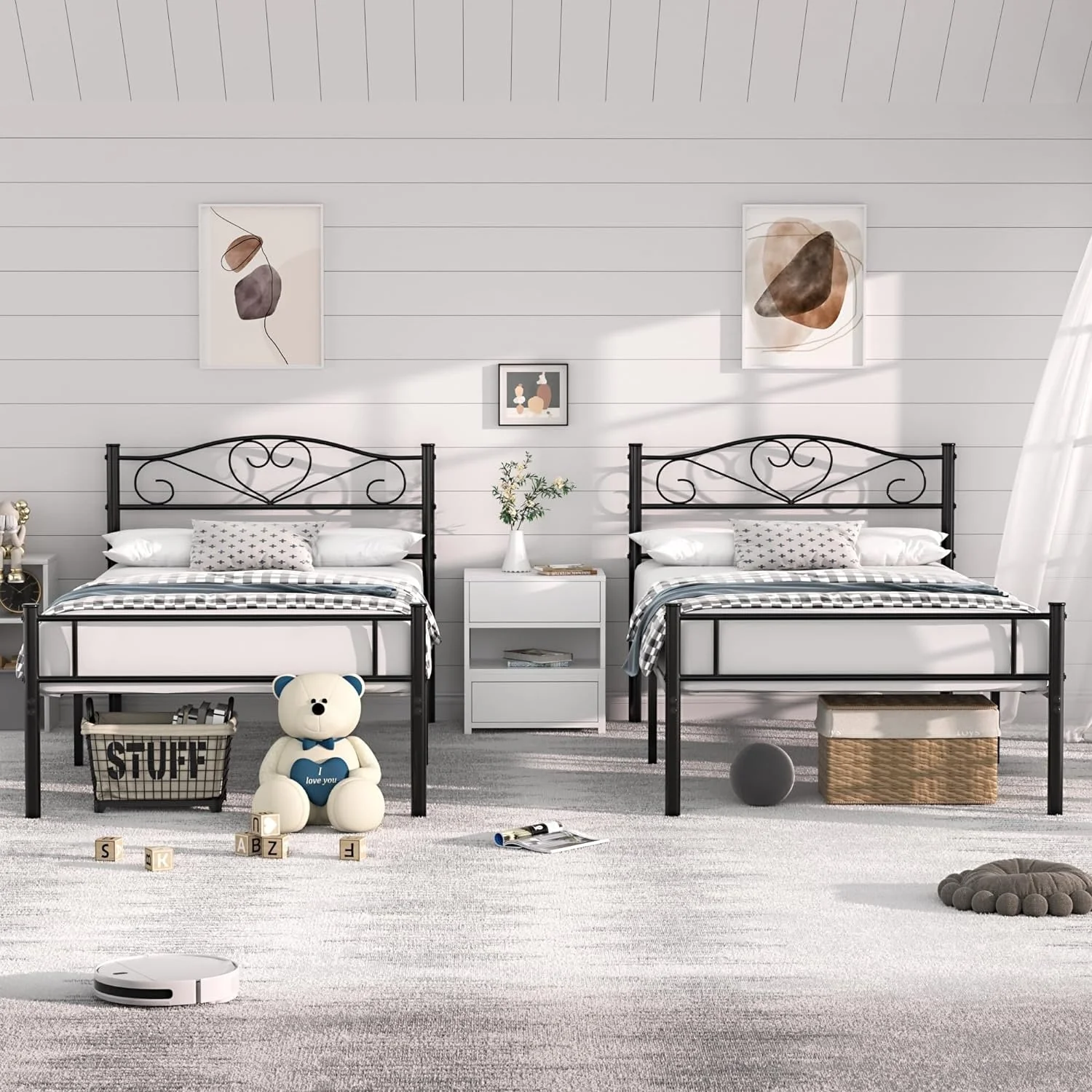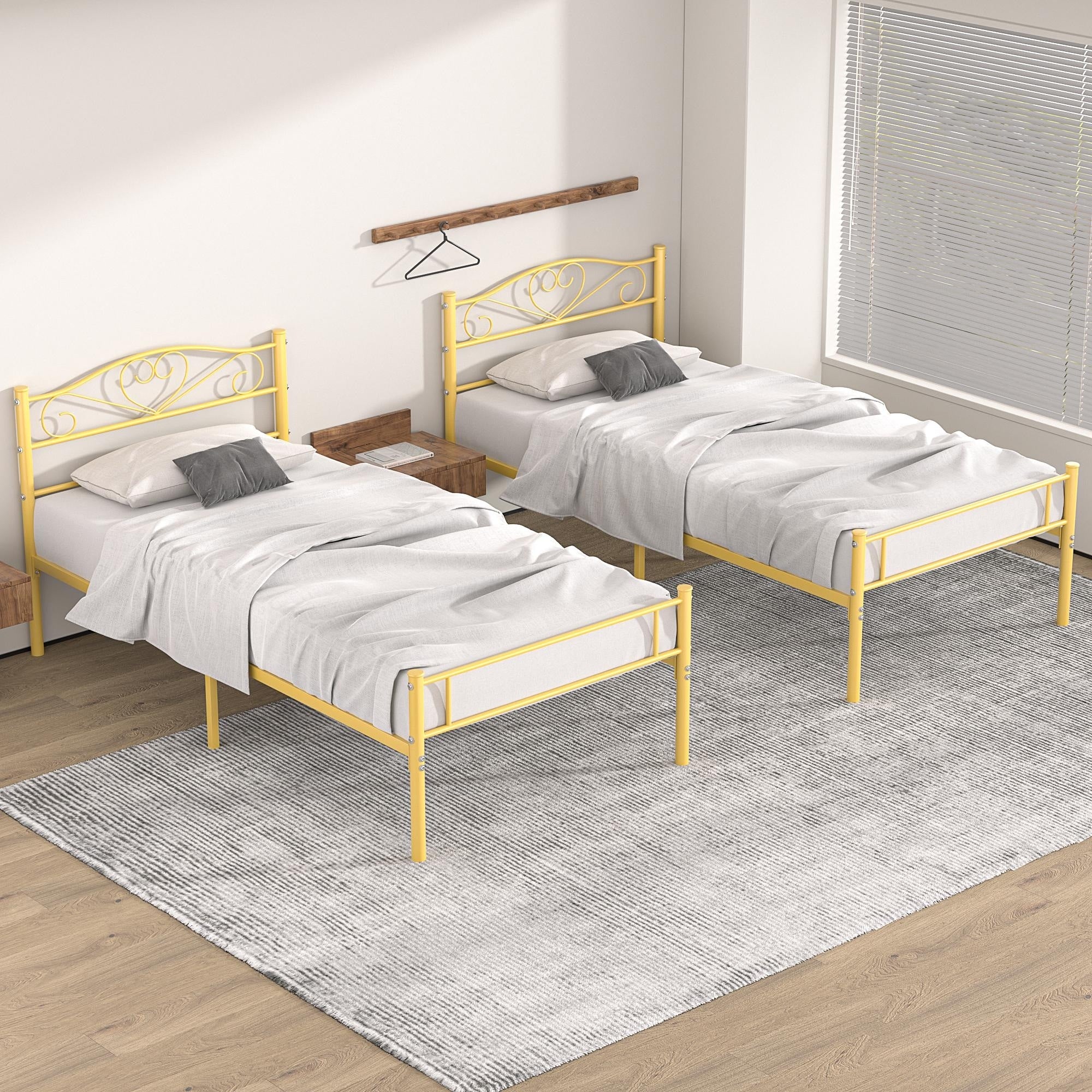 VECELO Modern Twin Size Bed Frames Metal Kids Bed Frame Without Box Spring, Twin Bed Set of 2