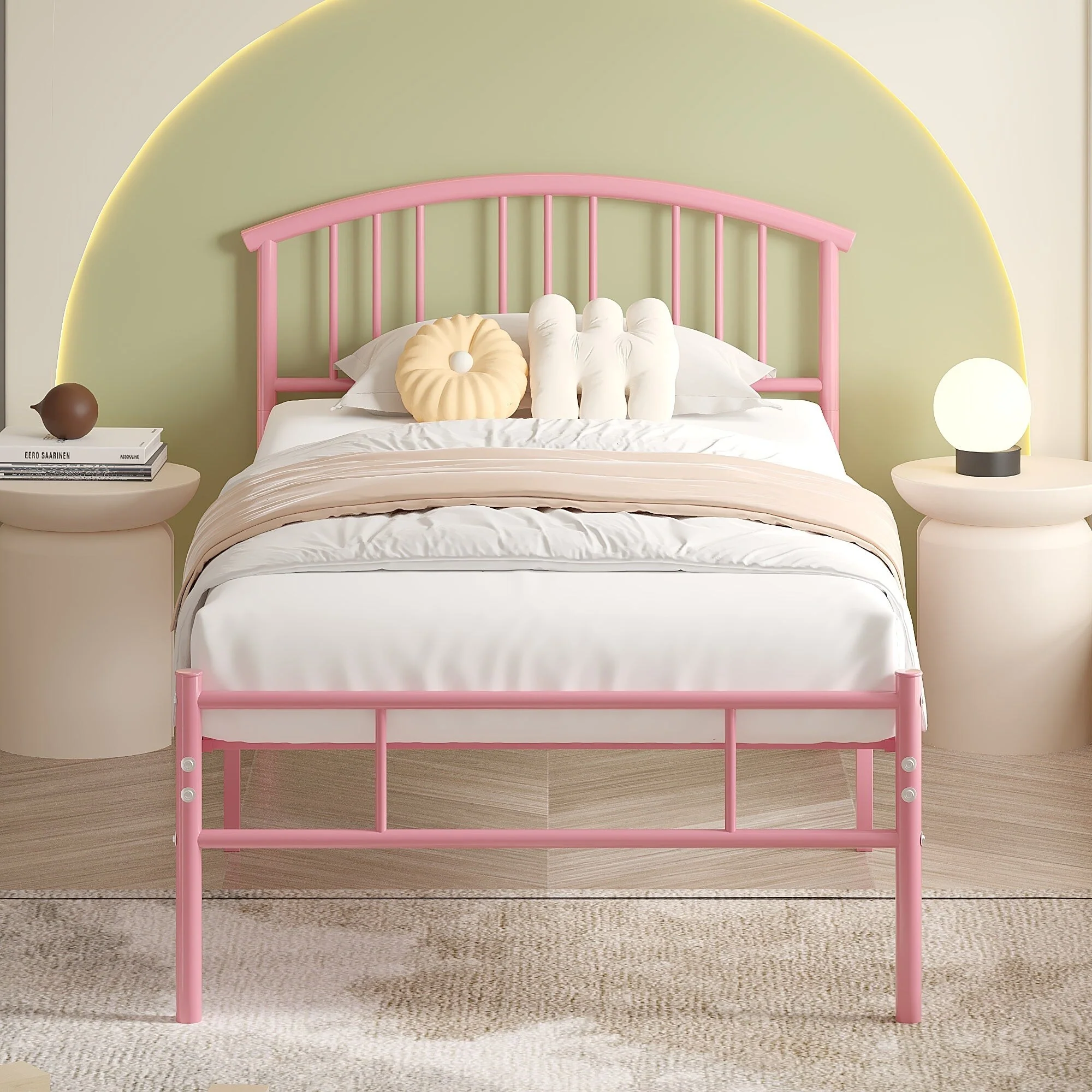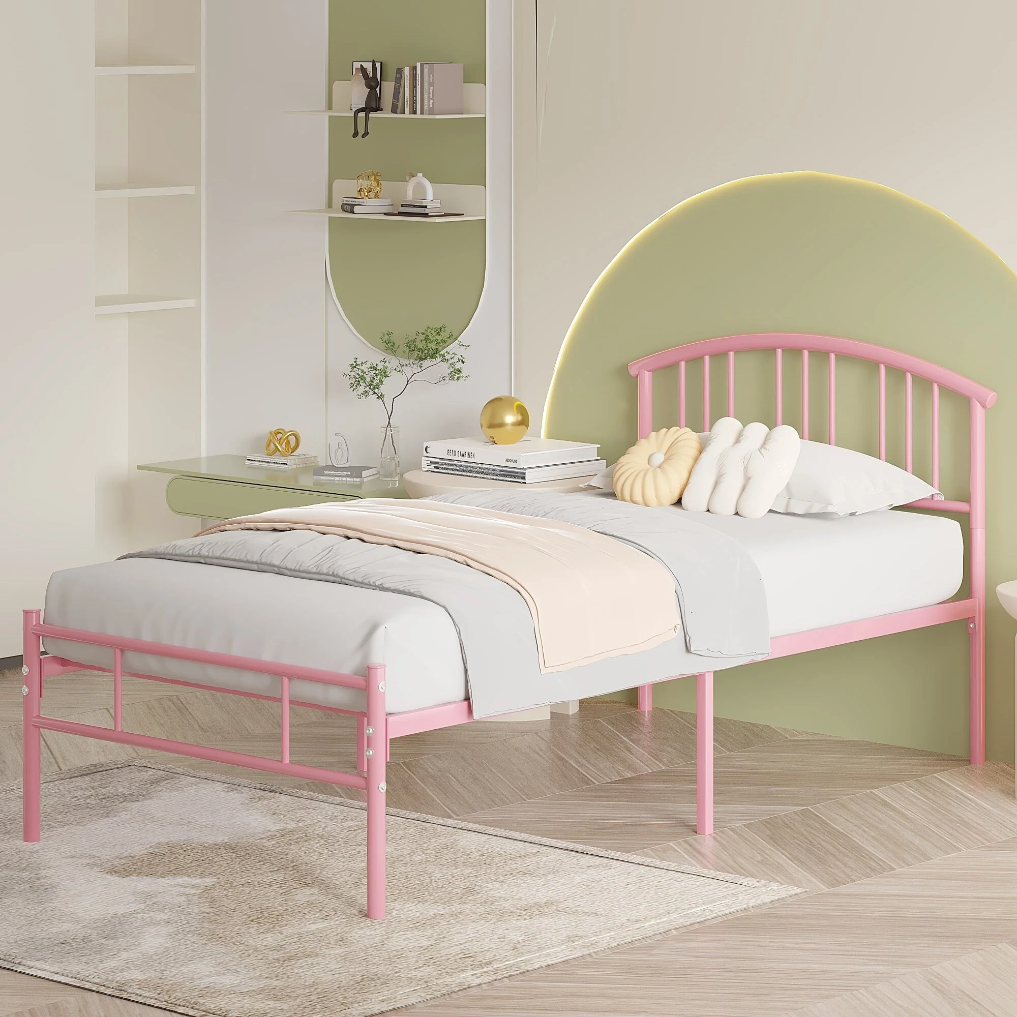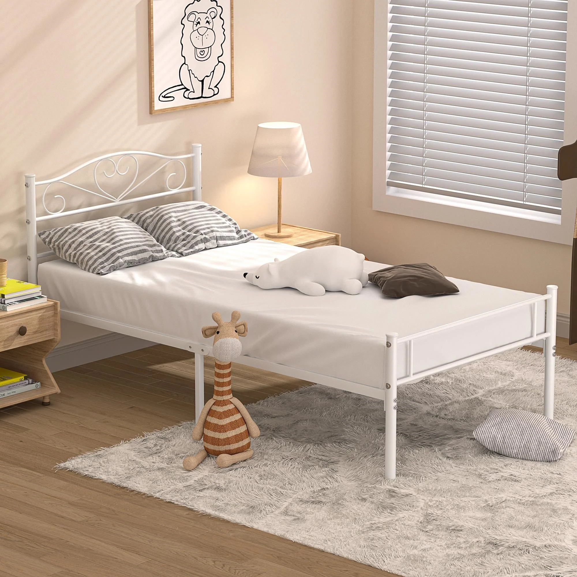VECELO Modern Twin Size Bed Frames Metal Kids Bed Frame Without Box Spring, Twin Bed Set of 2