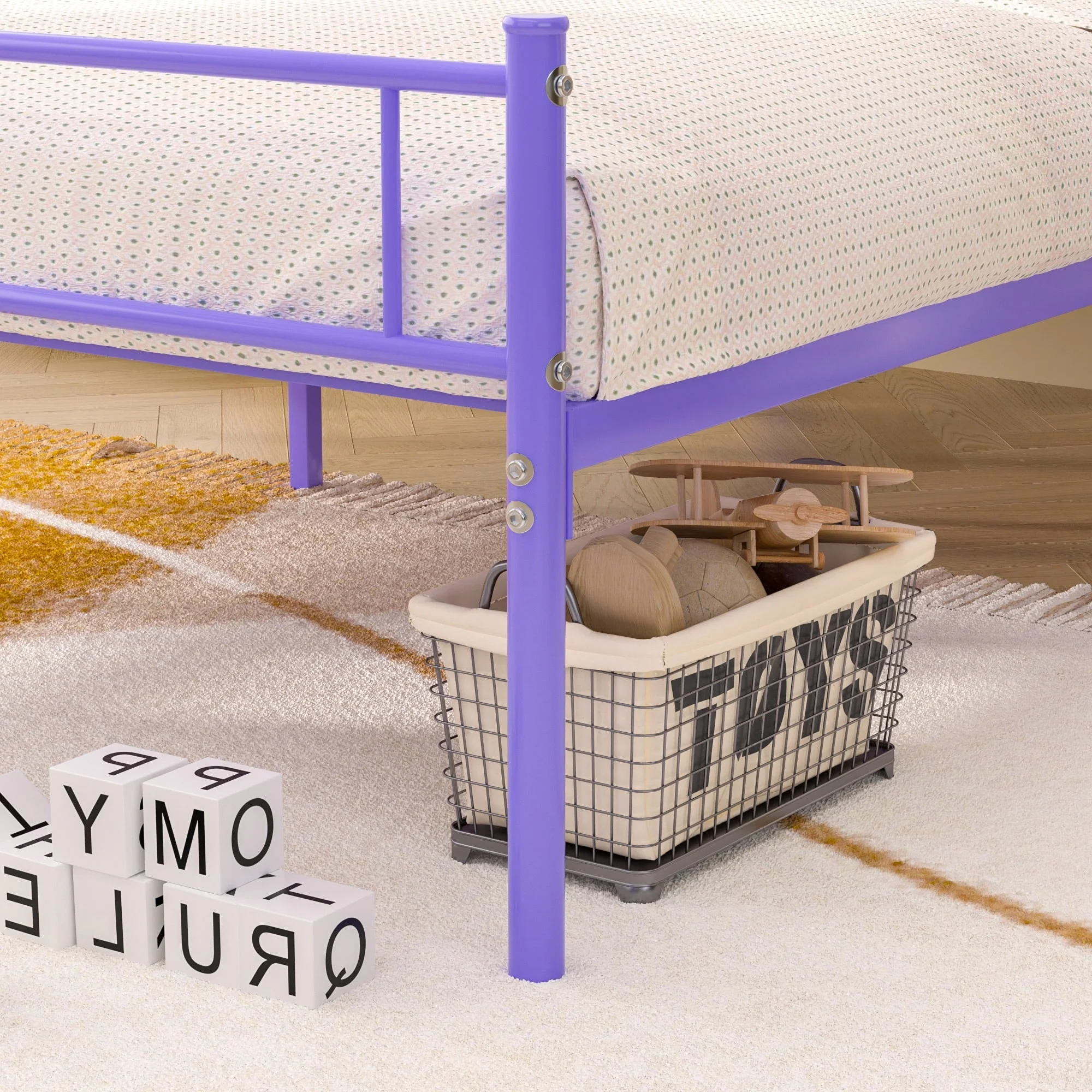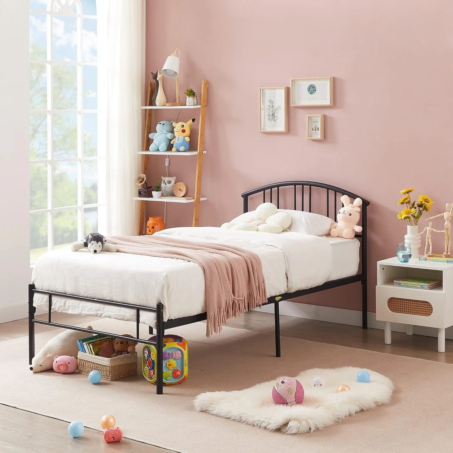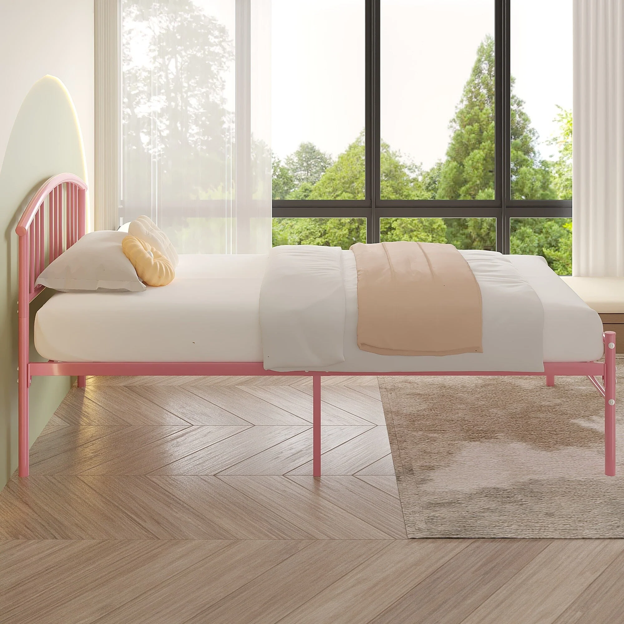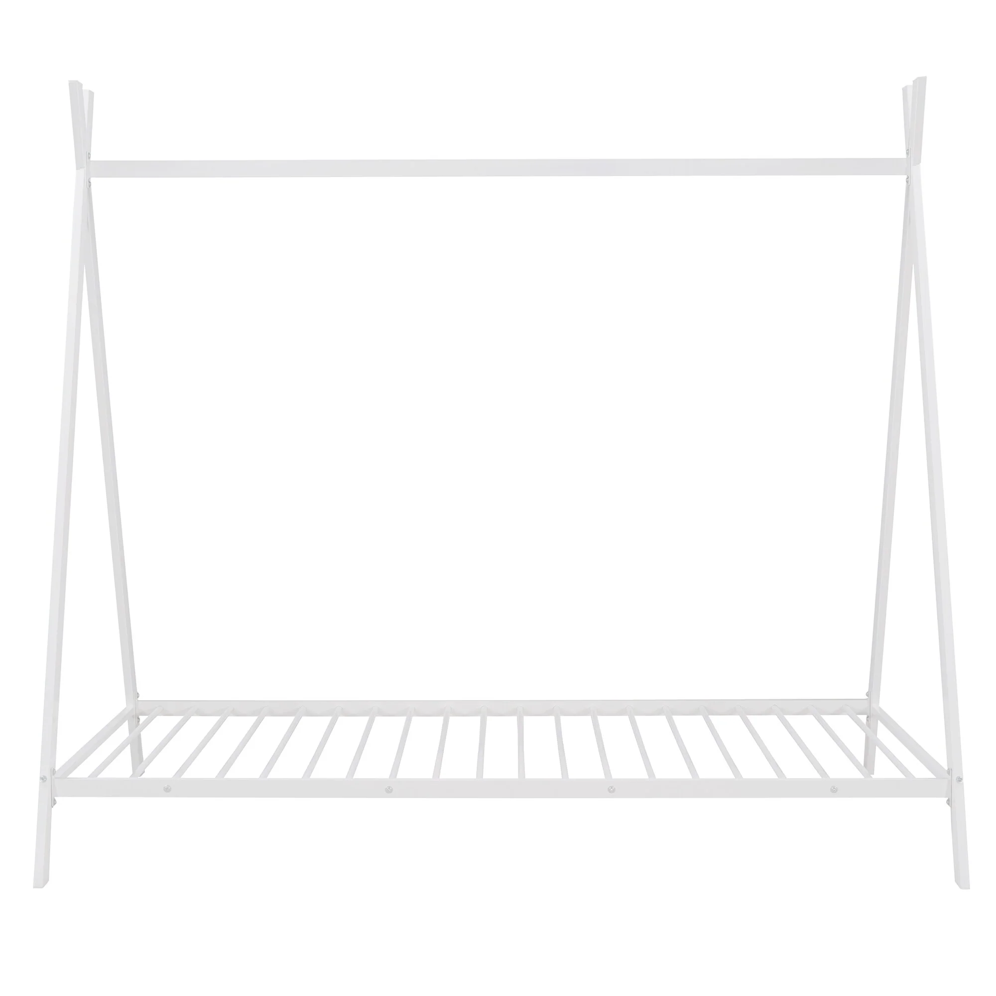 Metal House Bed Tent Bed Frame Twin Size Play Floor Bed with Slat