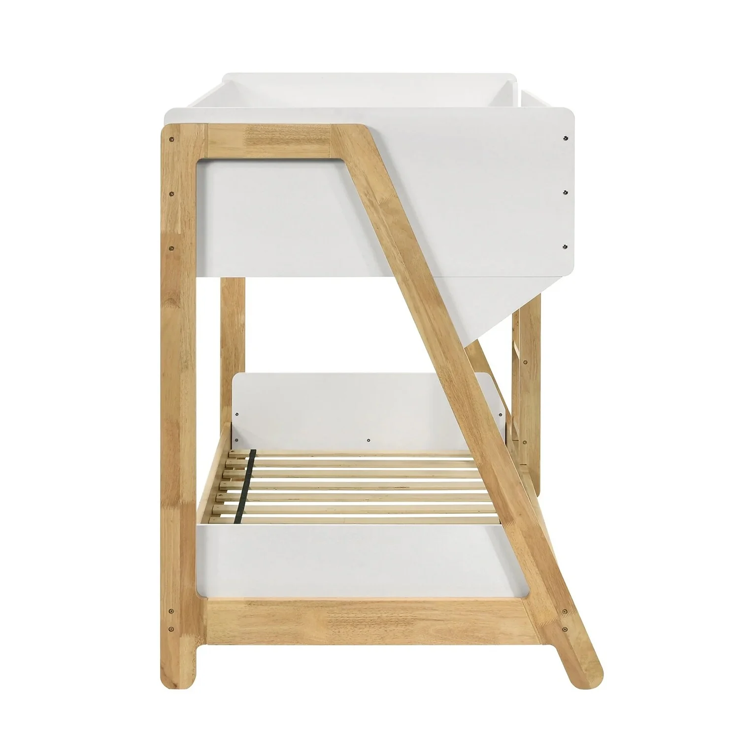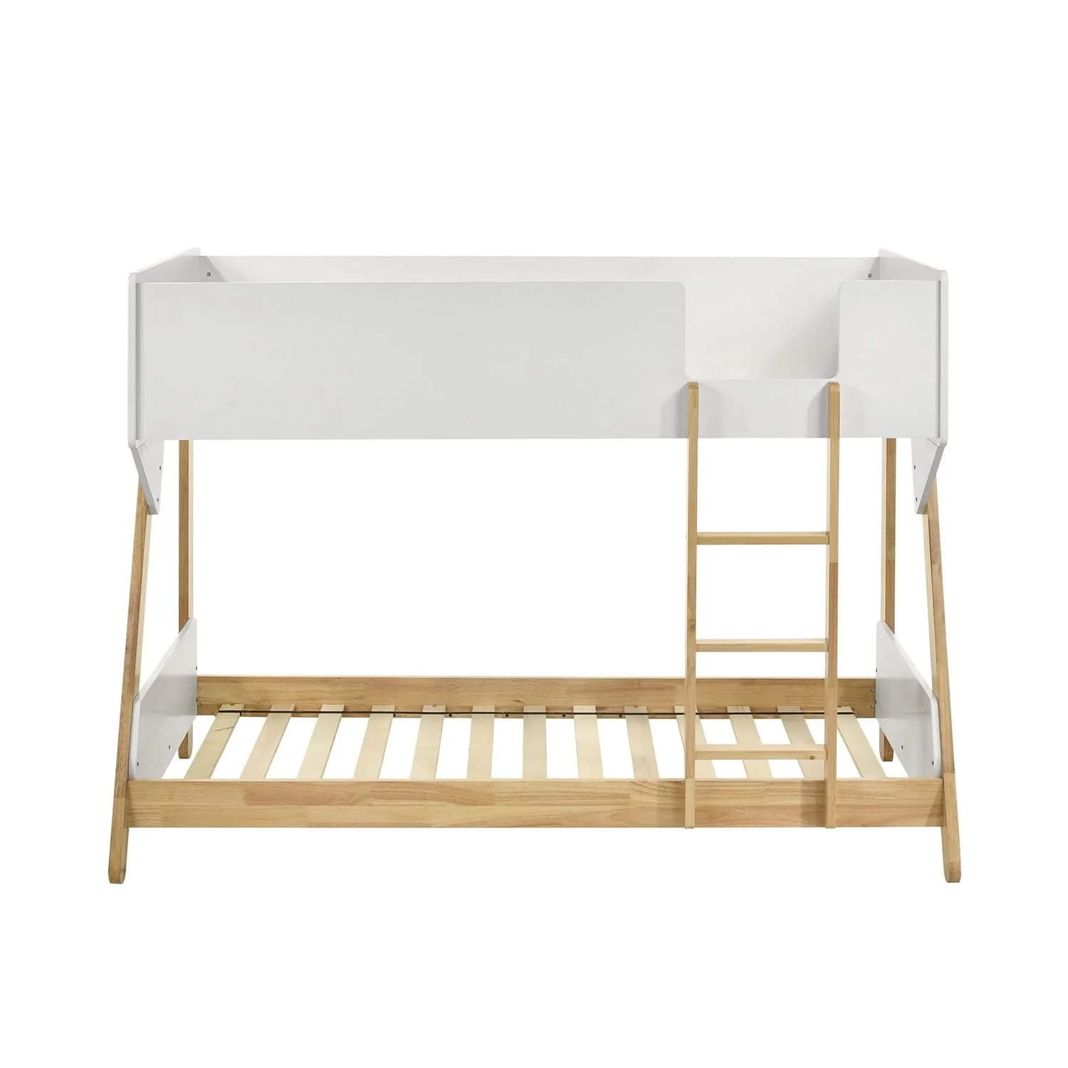 Wooden Twin Over Twin Bunk Bed with Ladder in White and Natural