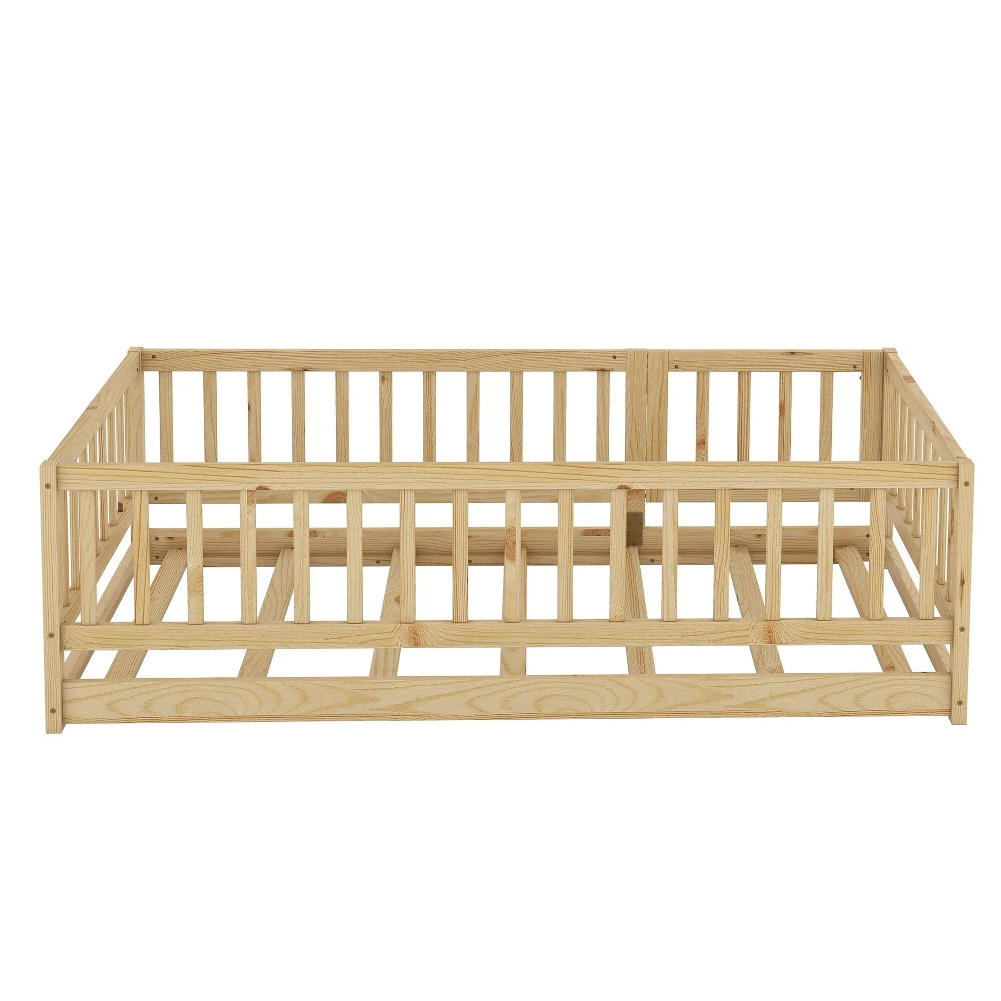 Toddler Montessori Bed Kids Floor Bed Frame with Fences, No Slats Wood Frame Bed for Kids Girls Boys Children's Room