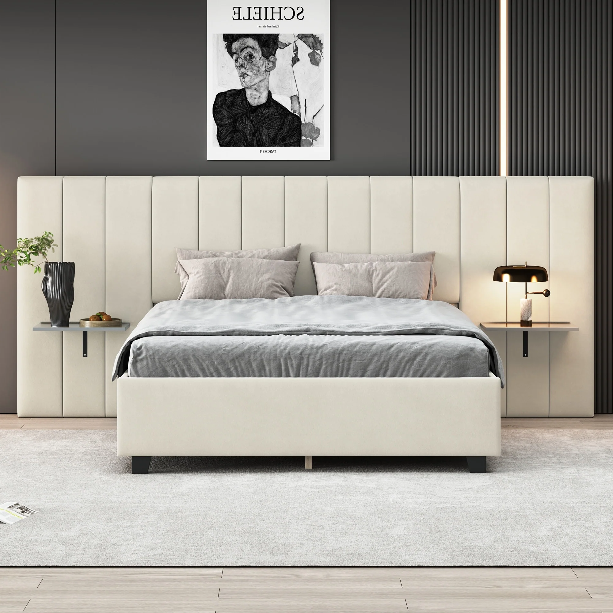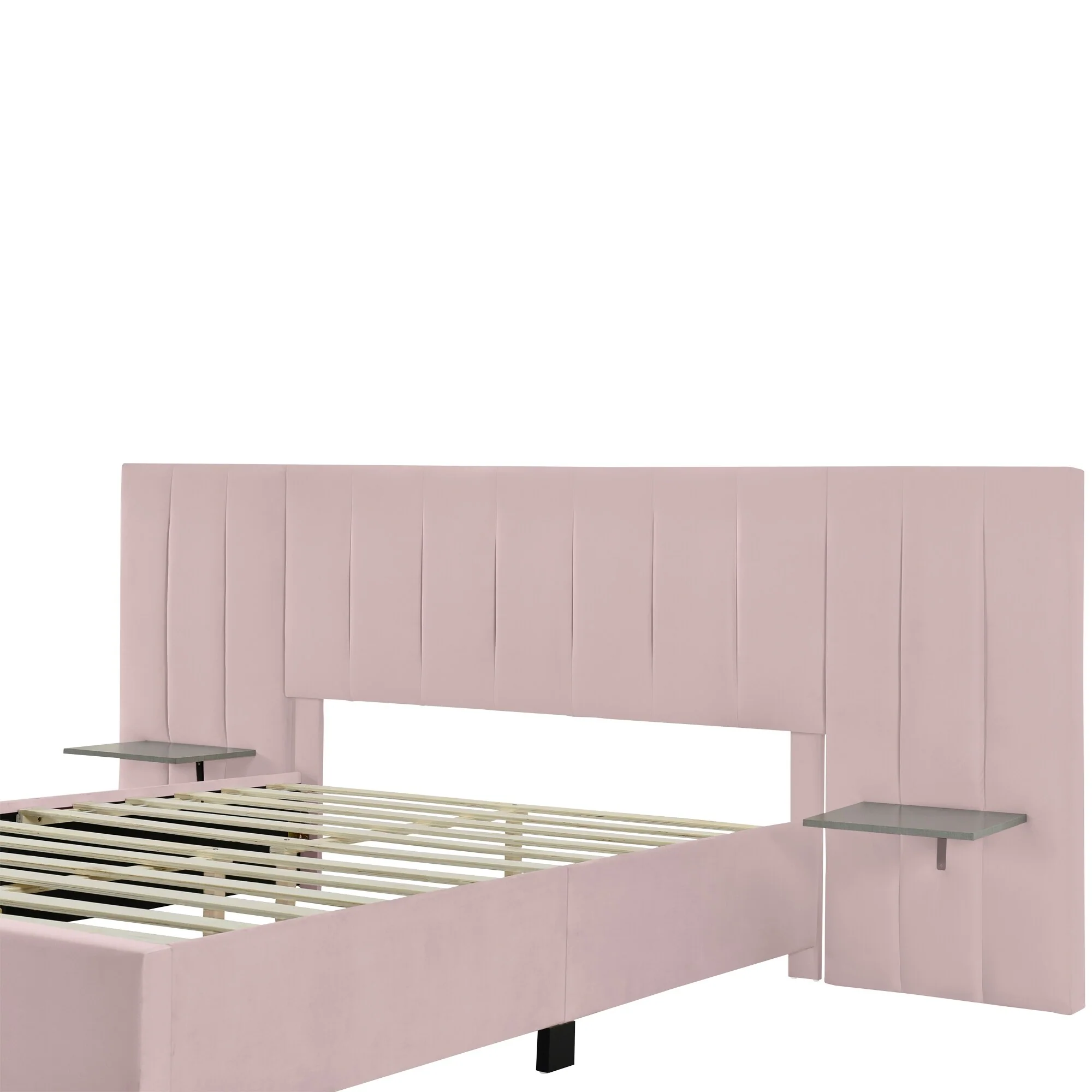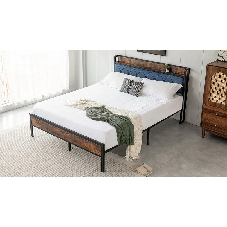 Full/Queen Size Upholstered Platform Bed with Shelved Headboard