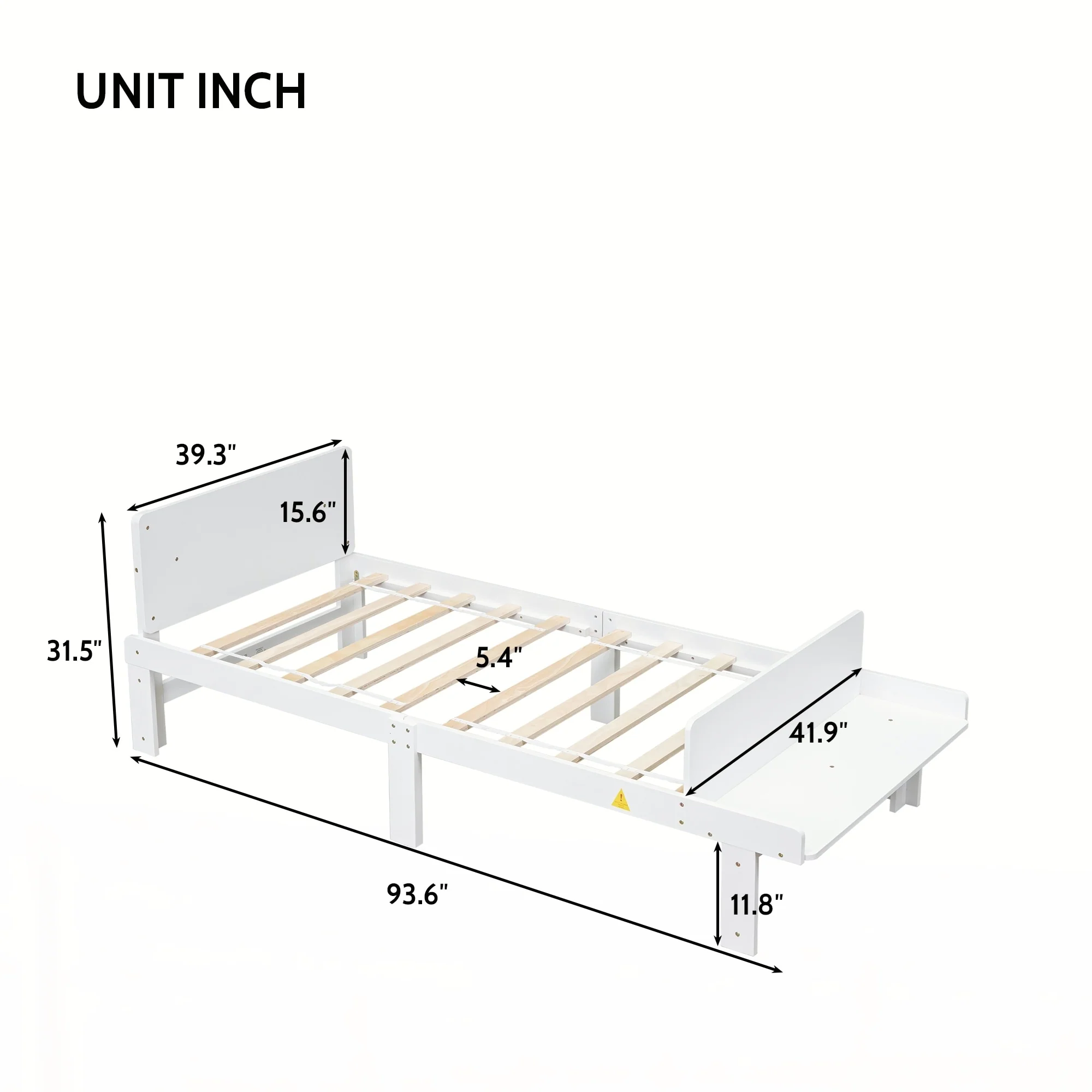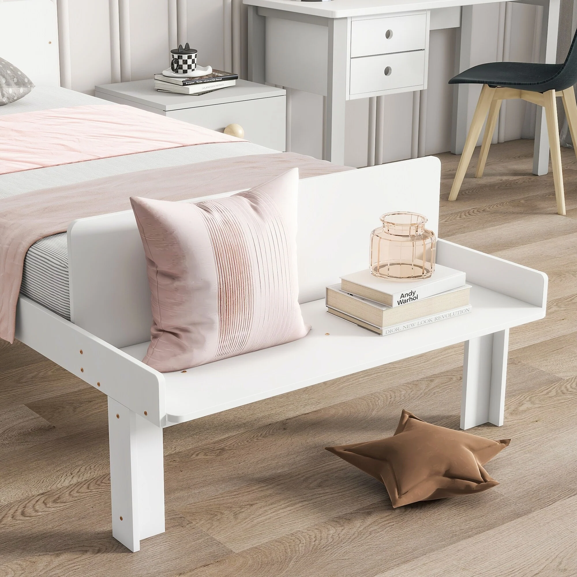 Twin Bed with Footboard Bench ,White