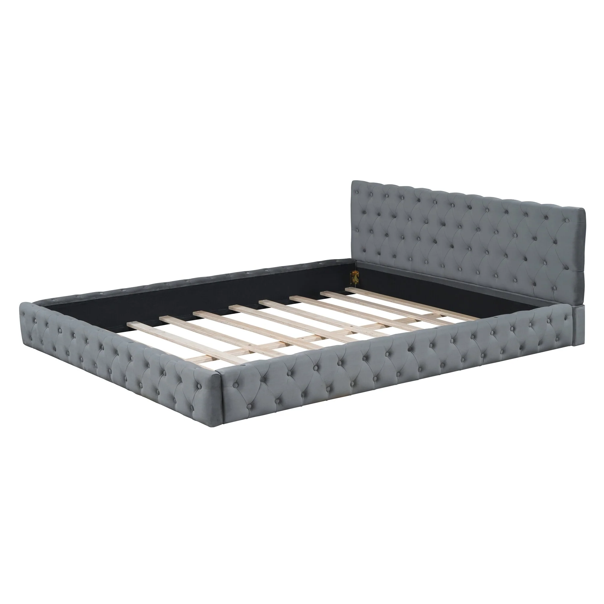 Modern Queen Upholstered Bed Frame with Velvet Tufted Headboard and Rivet Accents