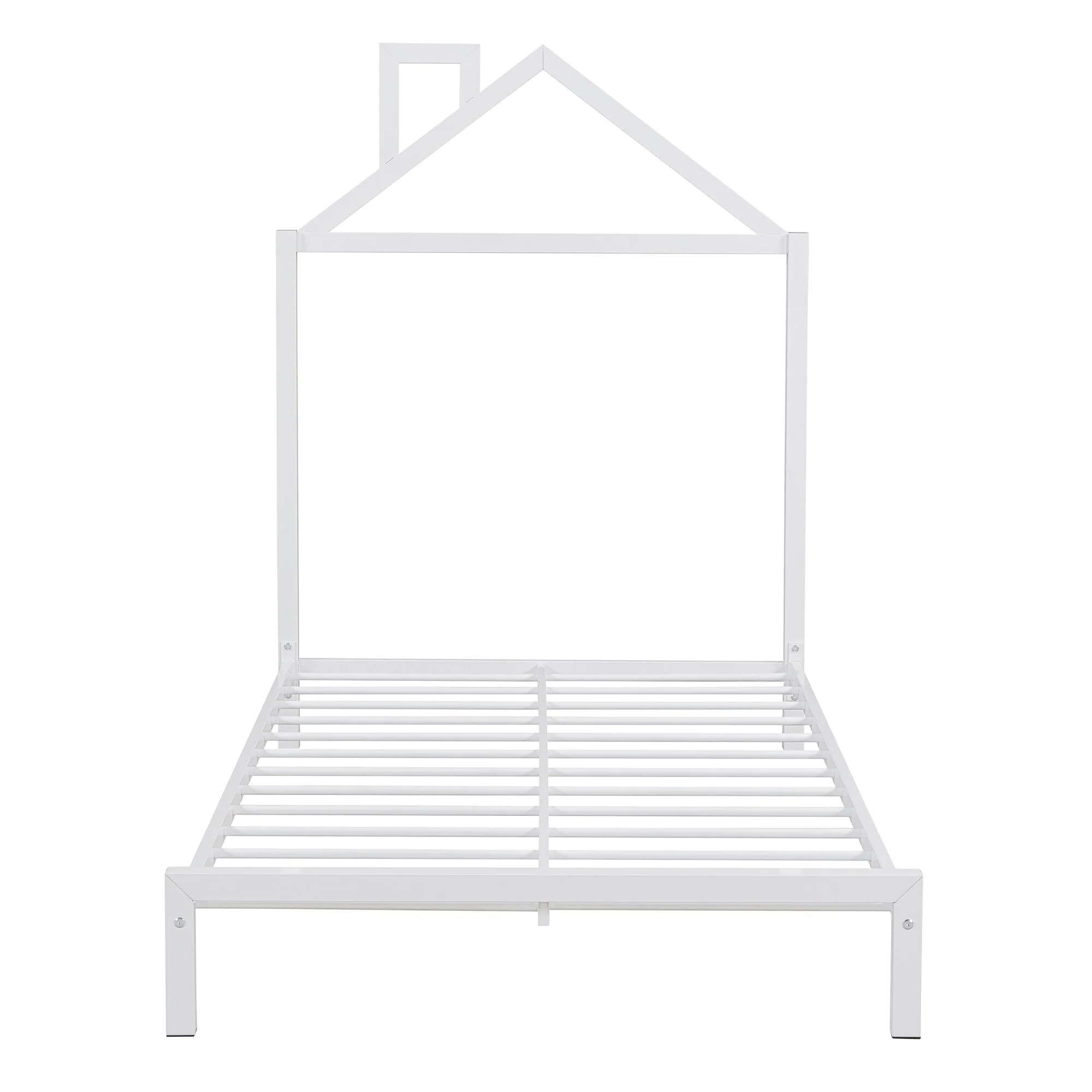 Kids Metal Platform Bed with House Design and Headboard, Twin Size