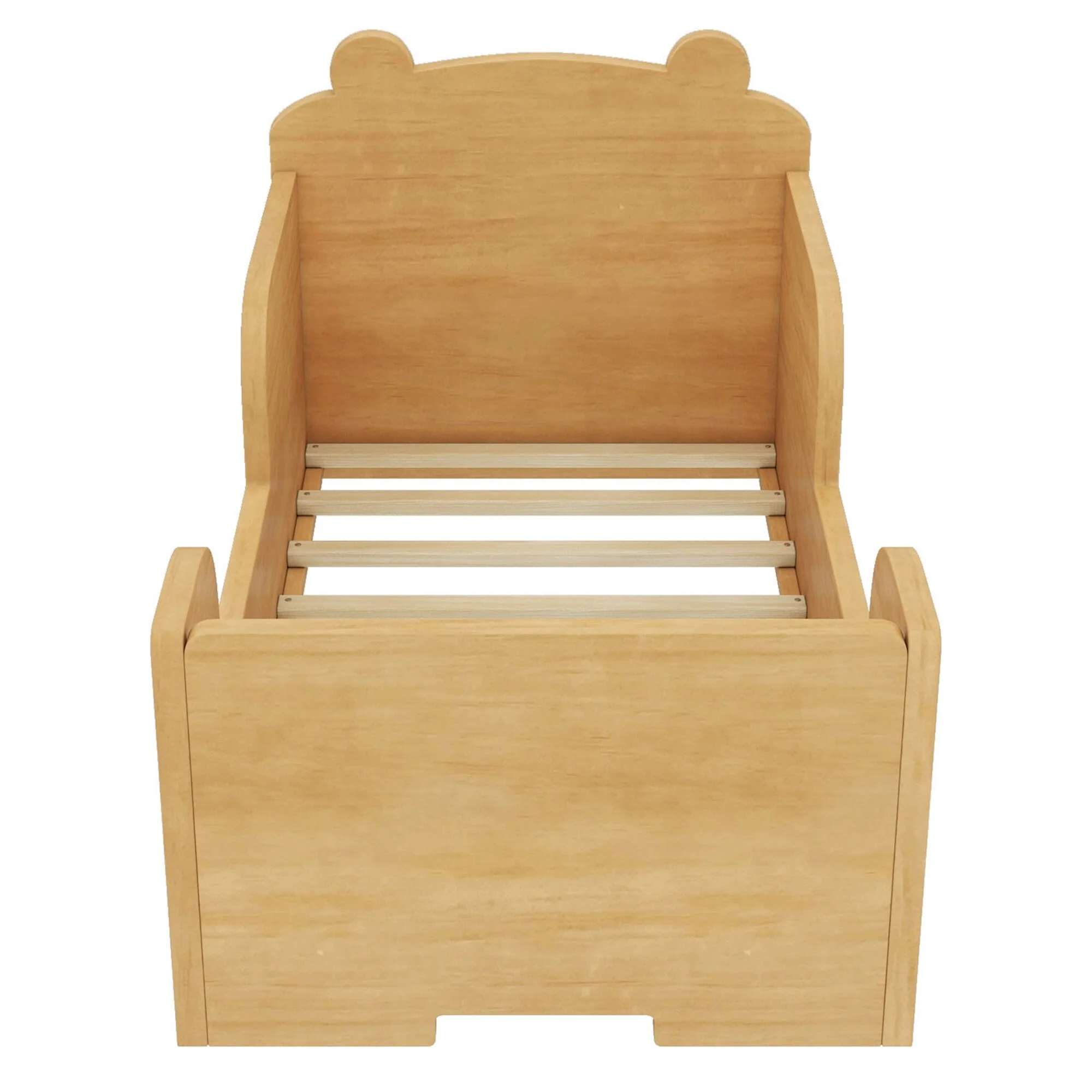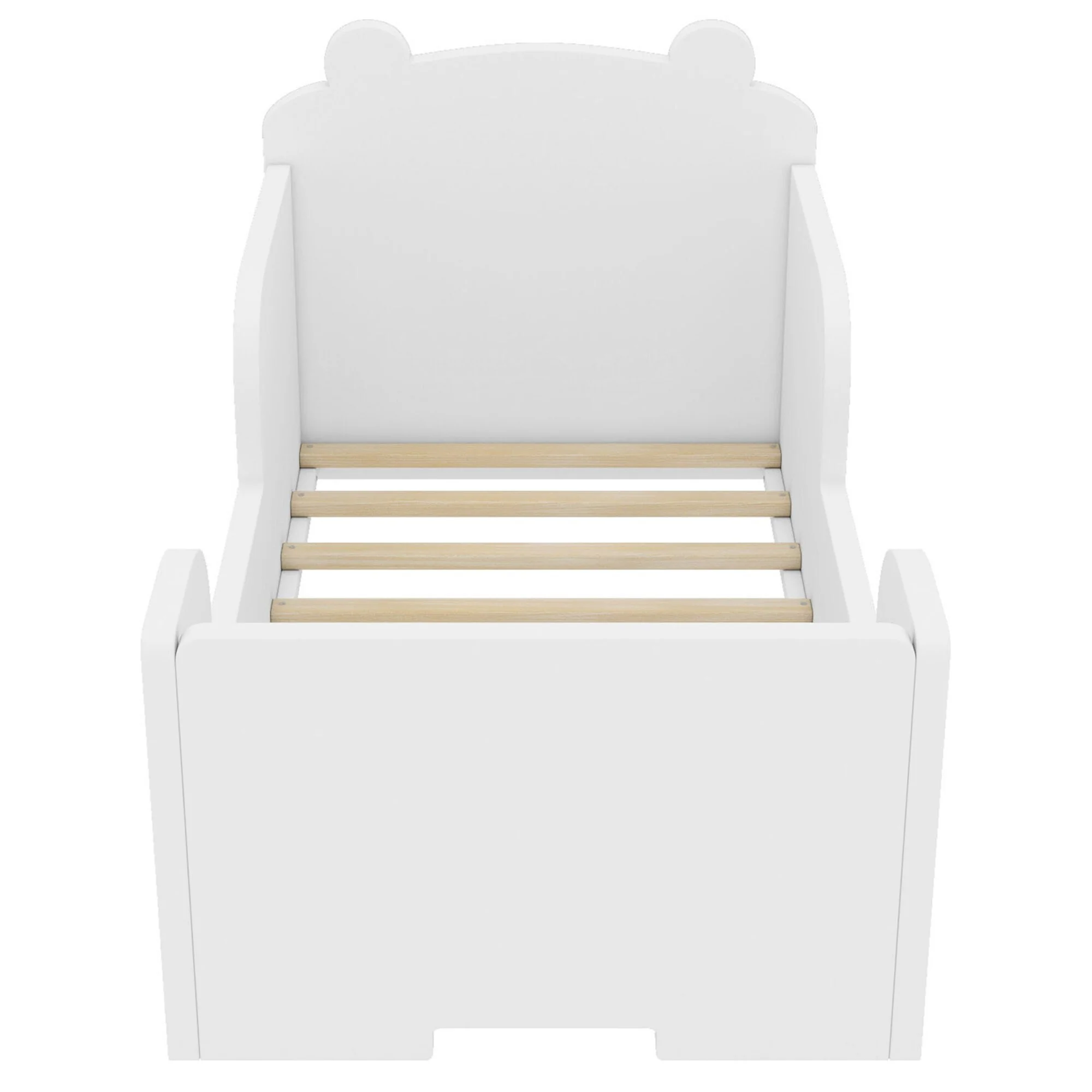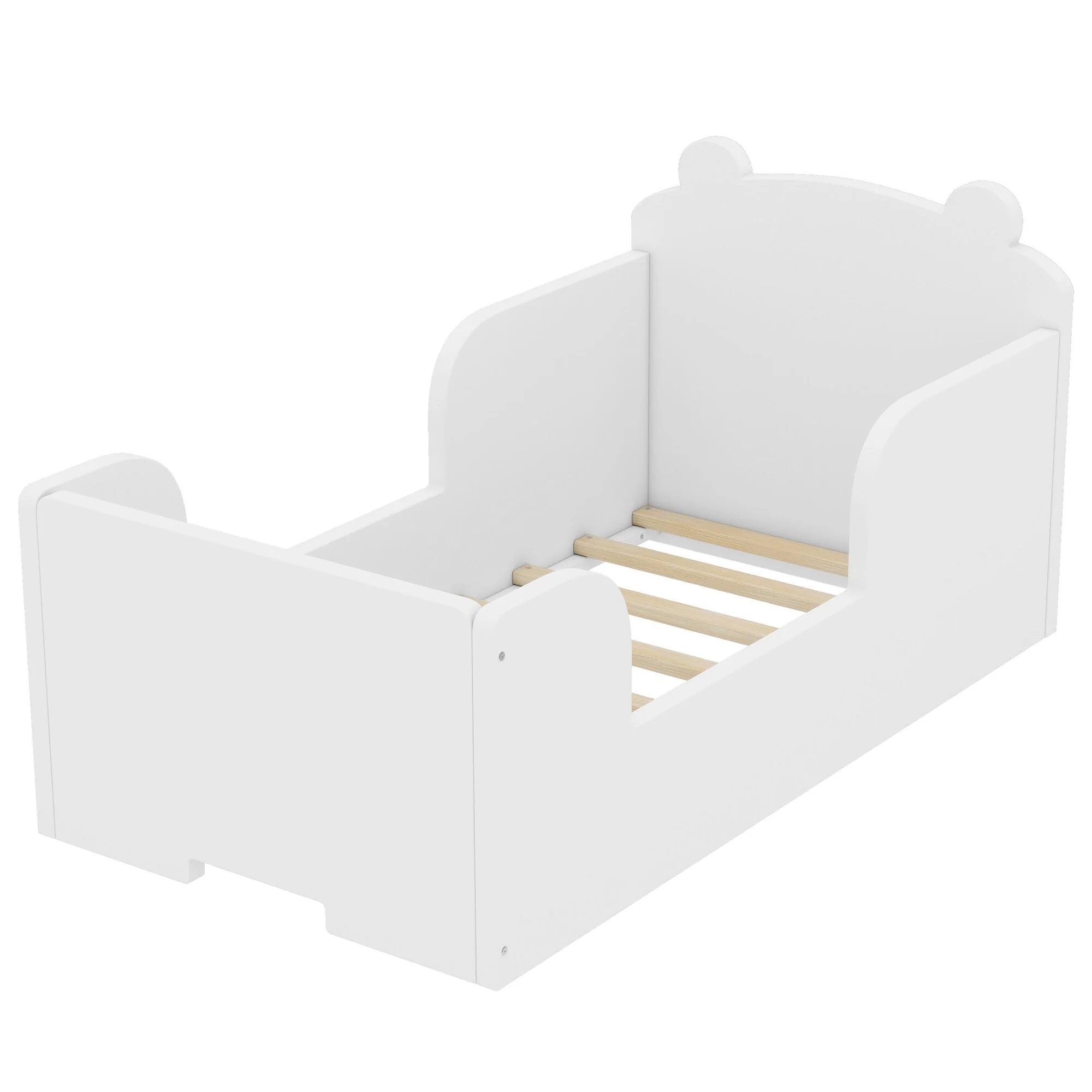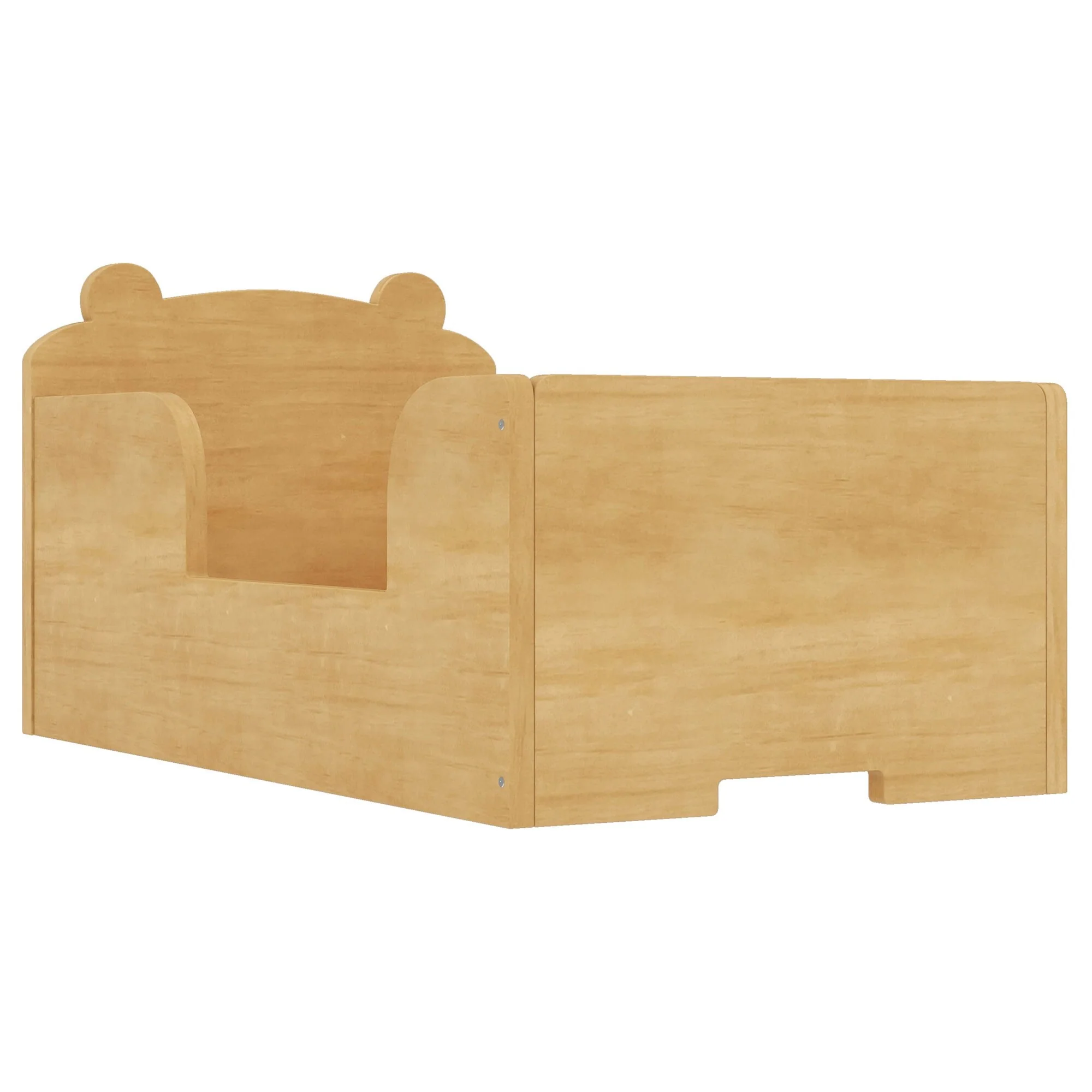 Toddler Floor Bed with Bear-shaped Headboard and Rounded Corners Guardrails for Ages 3-6, Open Baby Platform Bed Frame