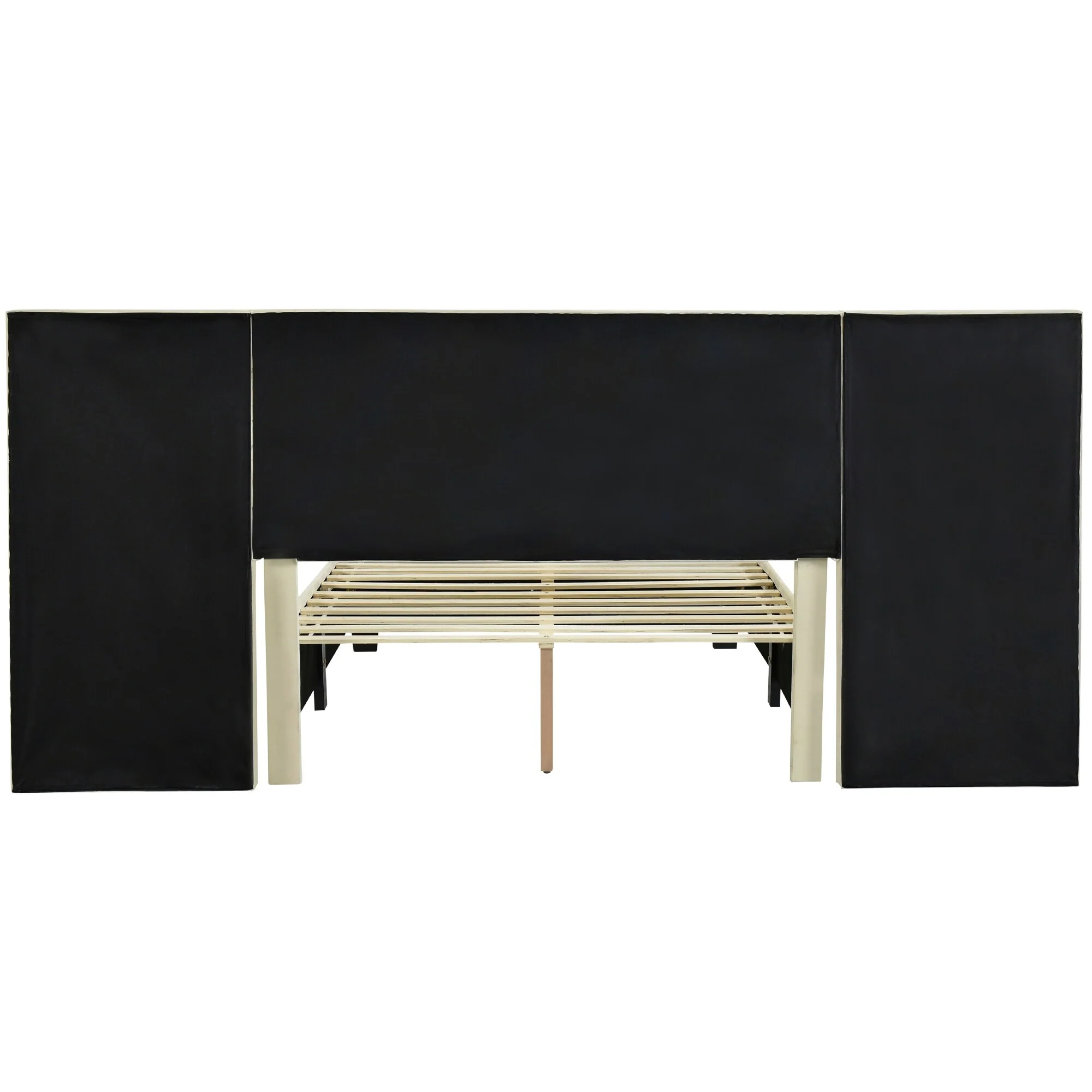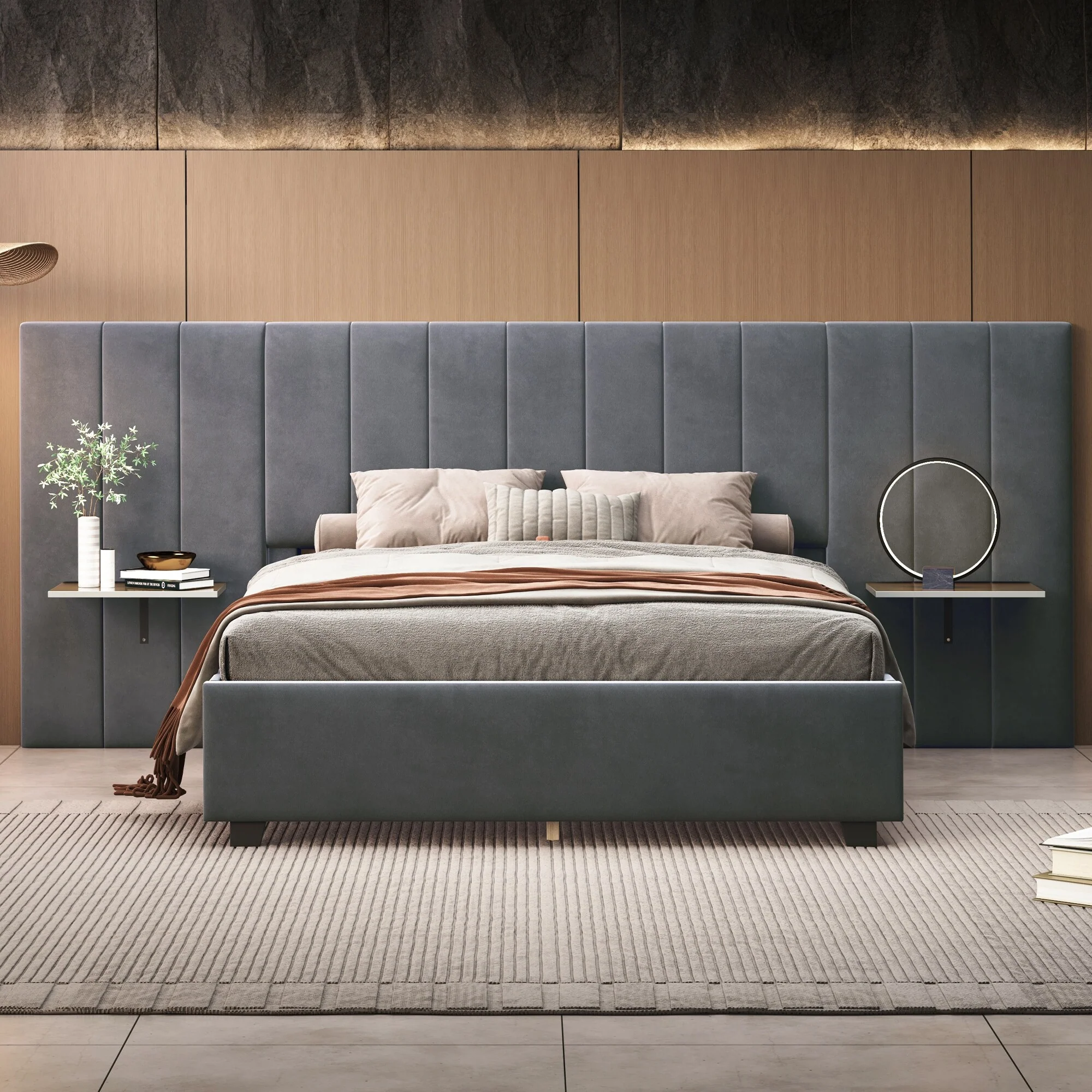 Full/Queen Size Upholstered Bed with Velvet Headboard and Integrated Shelves