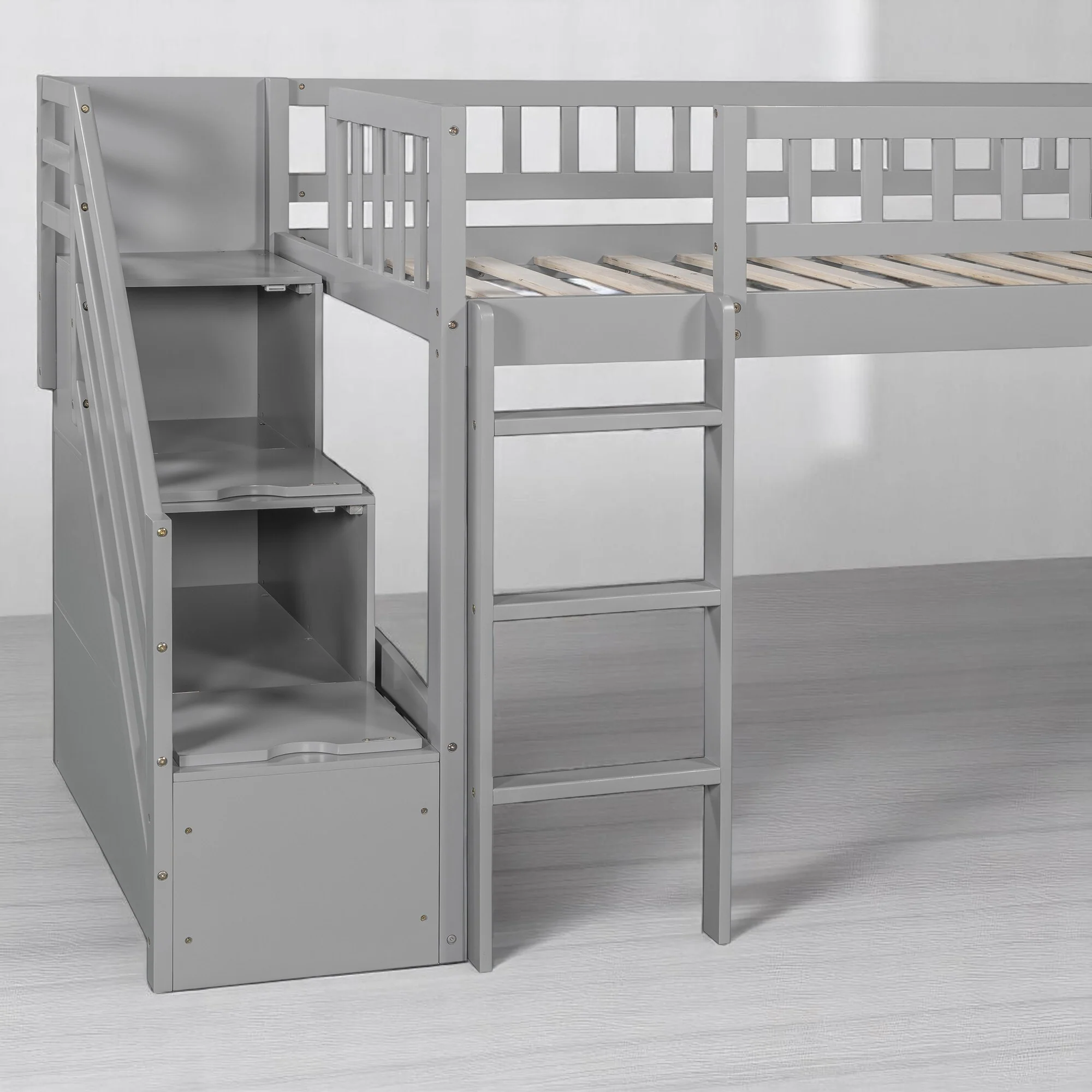 Twin Size Loft Bed with Slide, Staircase Storage Drawers, Convertible Ladder, and Guardrails, No Box Spring Needed