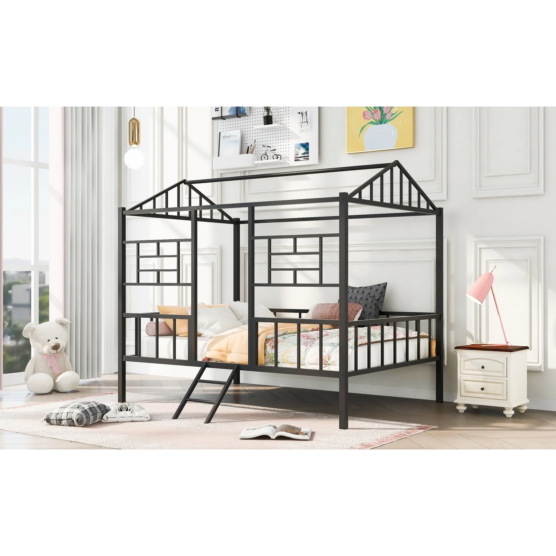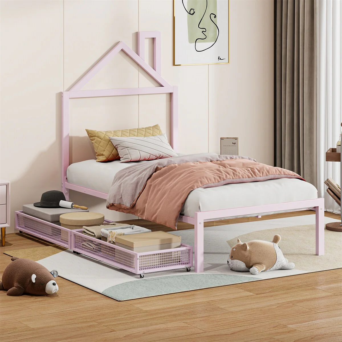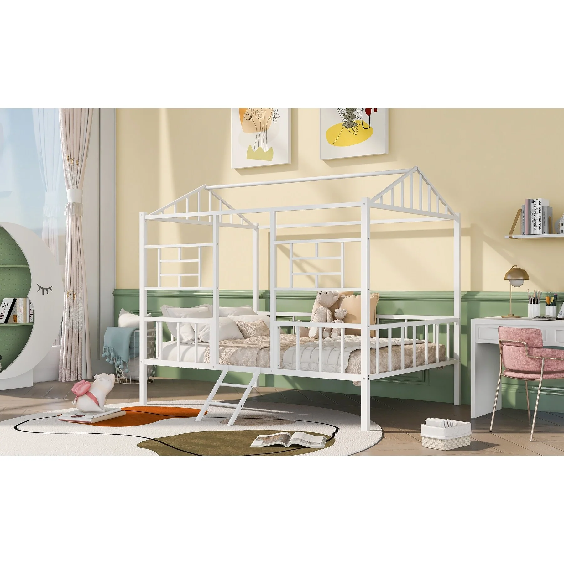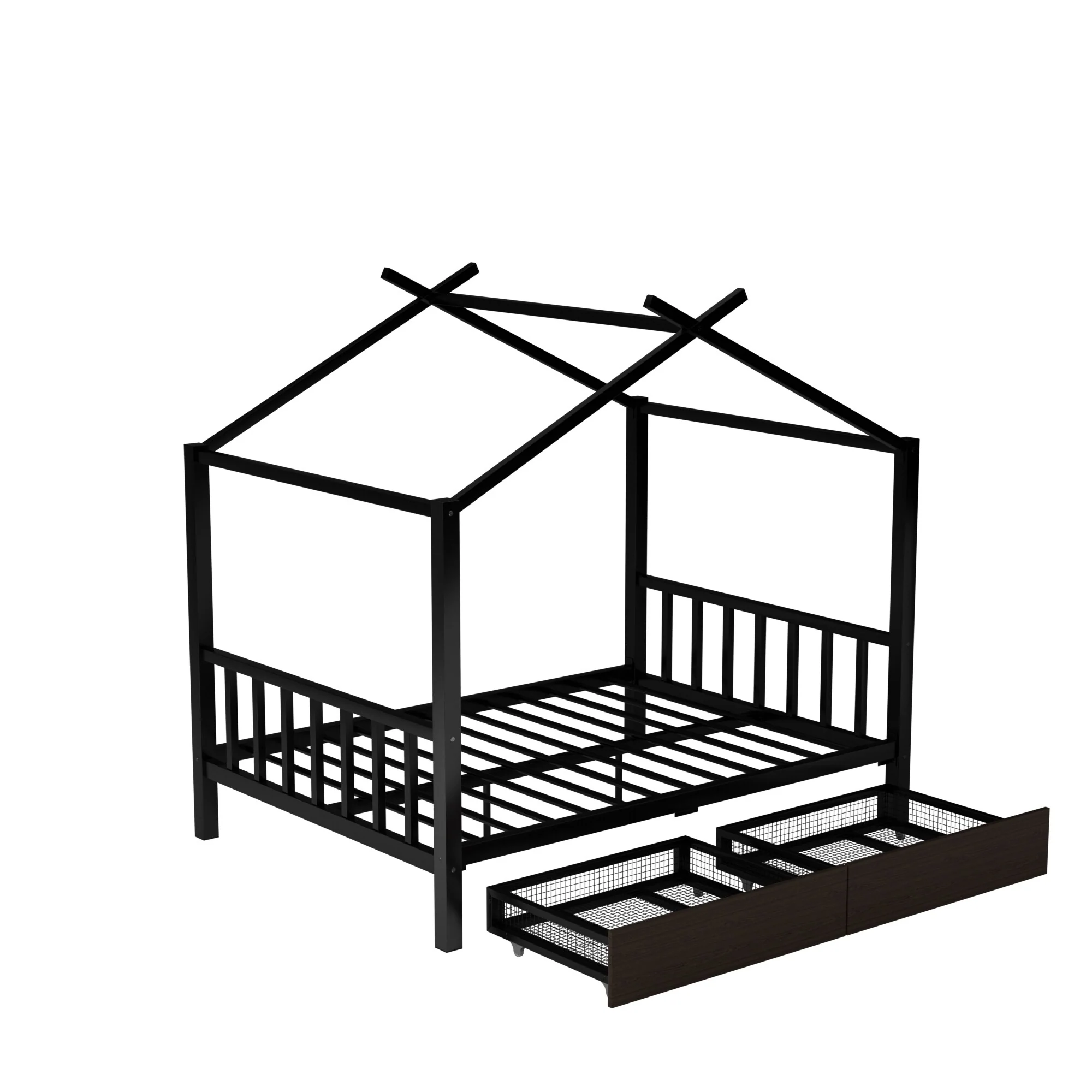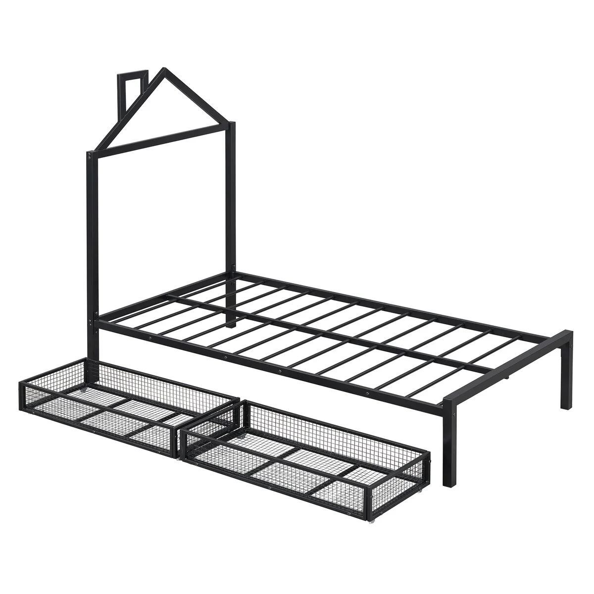 Twin House Bed for Kids, Metal Frame, Floor Bed with 350lbs Weight Capacity