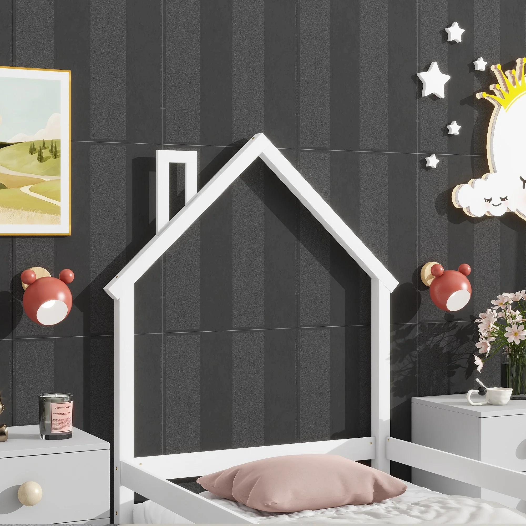Fun House-Shaped Twin Platform Bed, Pine Wood and MDF Construction