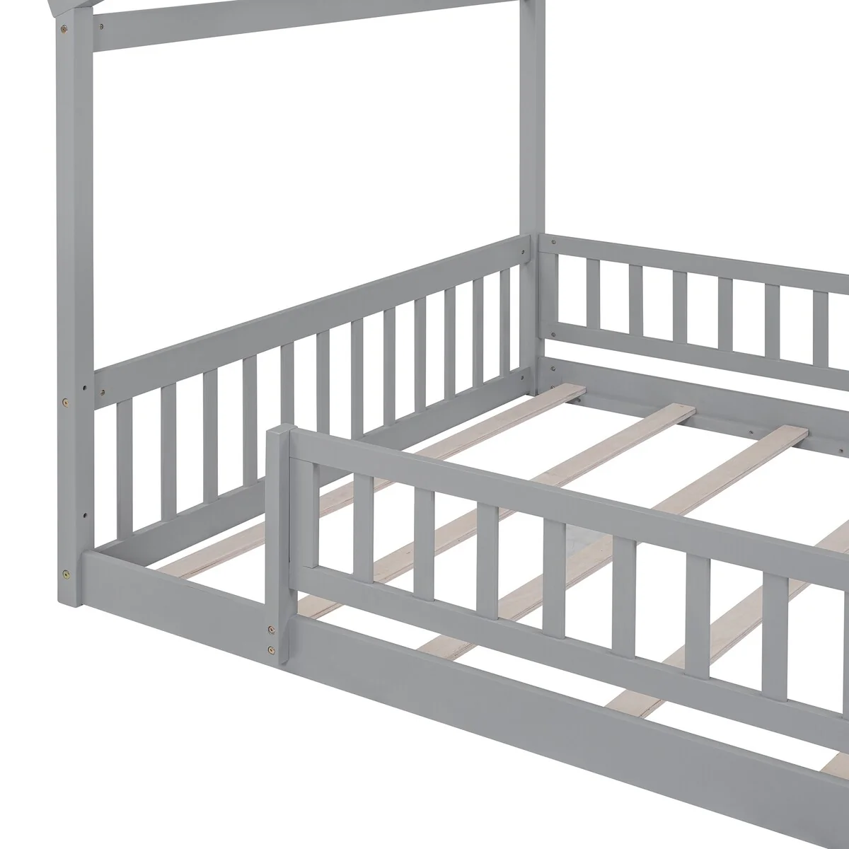 Twin Size Wood House-shaped Floor Bed with Fence