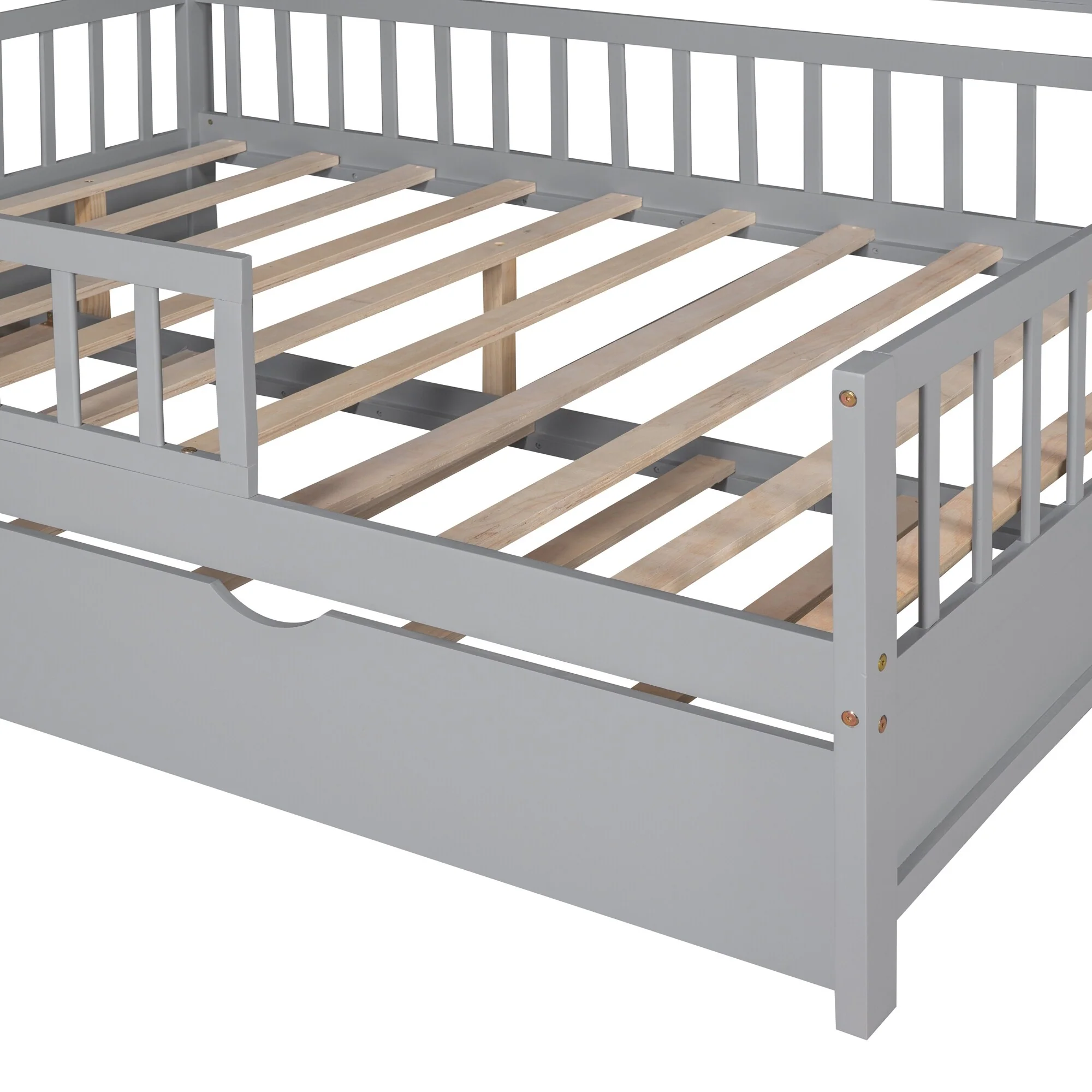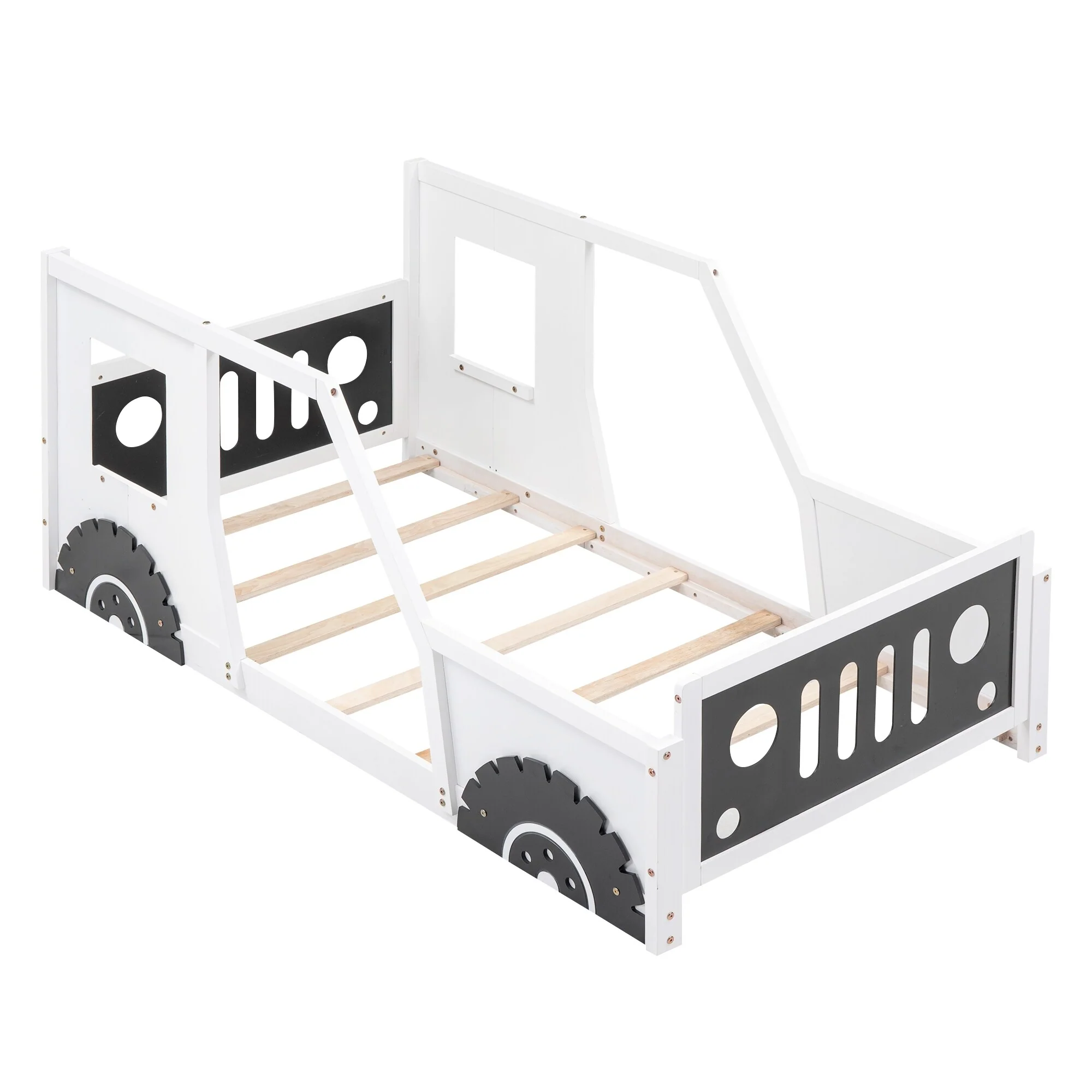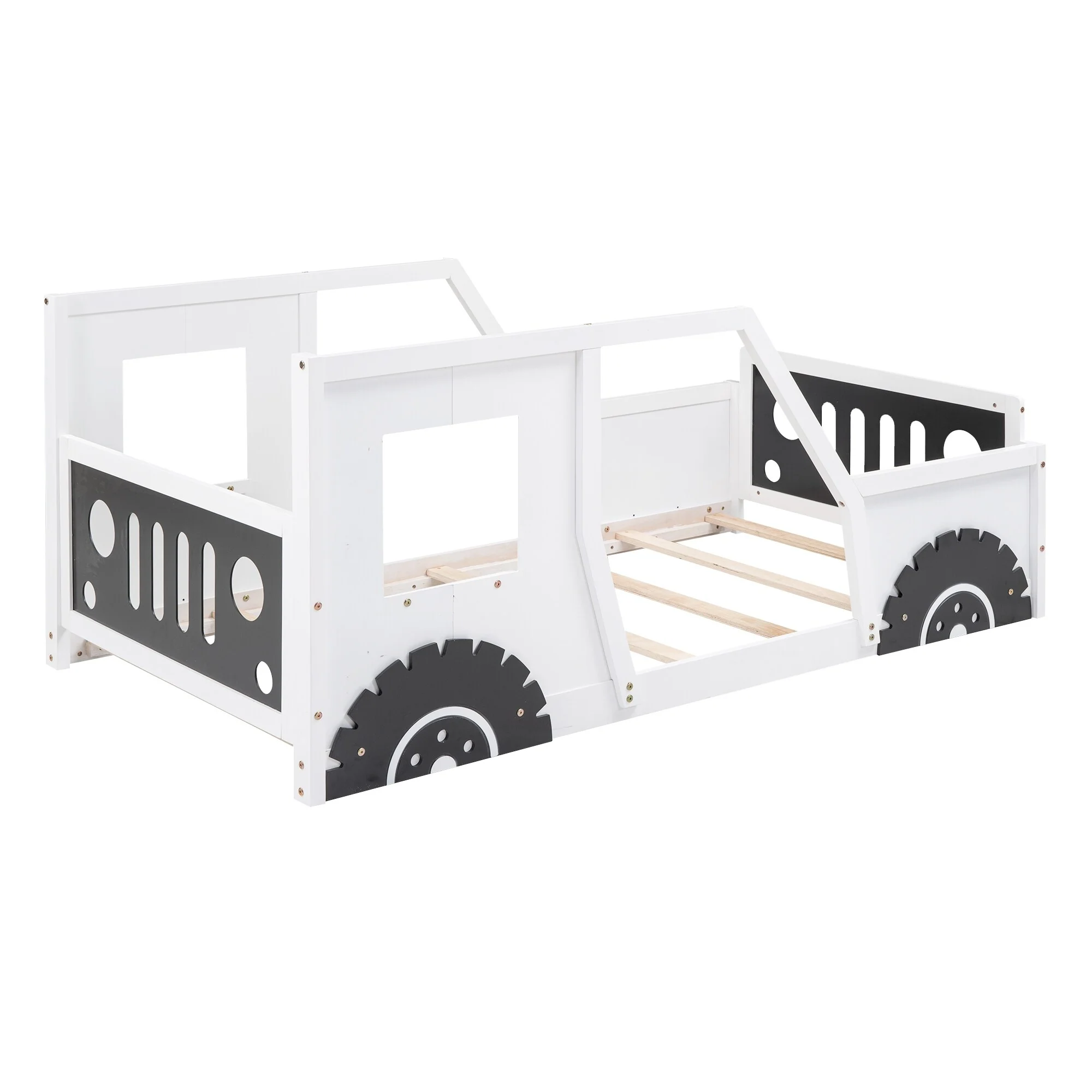 Low Profile Twin Floor Bed for Kids with Rails and Door, No Box Spring Needed