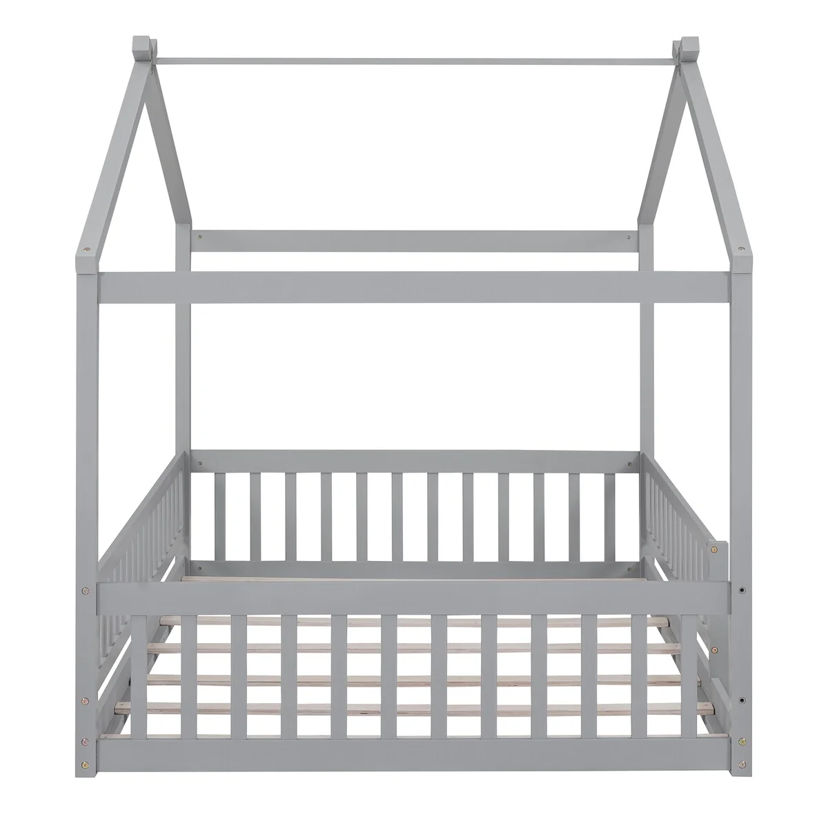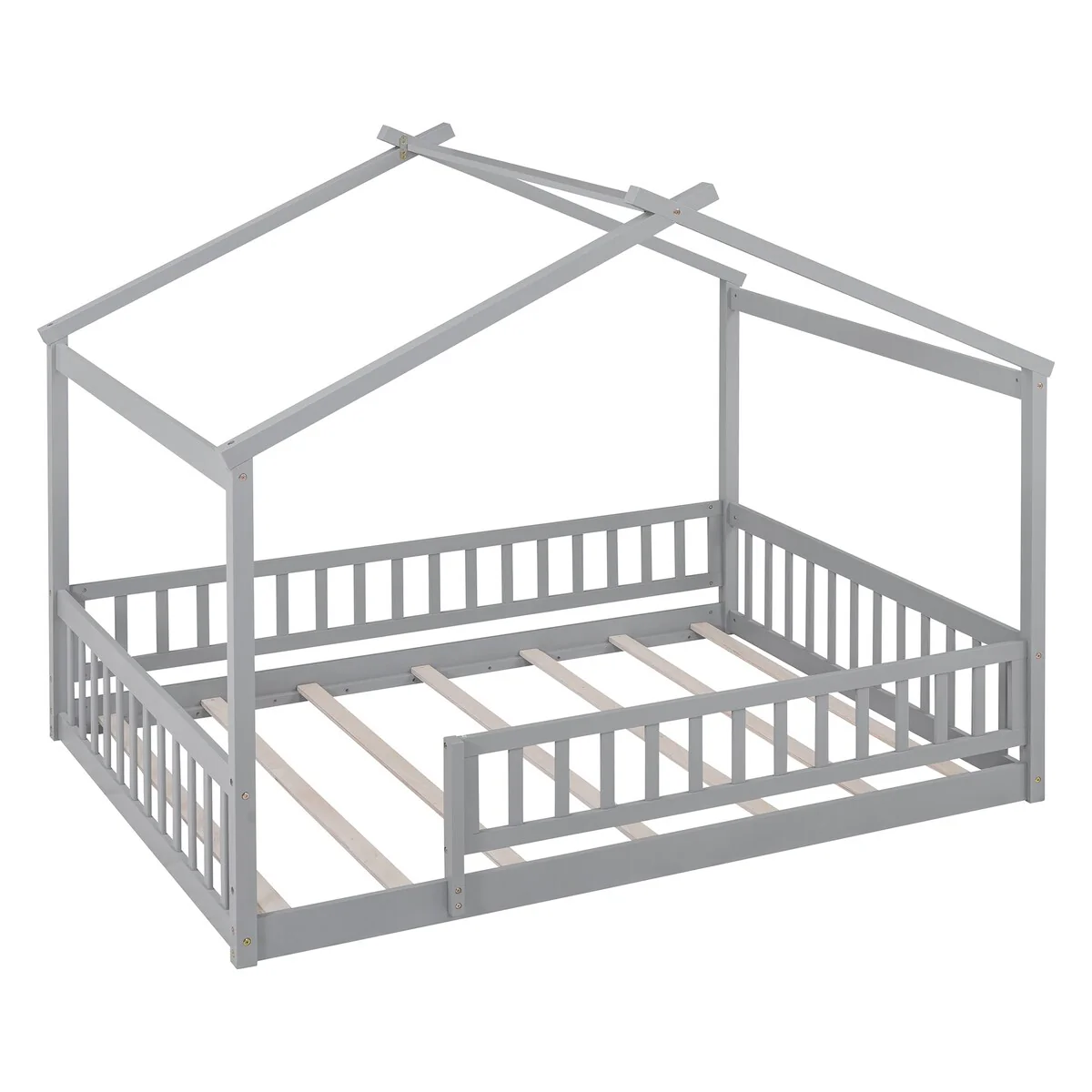 Full House Bed with Rails,Full Floor Bed for Kids,Full Size Montessori Bed Frame with Support Slats, Kids Full Playhouse Beds
