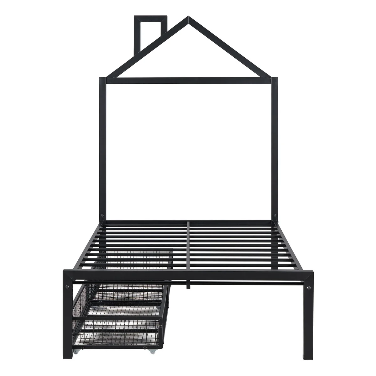 Metal Twin Size House Bed with Chimney, Easy Assembly