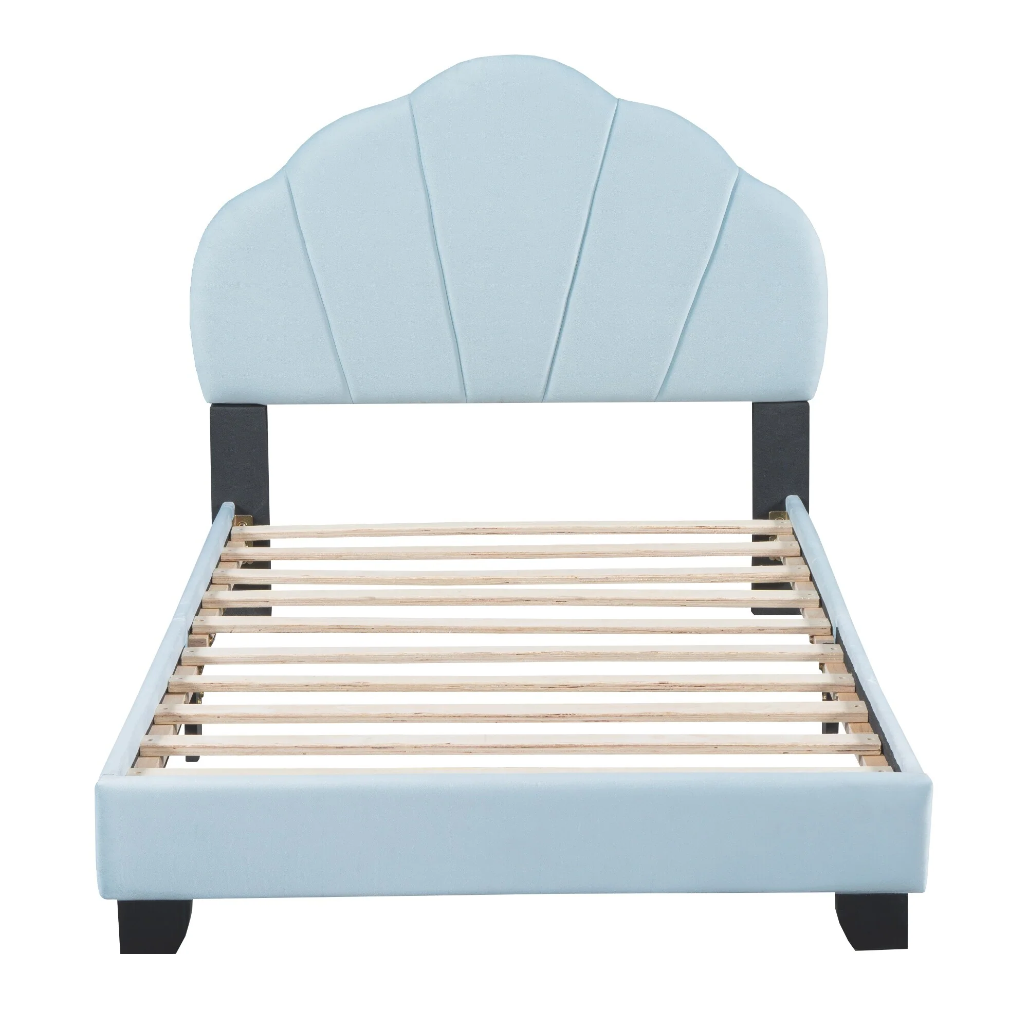 Velvet Twin Bed with Shell Design - High Load Capacity and Elegant Style