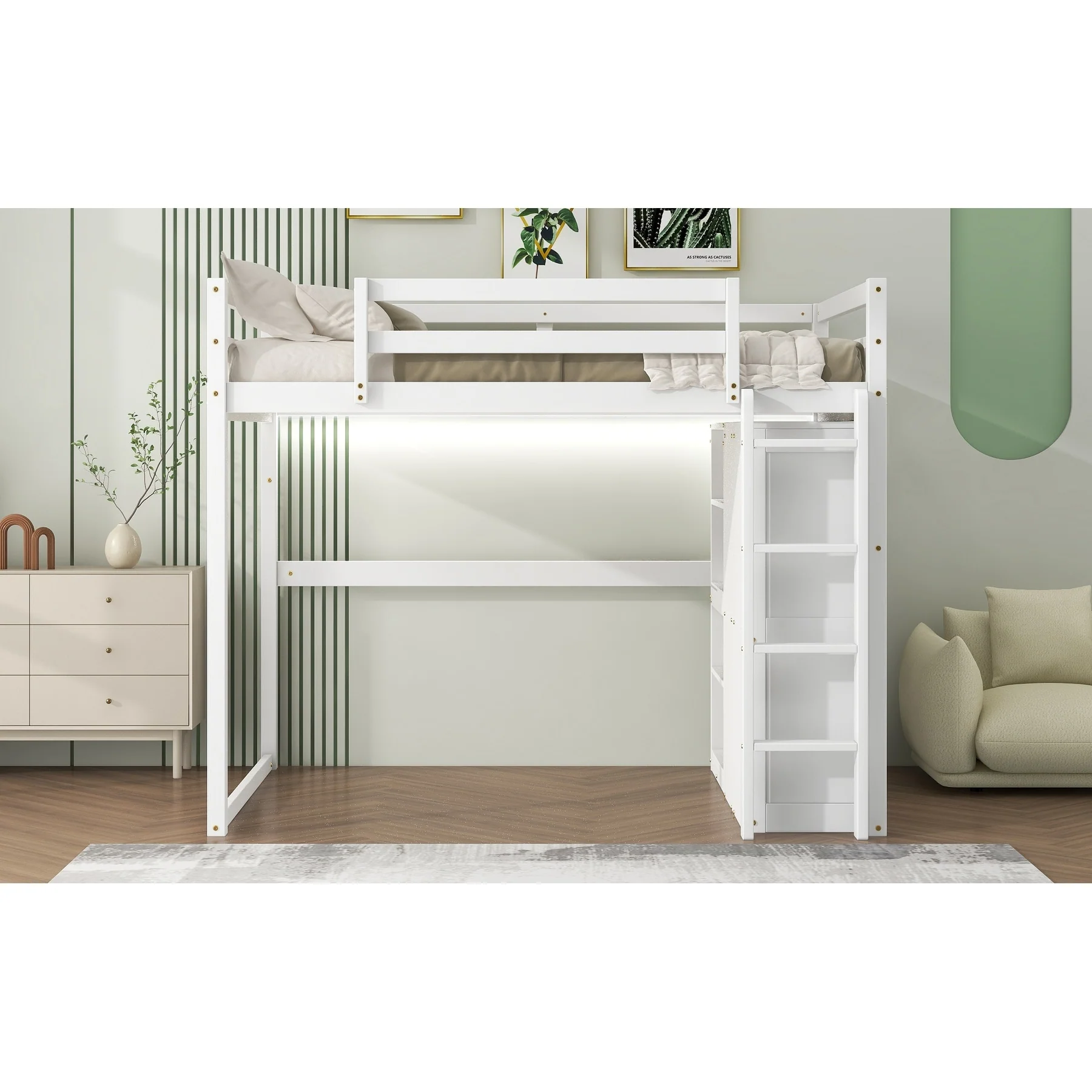 Twin Size Platform Bed with LED Light, Storage Shelves, and Safety Guardrails