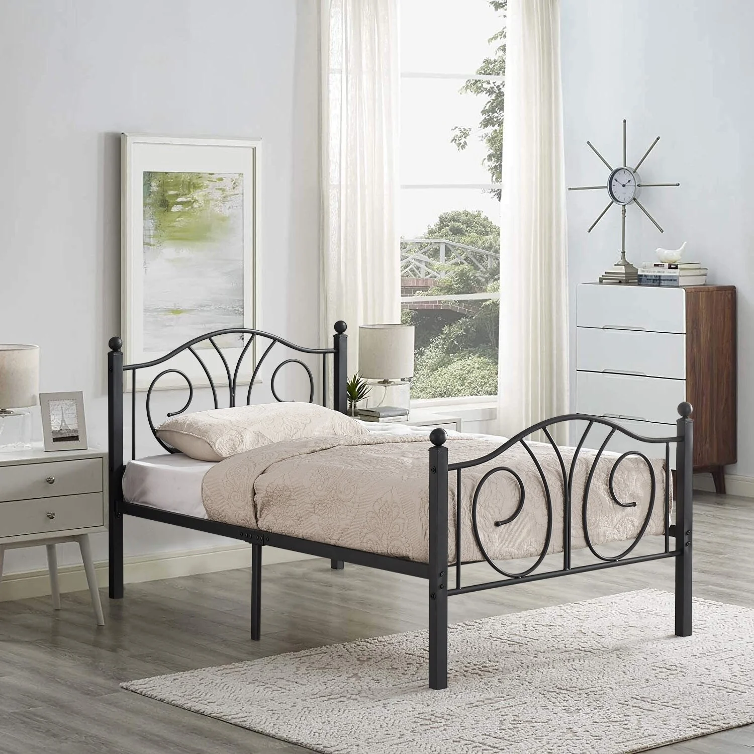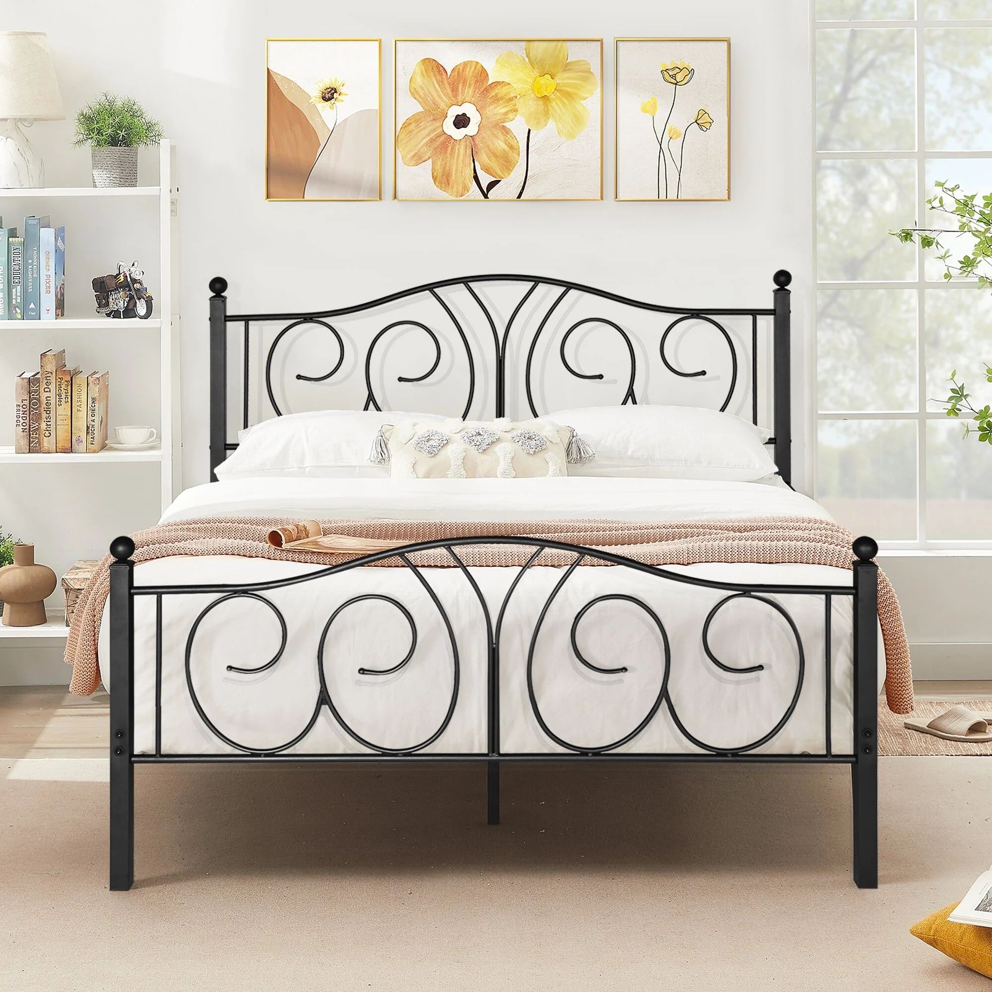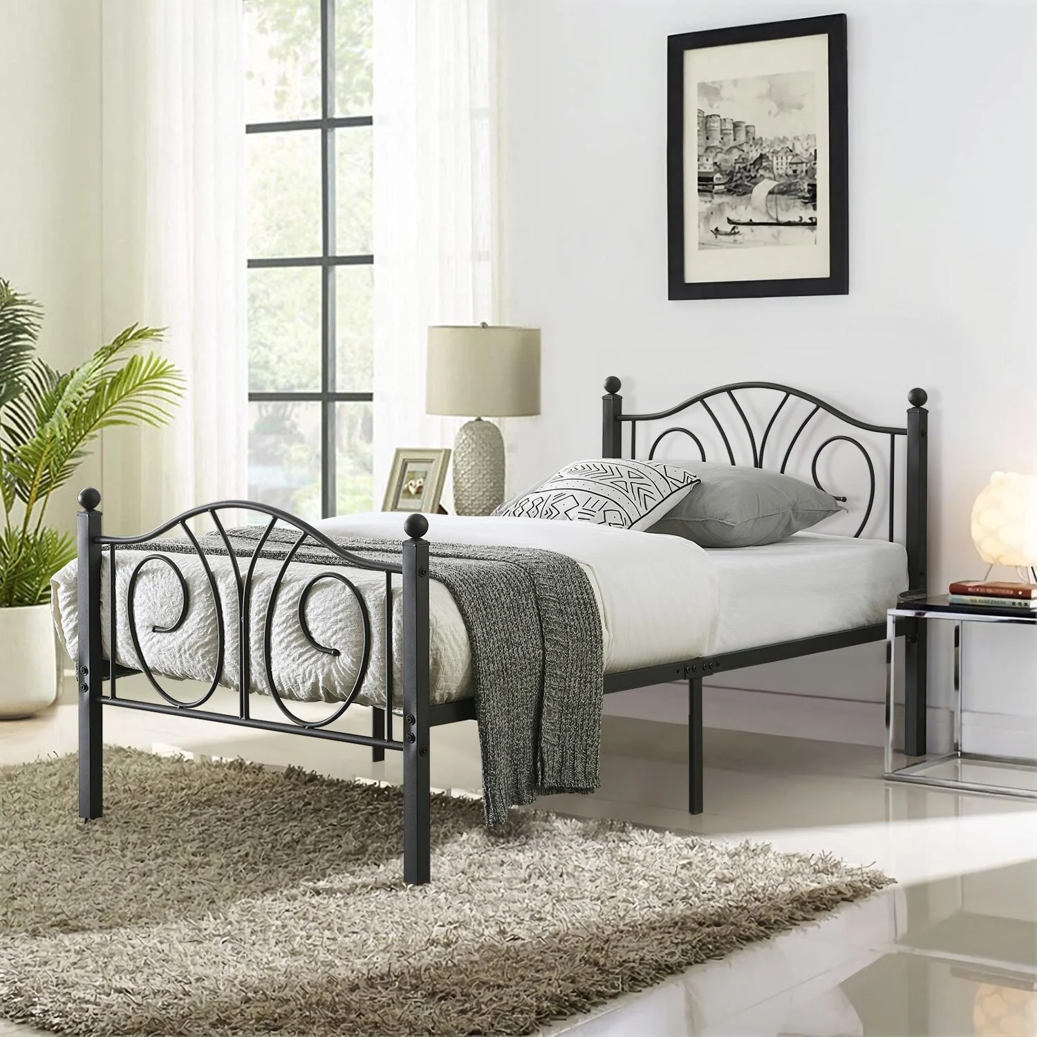 Black Vintage Scroll Metal Platform Bed Frames with Headboard