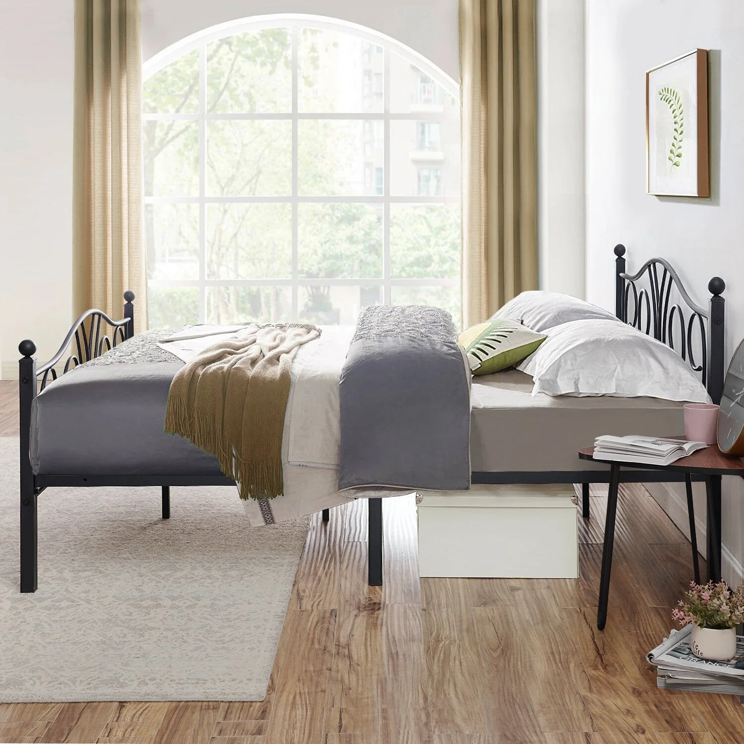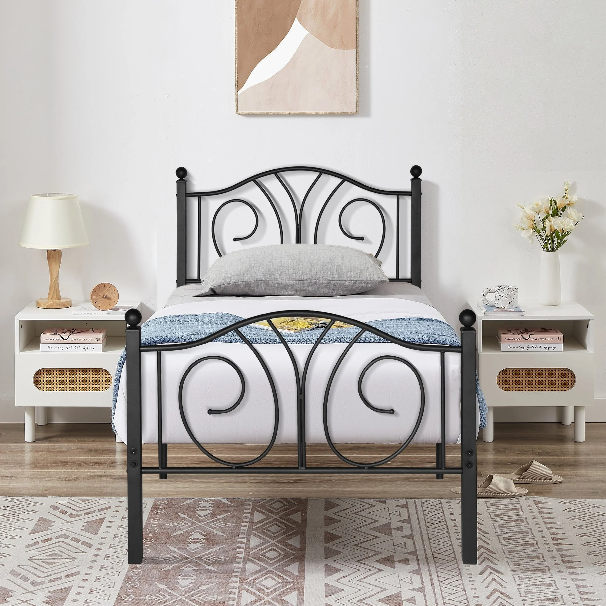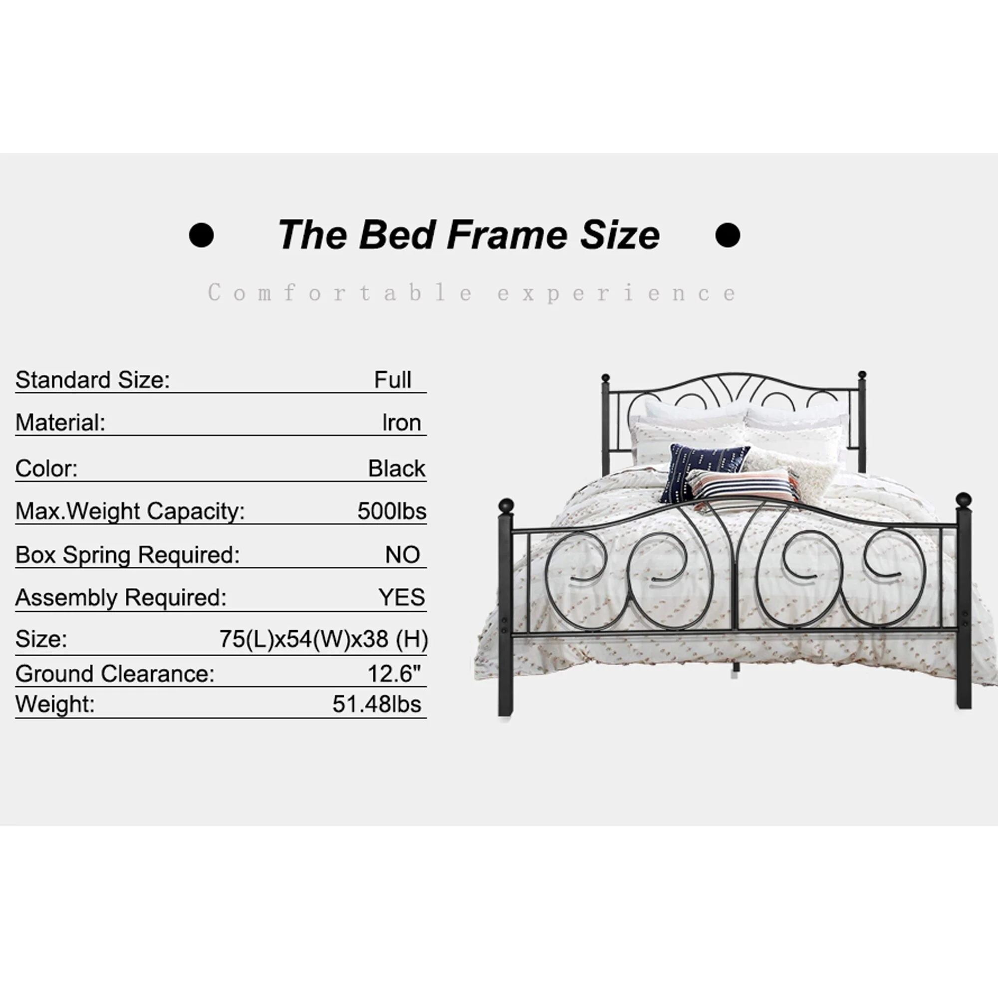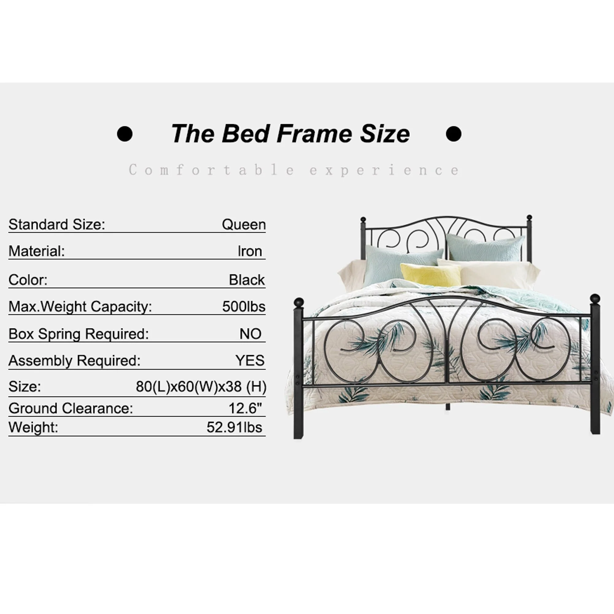 Black Vintage Scroll Metal Platform Bed Frames with Headboard