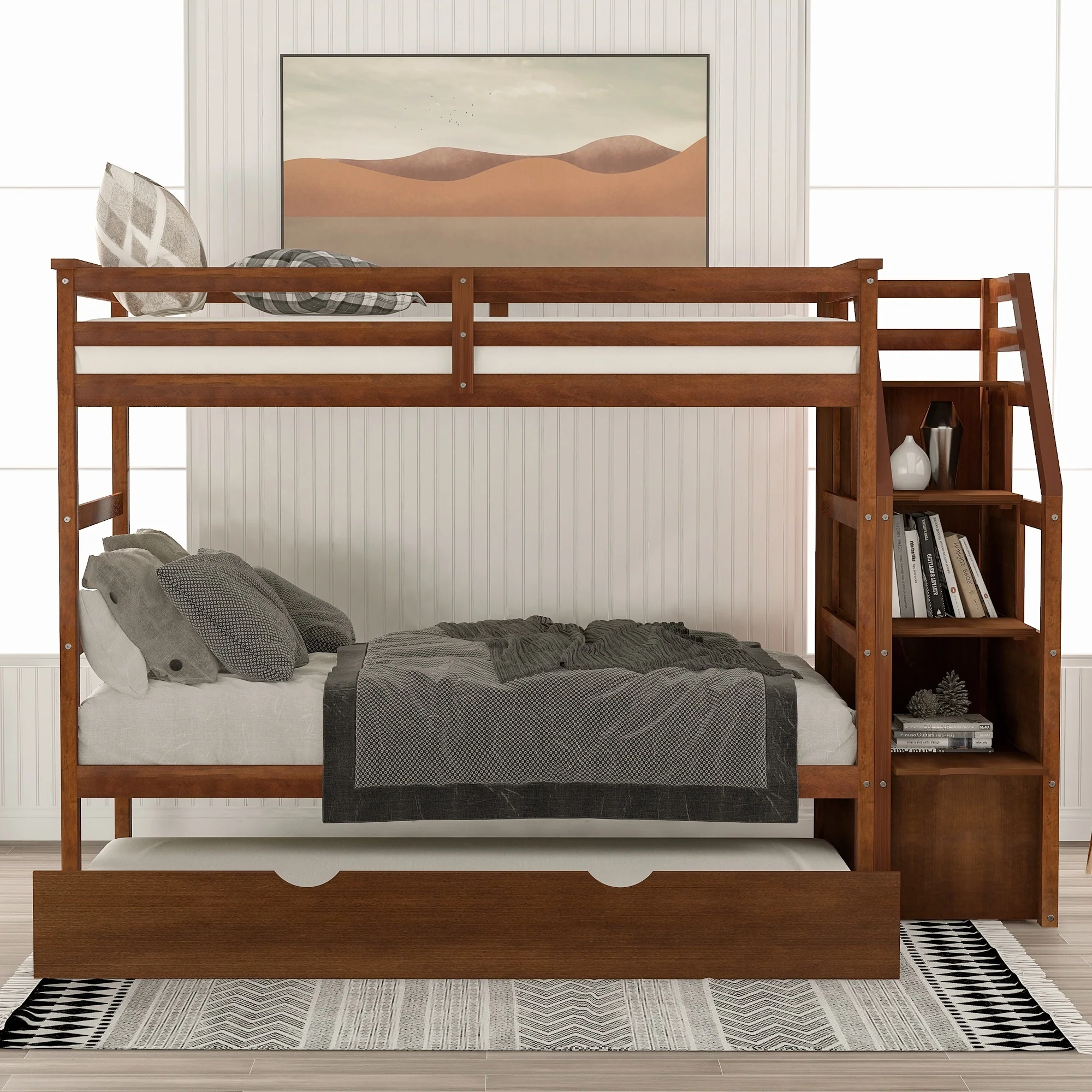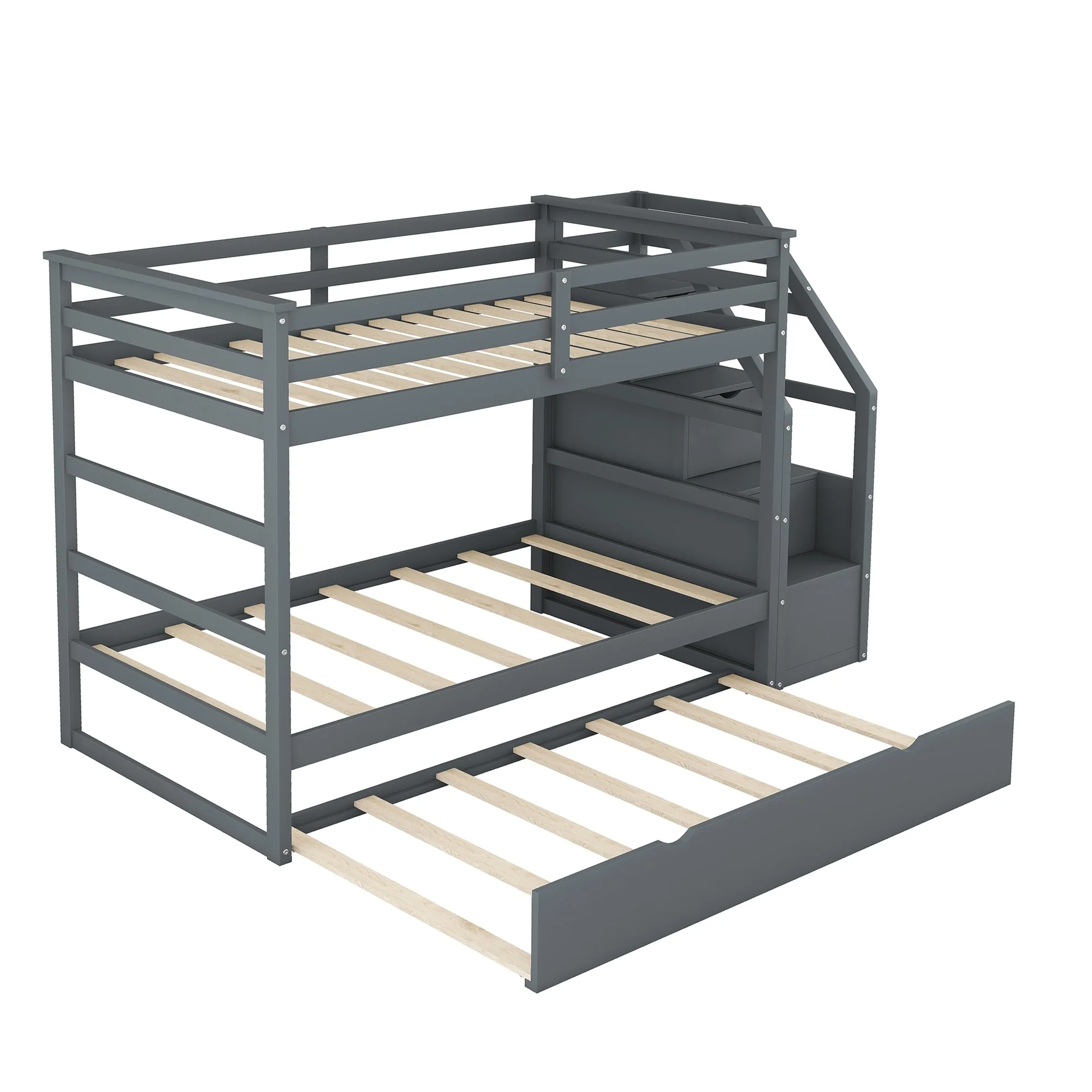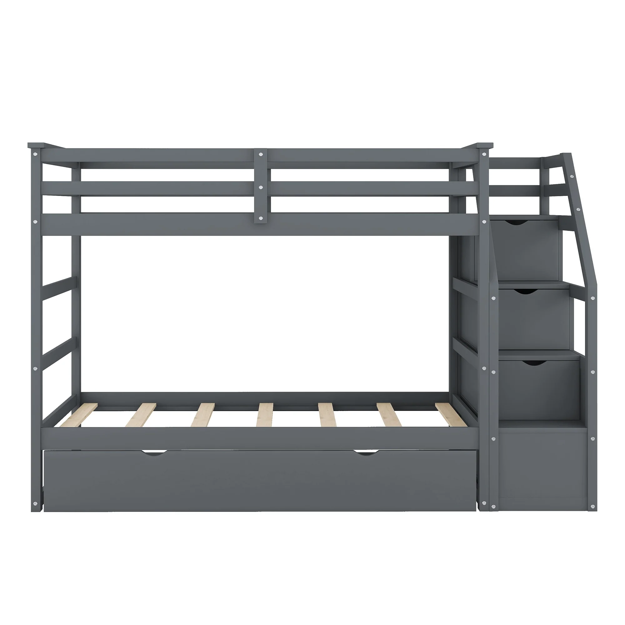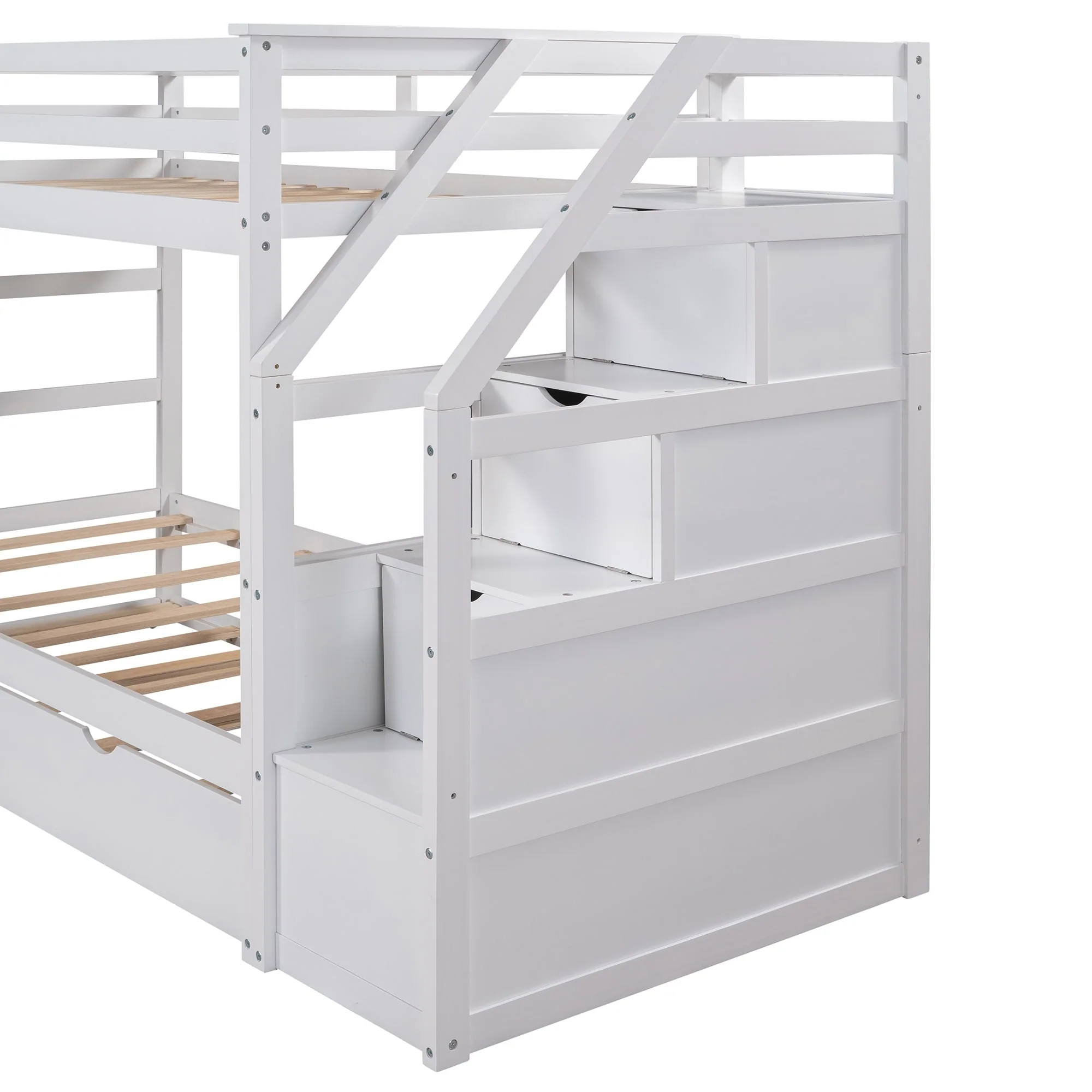 Twin-Over-Twin Bunk Bed with Twin Size Trundle and 3 Storage Stairs